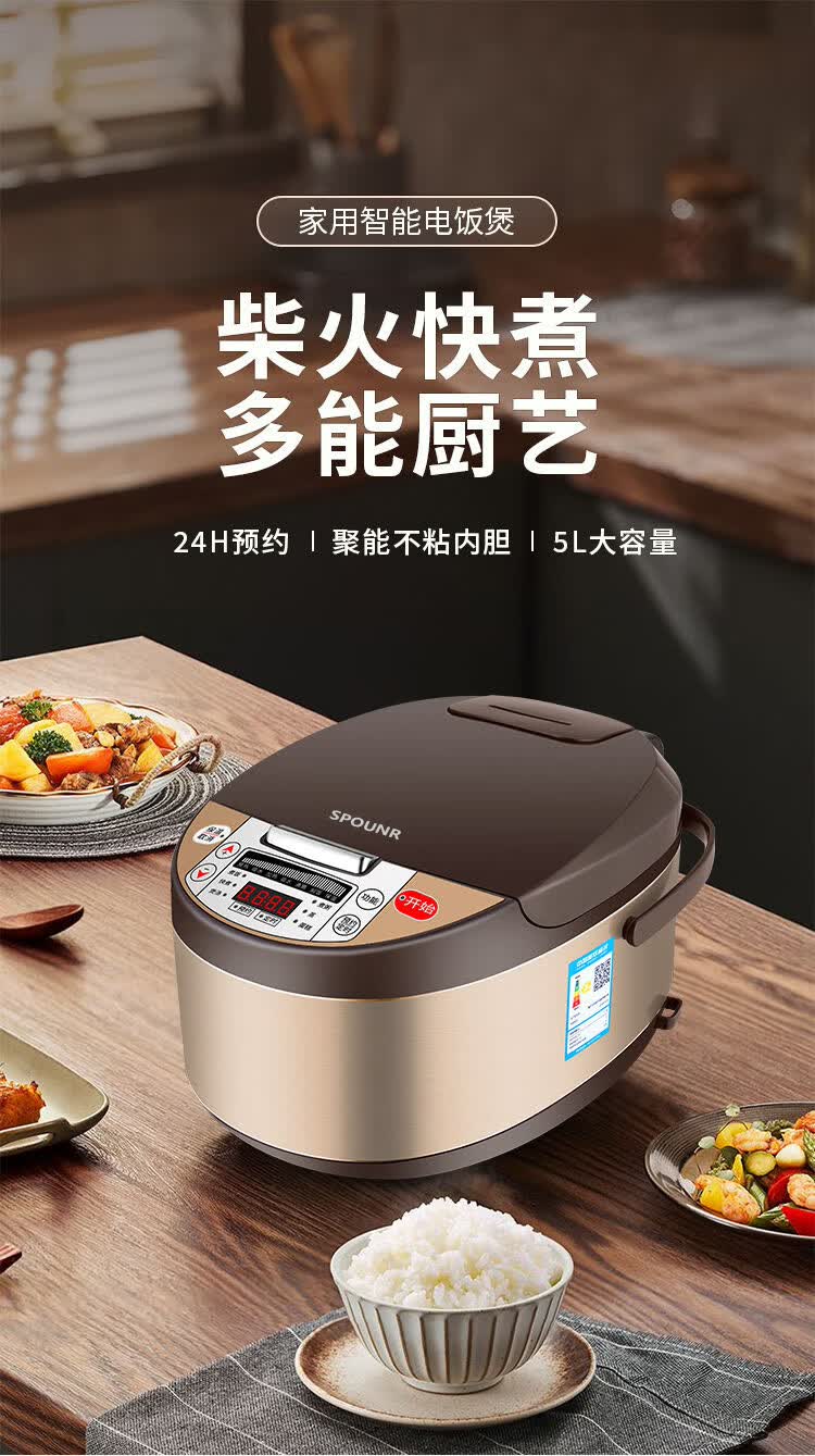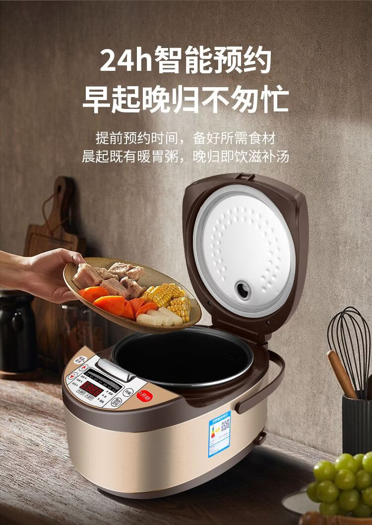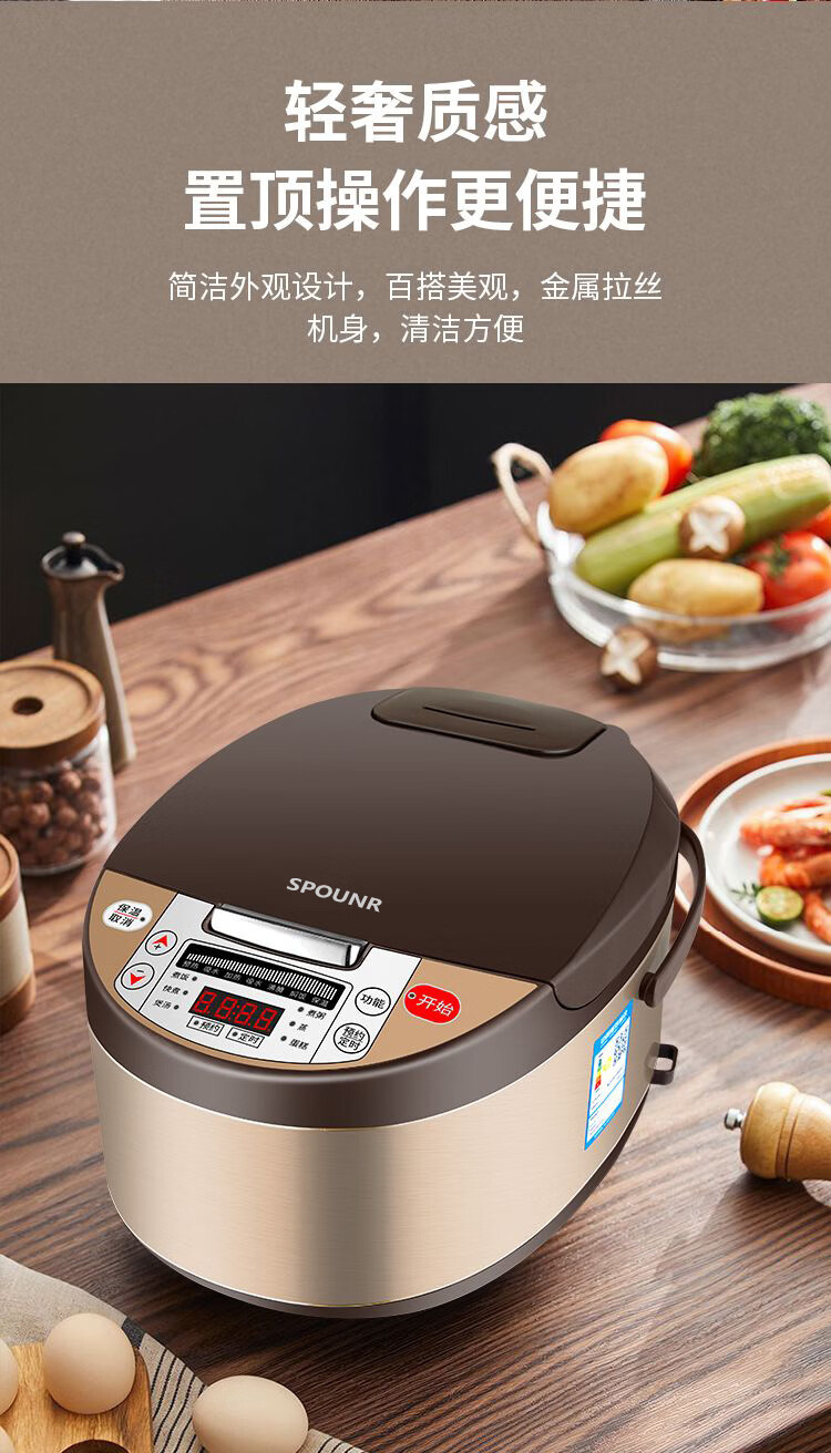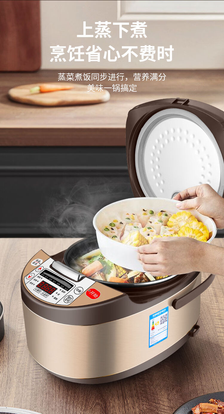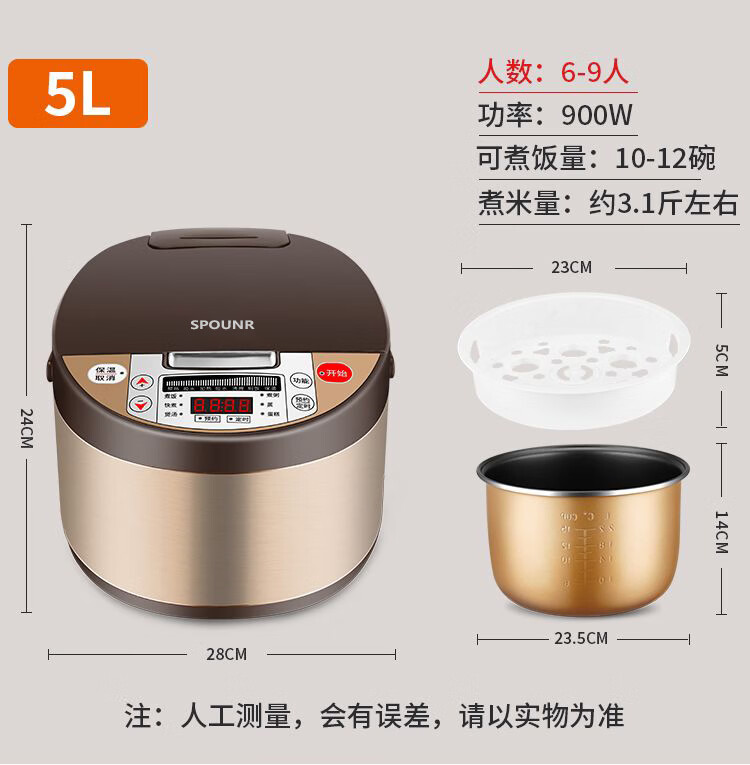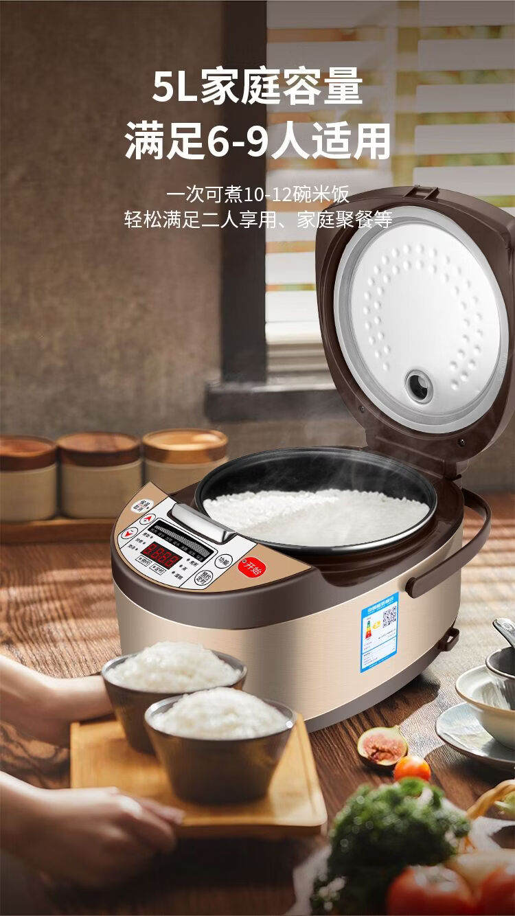 正品苏泊家用电饭煲智能预约全自动多功能定时微压快煮饭3-5人不粘内胆防溢锅蒸煮电饭锅 5L 黄晶不粘锅-单胆【1-8人】