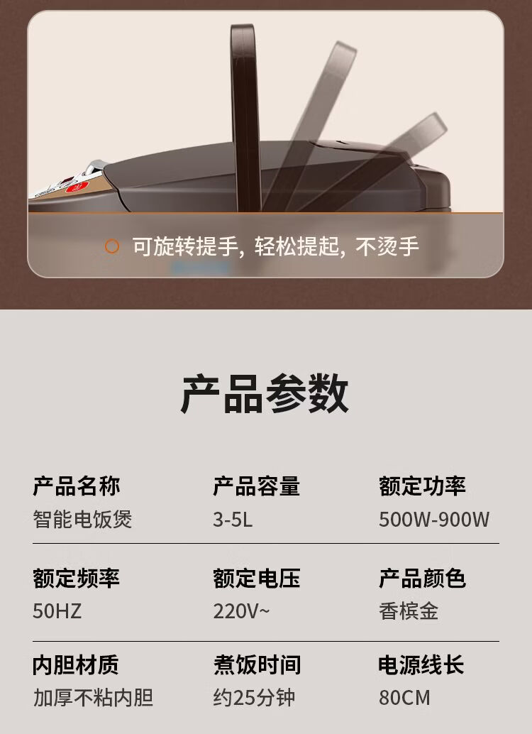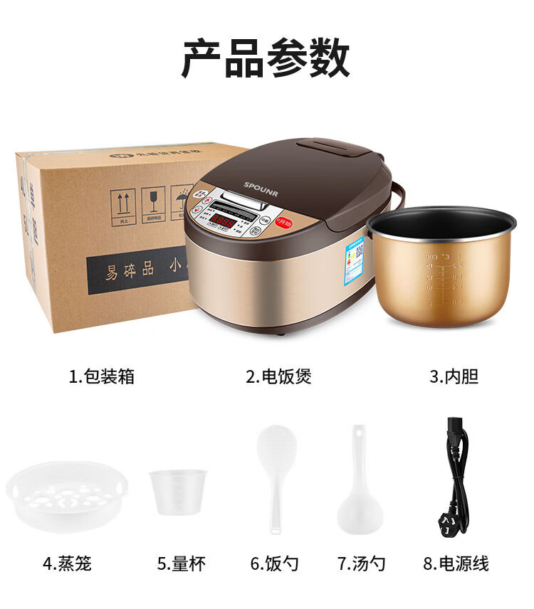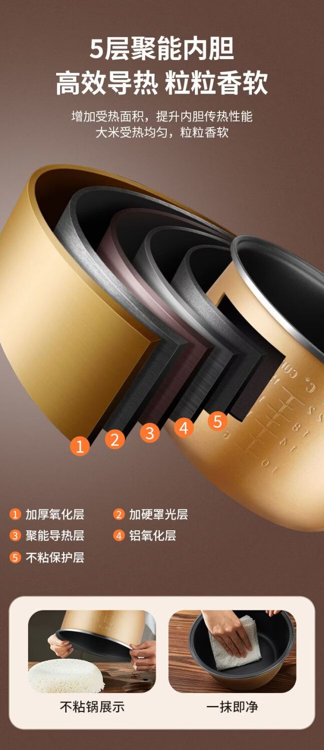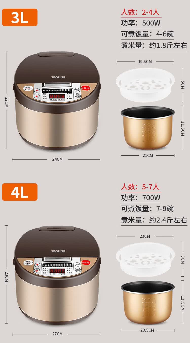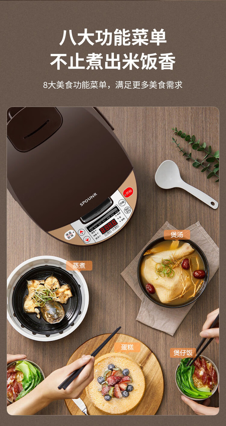 正品苏泊家用电饭煲智能预约全自动多功能定时微压快煮饭3-5人不粘内胆防溢锅蒸煮电饭锅 5L 黄晶不粘锅-单胆【1-8人】