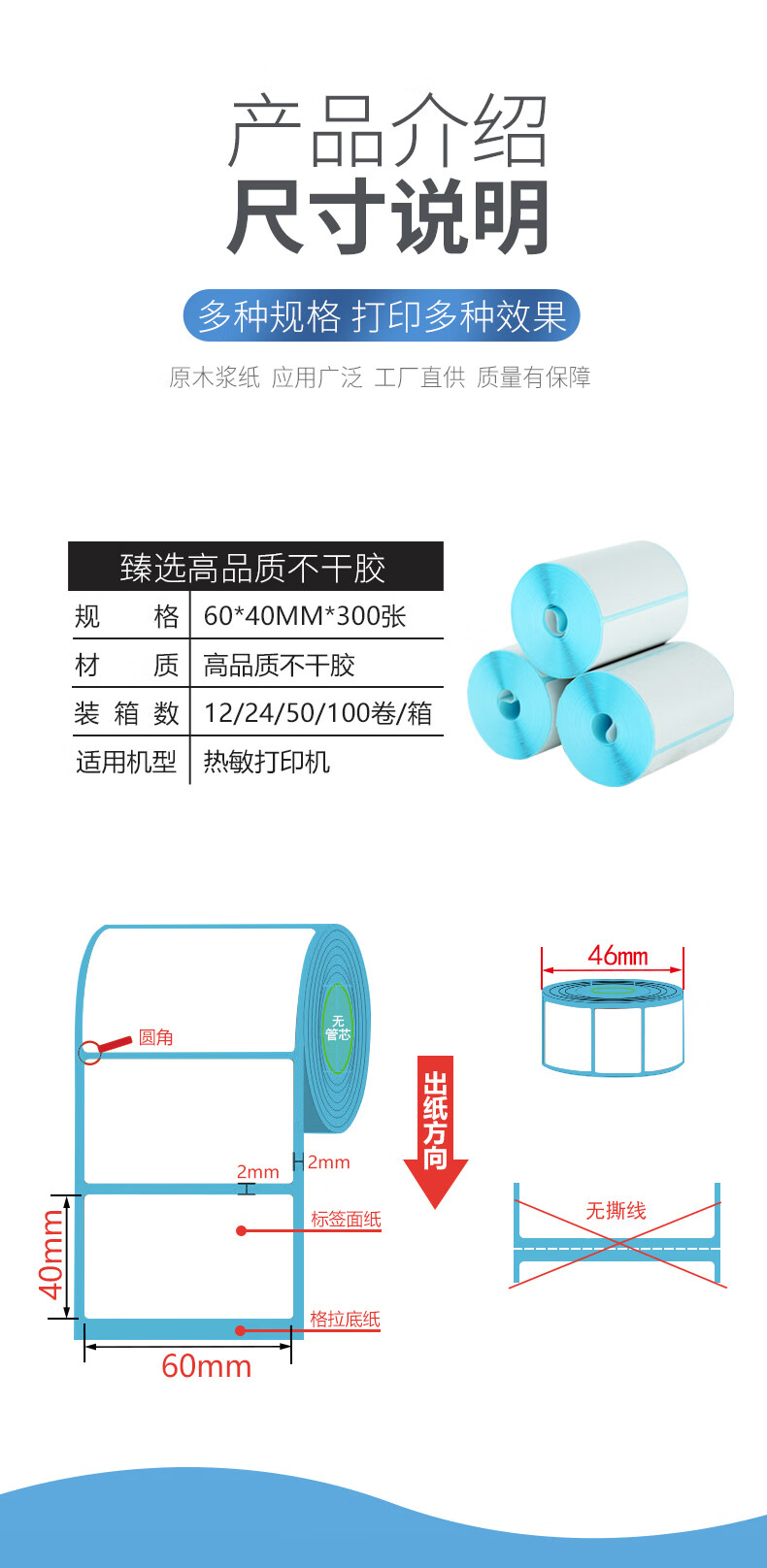 冠华不干胶标签纸菜鸟驿站商超40x30秤纸60x40无管芯快递入库取件码贴纸100*100*150三防热敏打印纸 40x30-300张 无管芯50卷/箱