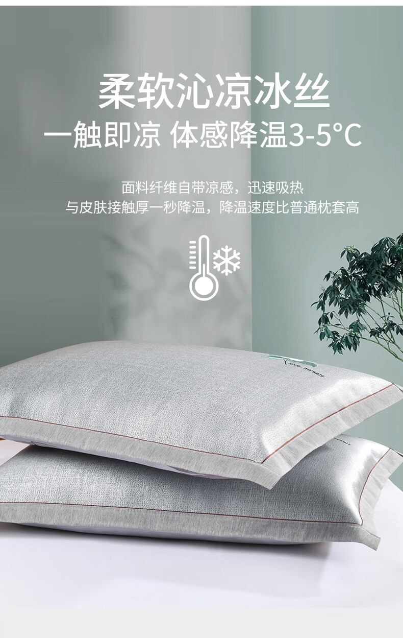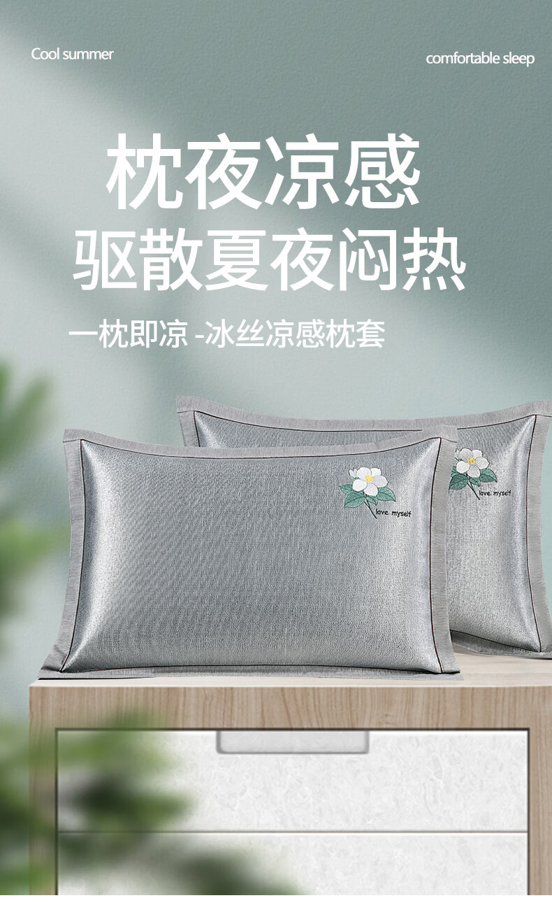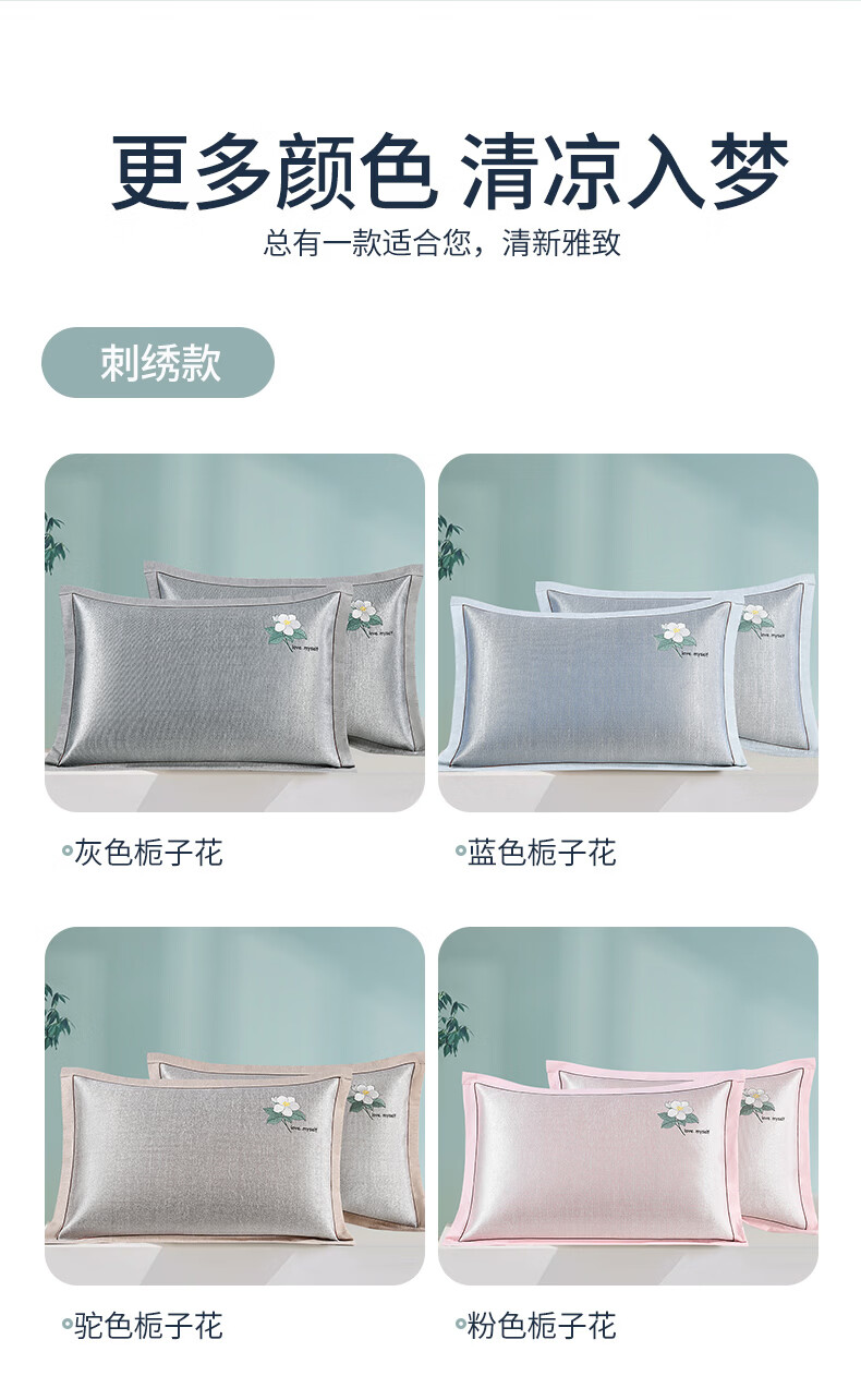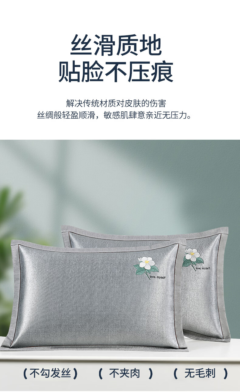 恒源祥冰丝枕套 A类刺绣夏季凉感可机洗单只透气学生宿舍单双人枕头套 灰色栀子花 单只 48cm*74cm