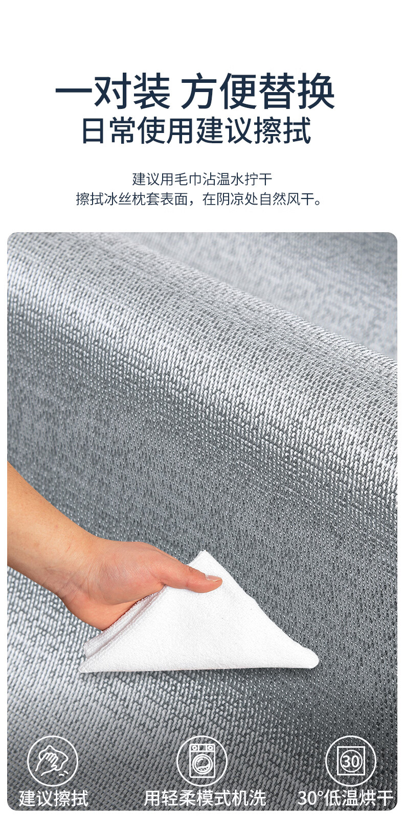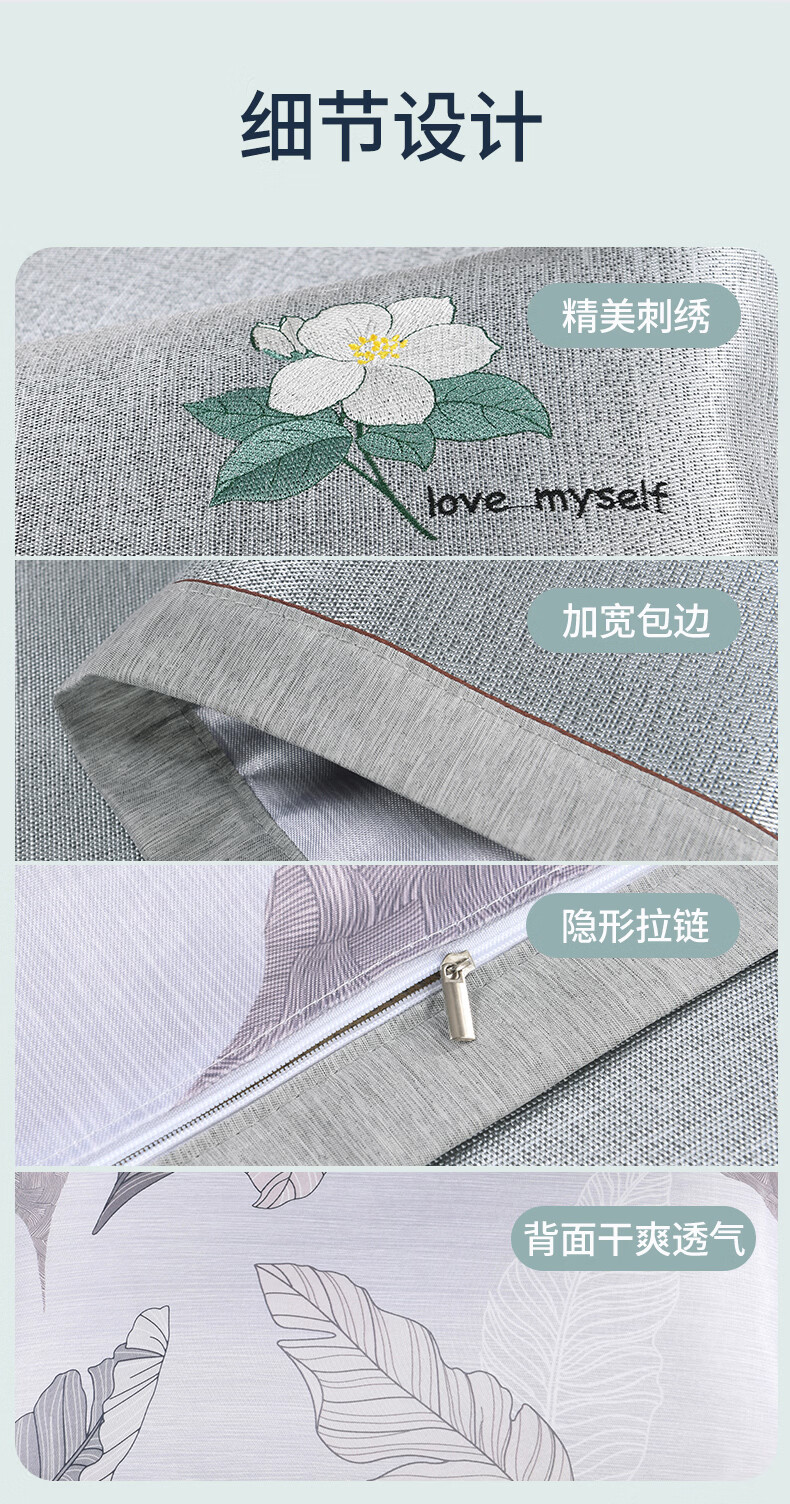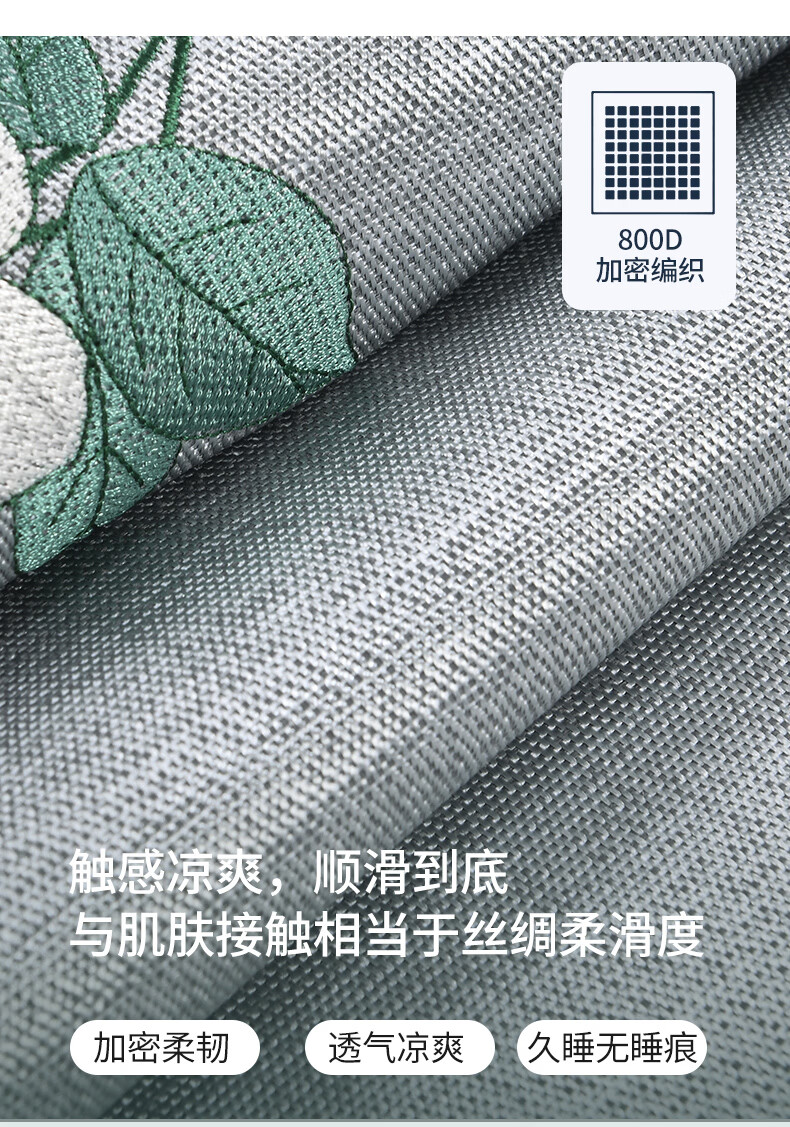 恒源祥冰丝枕套 A类刺绣夏季凉感可机洗单只透气学生宿舍单双人枕头套 灰色栀子花 单只 48cm*74cm