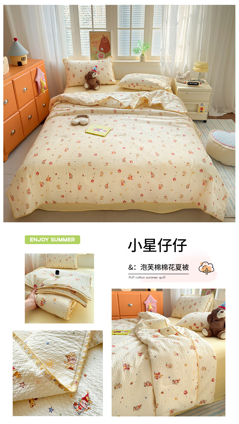无印良品100%新疆棉花空调被200x230cm夏季可机洗裸睡夏凉被家用双人夏被 小星仔仔【A类面料 亲肤裸睡】 200cmx230cm单夏被