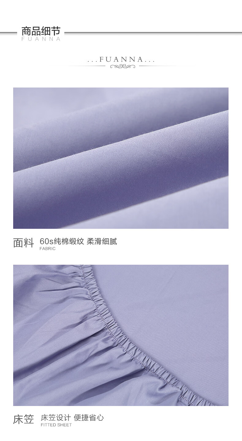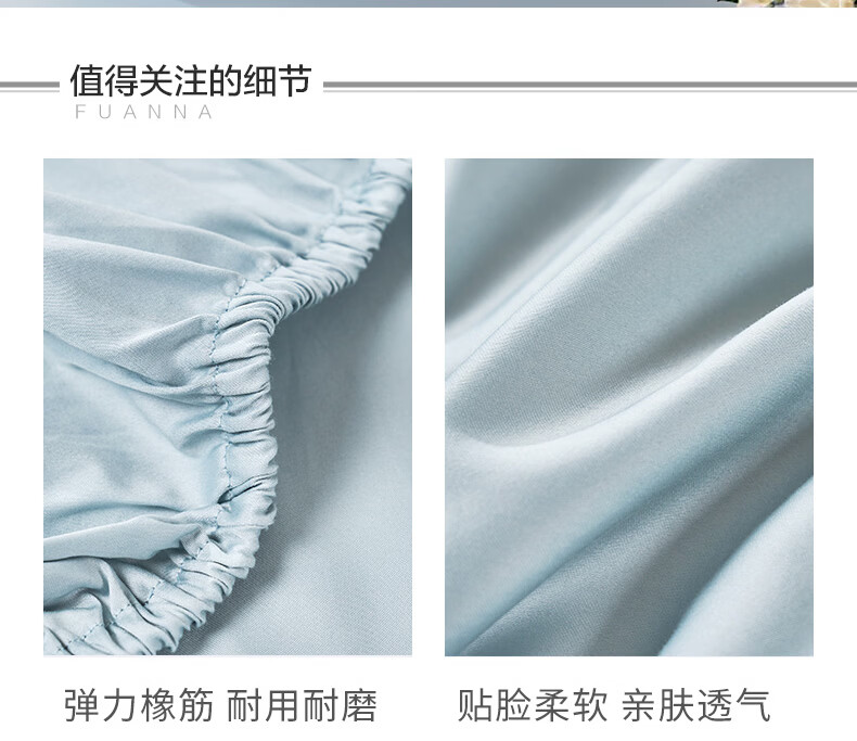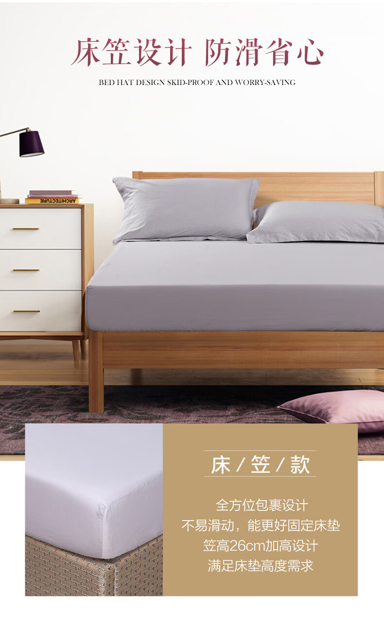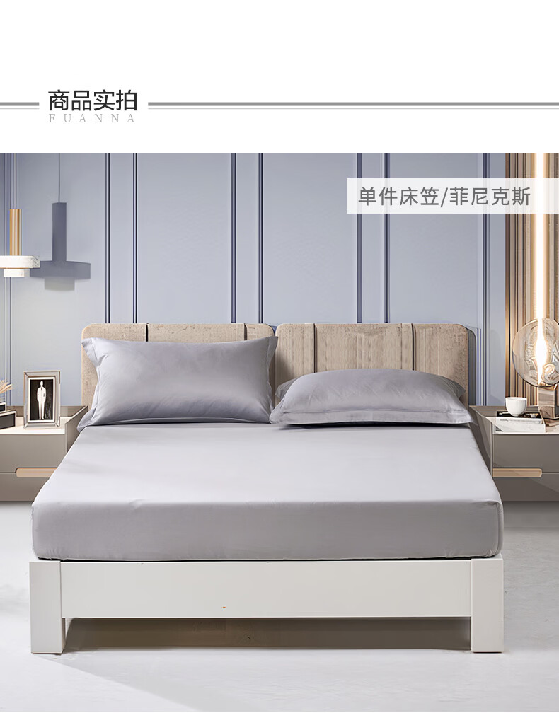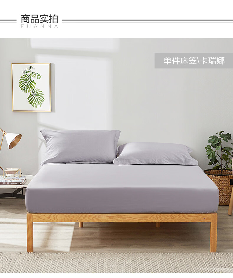 富安娜 全棉床笠罩单件 纯棉床单床罩360°隔脏床垫保护套 可水洗床罩 【60S长绒棉贡缎】灰色 1.2米床 120cm*200cm
