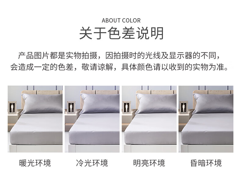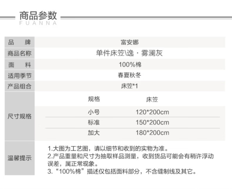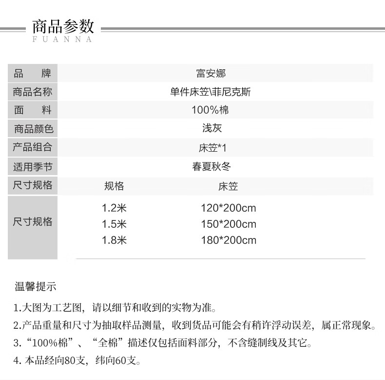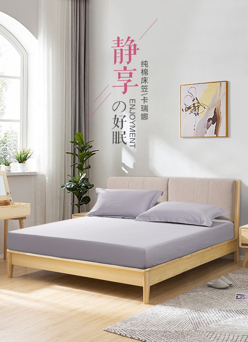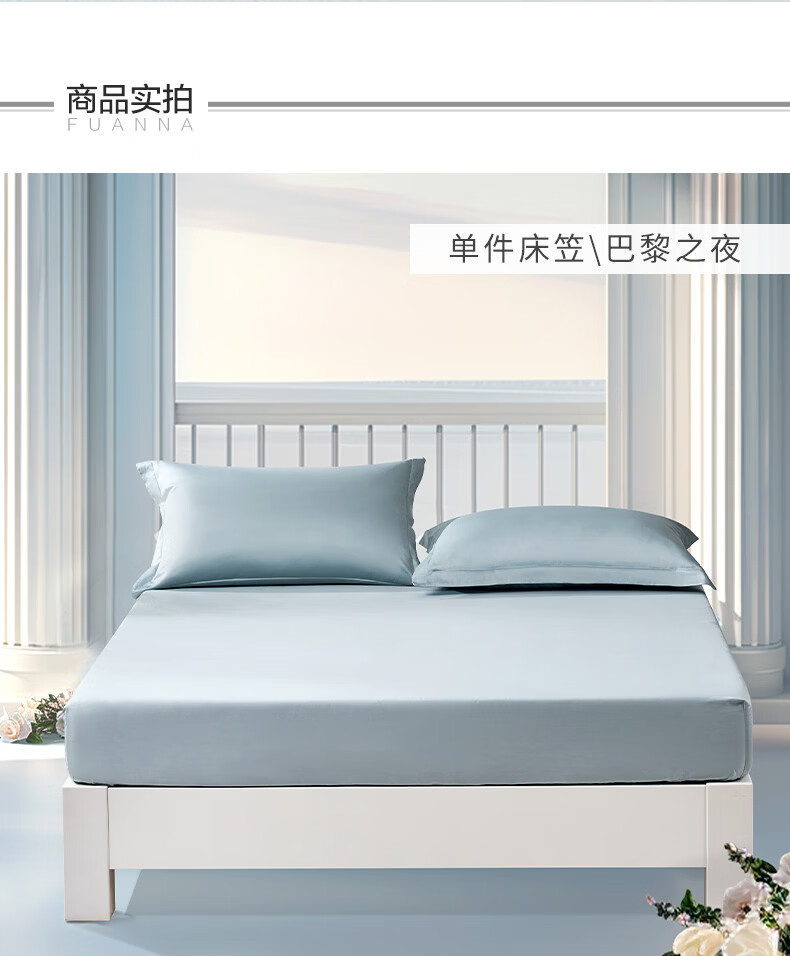 富安娜 全棉床笠罩单件 纯棉床单床罩360°隔脏床垫保护套 可水洗床罩 【60S长绒棉贡缎】灰色 1.2米床 120cm*200cm