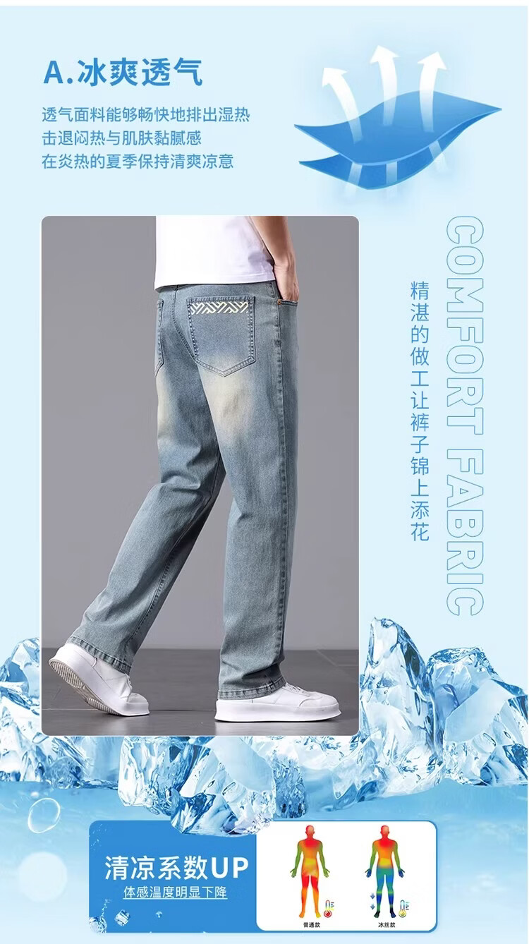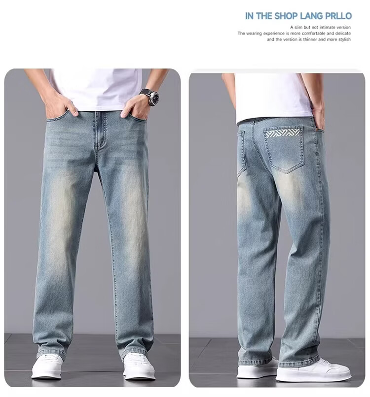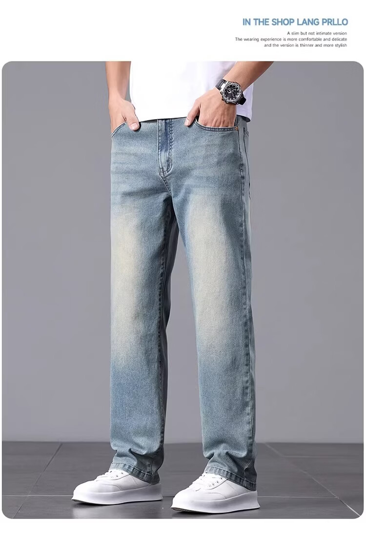 真维斯2026春夏薄款牛仔裤男士宽松直筒男裤时尚舒适透气商务百搭长裤男 复古蓝 28 【推荐85-105斤】