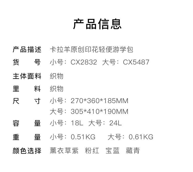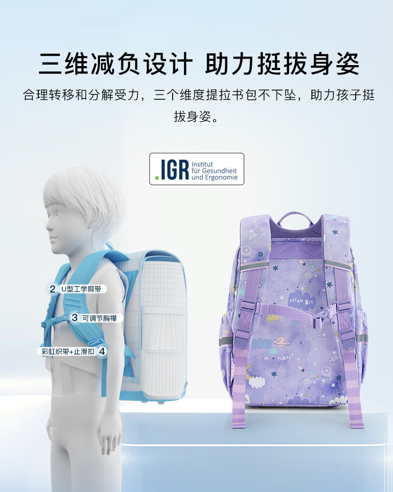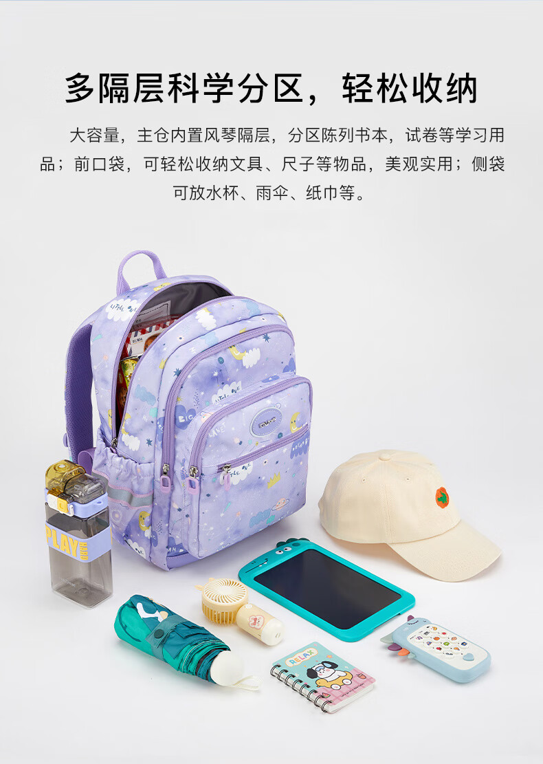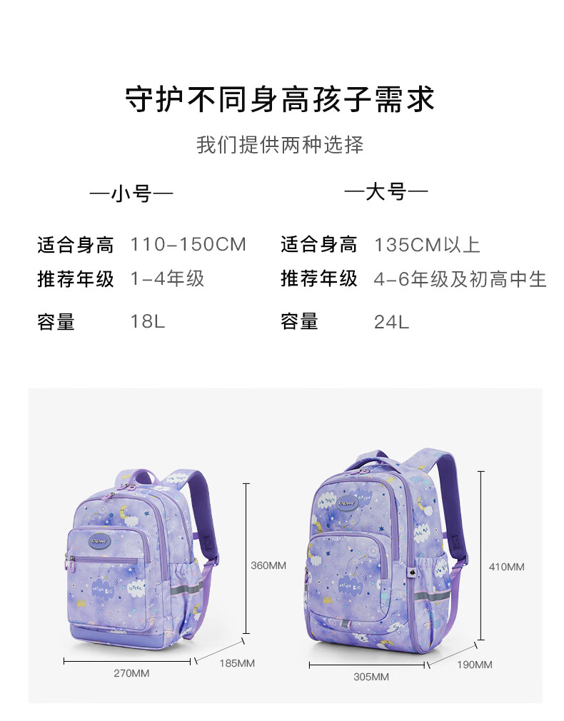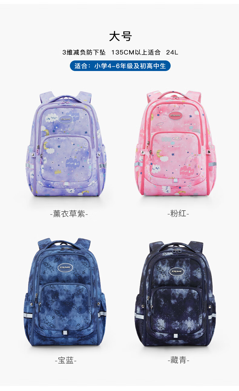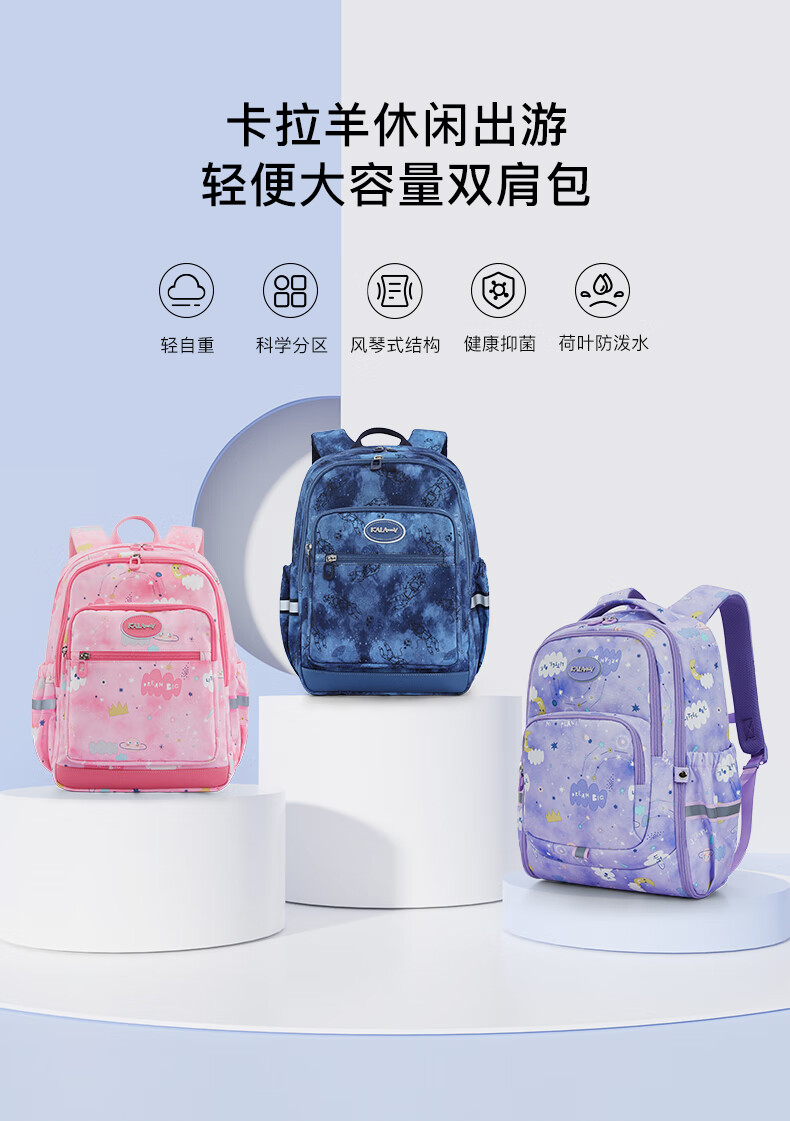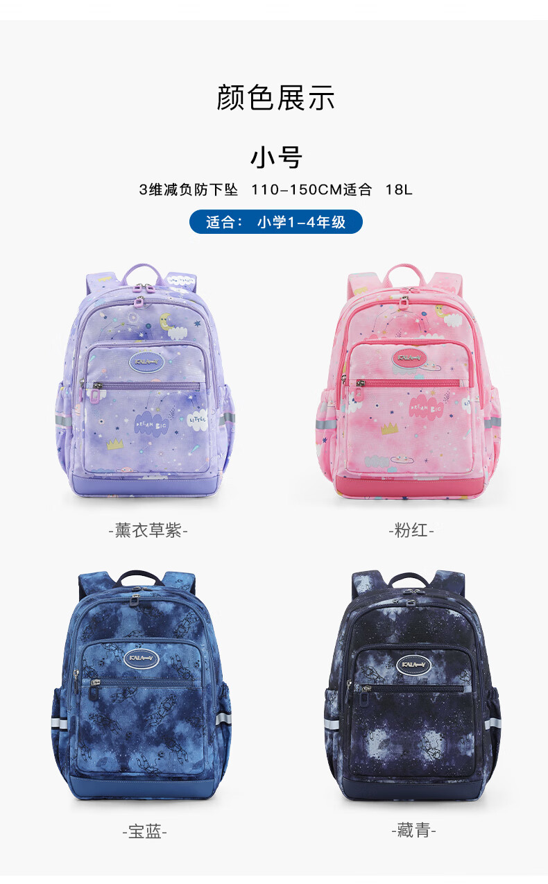 卡拉羊(KALA·Y)【蒋勤勤代言】书包小学生1-4年级游学减负儿童休闲出游双肩背包 小号-薰衣草紫爱丽丝【身高110-150cm】