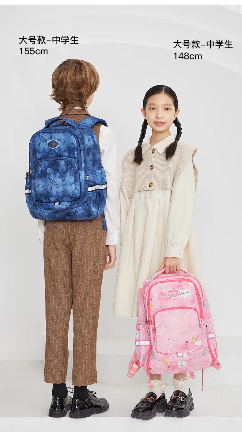 卡拉羊【蒋勤勤代言】书包小学生1-6年级防下坠减负大嘴书包儿童书包 小号(5维减负)藏青