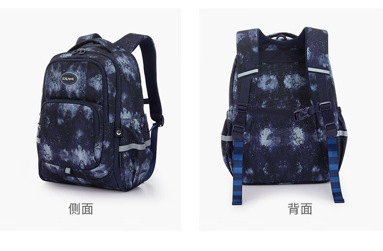卡拉羊中学生书包男女一体式可打开初高中生减负背包旅行出游双肩包 藏青科幻【抑菌里布】