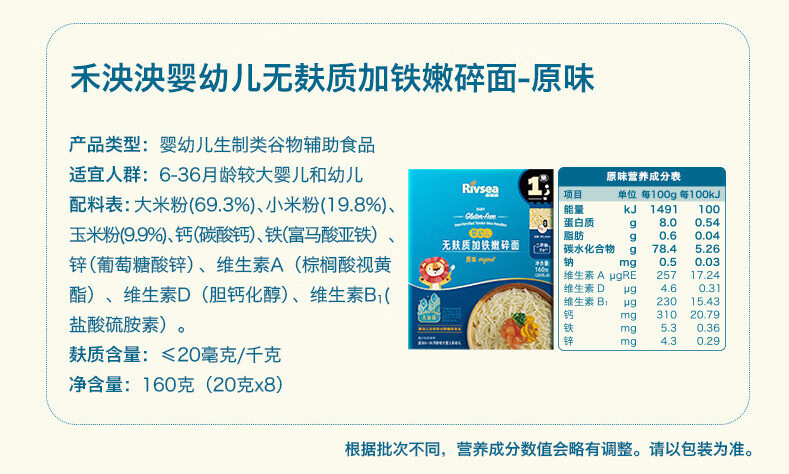 禾泱泱婴幼儿面条营养辅食面条 无添加食用盐白砂糖 6个月以上儿童面条 1阶河套小麦二价铁嫩圈圈面原味160g