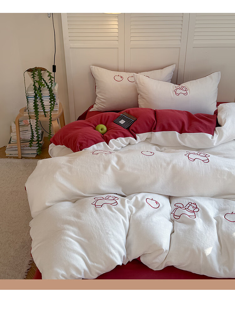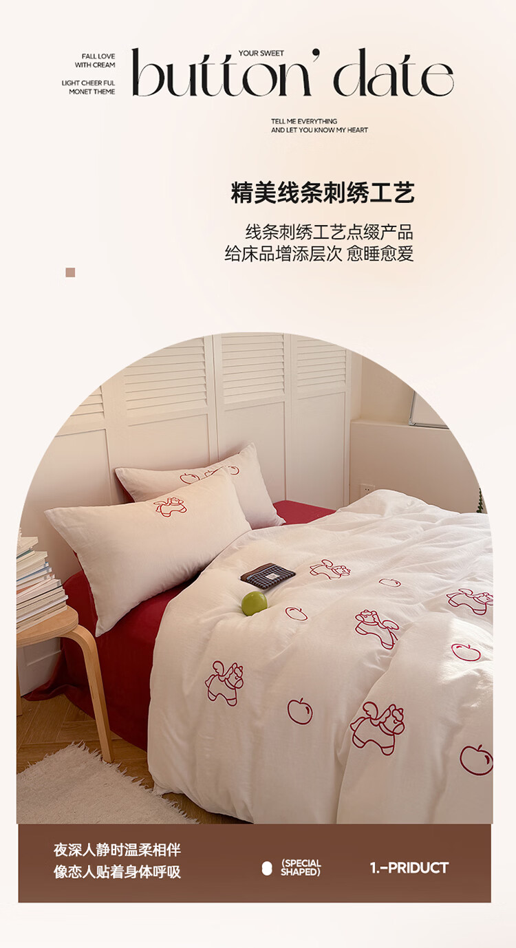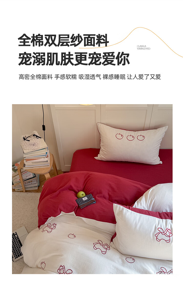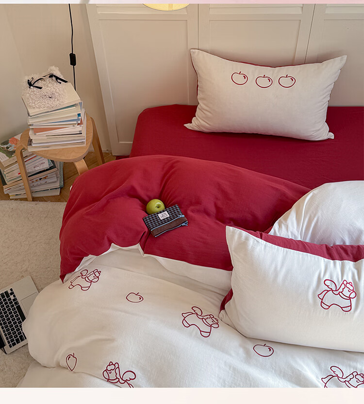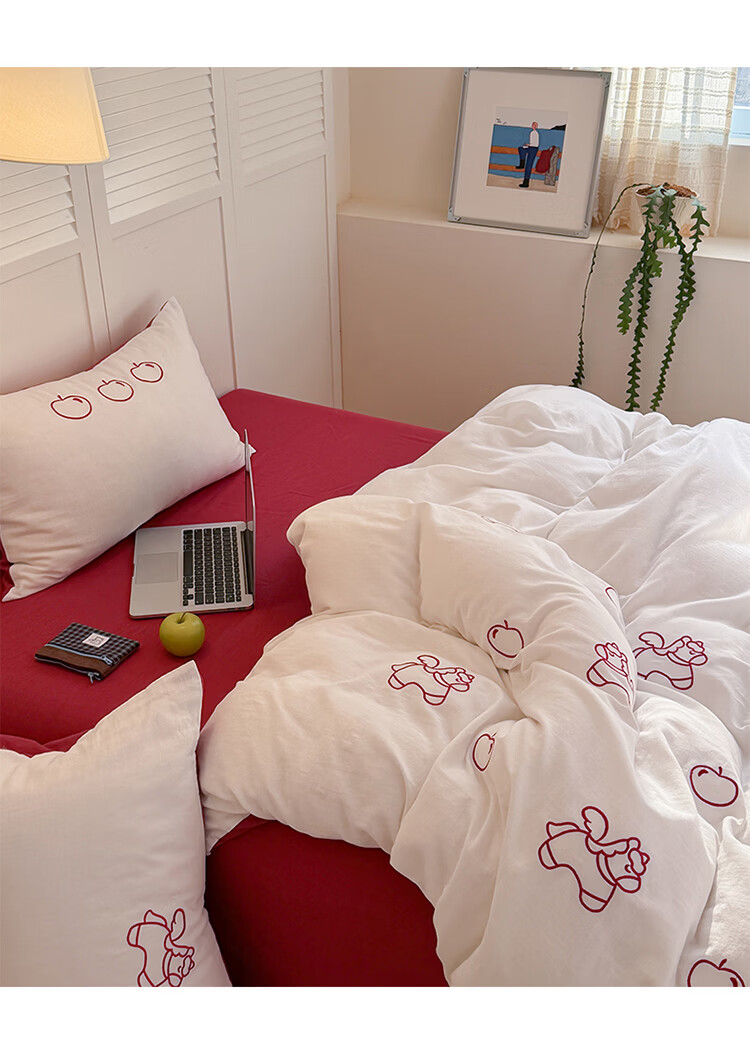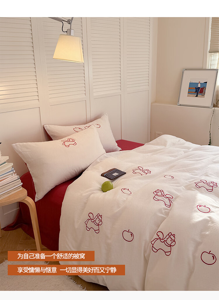 ROLAND LIVE可爱风全棉双层纱四件套刺绣被套透气床单床笠儿童床上用品三件套 FOR 全棉双层纱套件-小马苹果 1.2米床 床单款 【被套150*200cm】