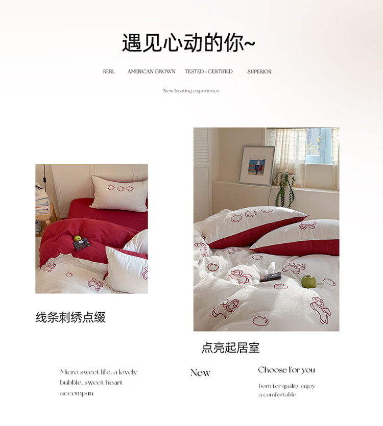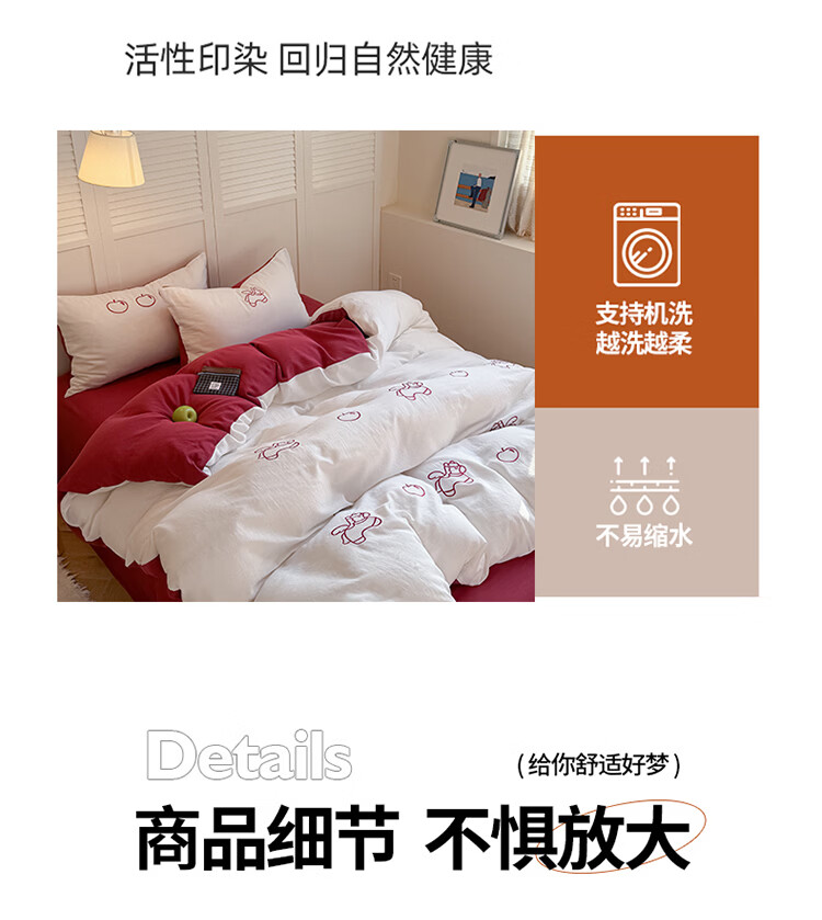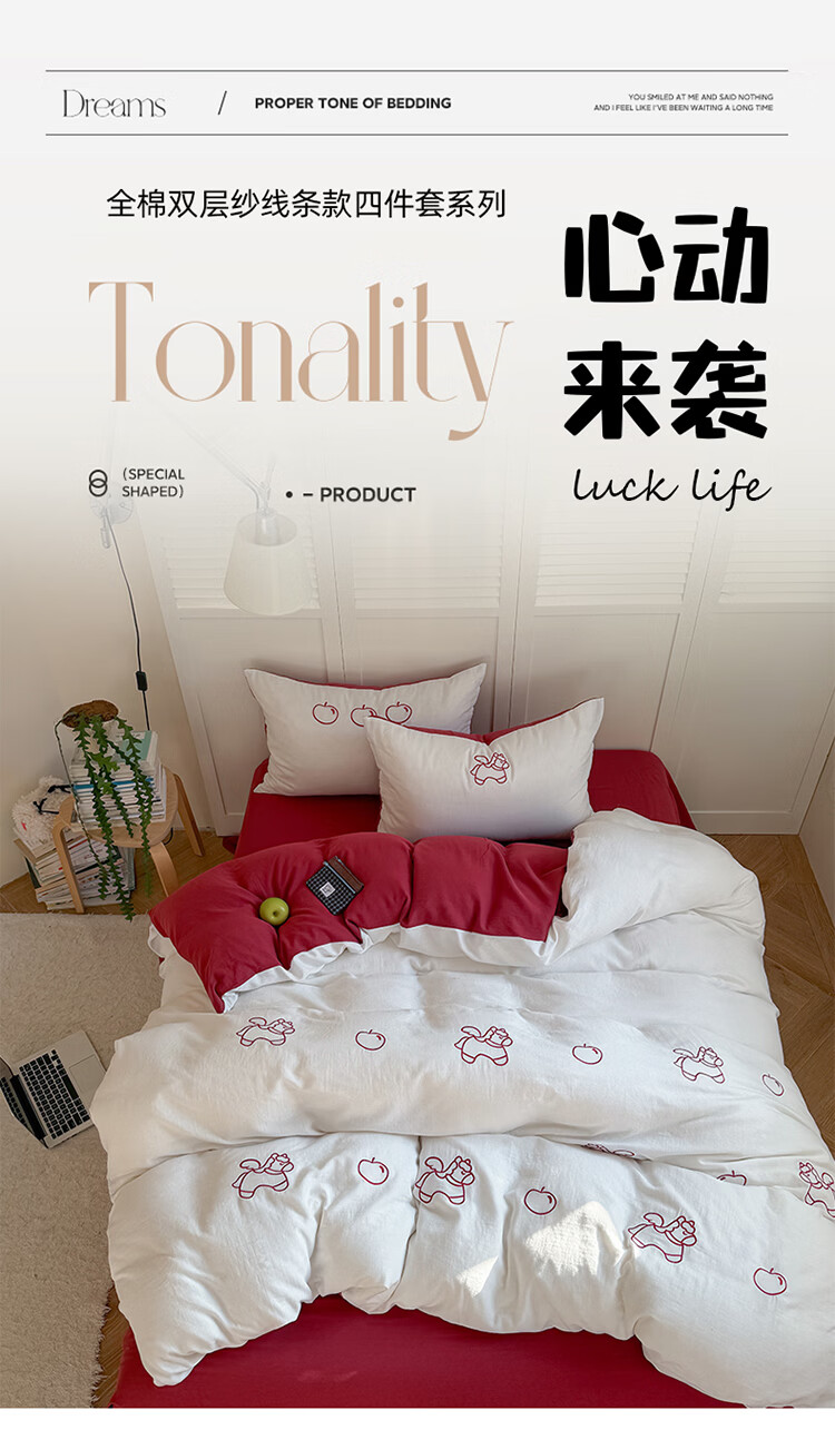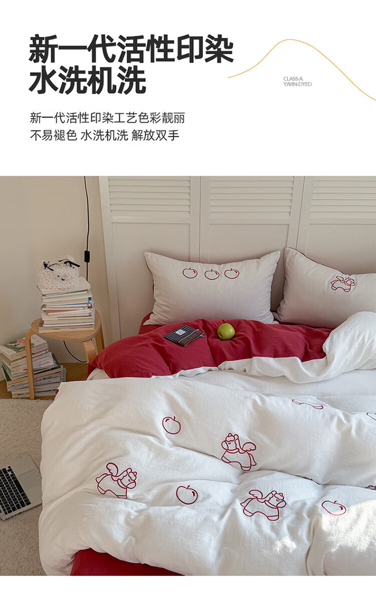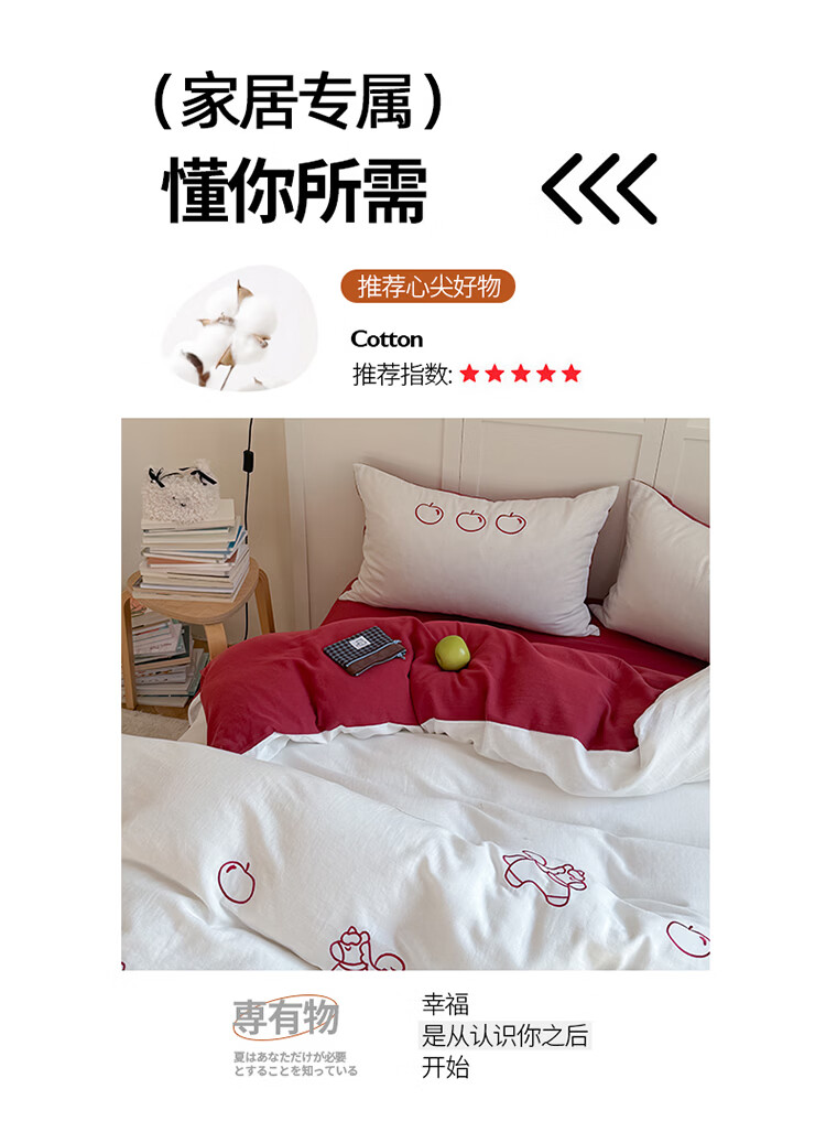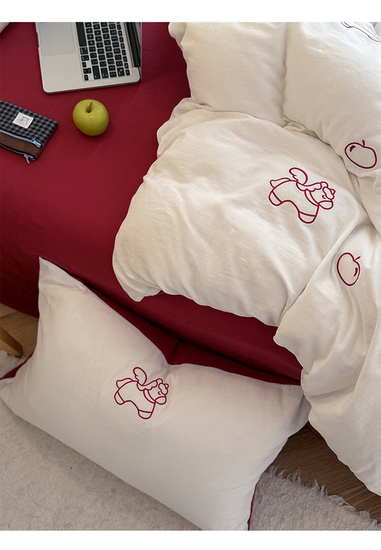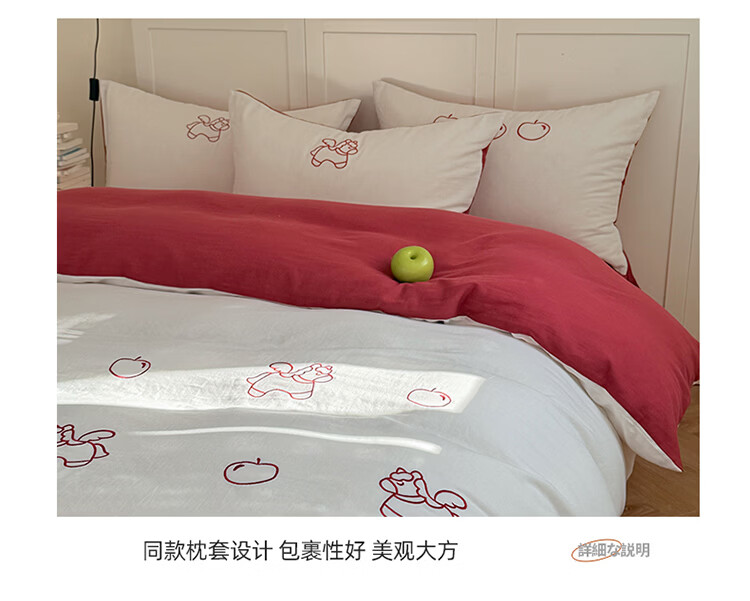 ROLAND LIVE可爱风全棉双层纱四件套刺绣被套透气床单床笠儿童床上用品三件套 FOR 全棉双层纱套件-小马苹果 1.2米床 床单款 【被套150*200cm】