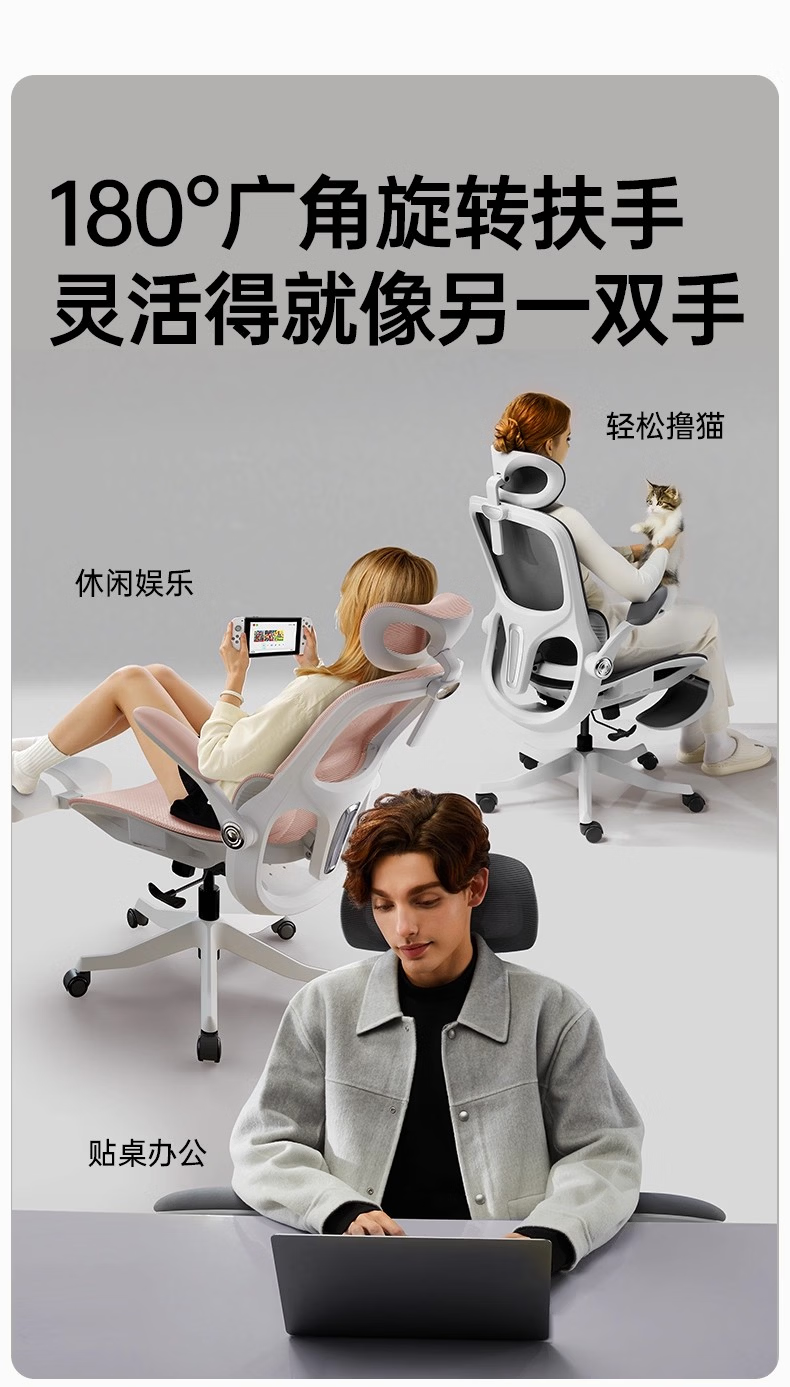 黑白调P2Pro人体工学电脑椅办公椅人工力学座椅电竞椅学习椅4D腰托 P2Pro柔纱米 4D护腰
