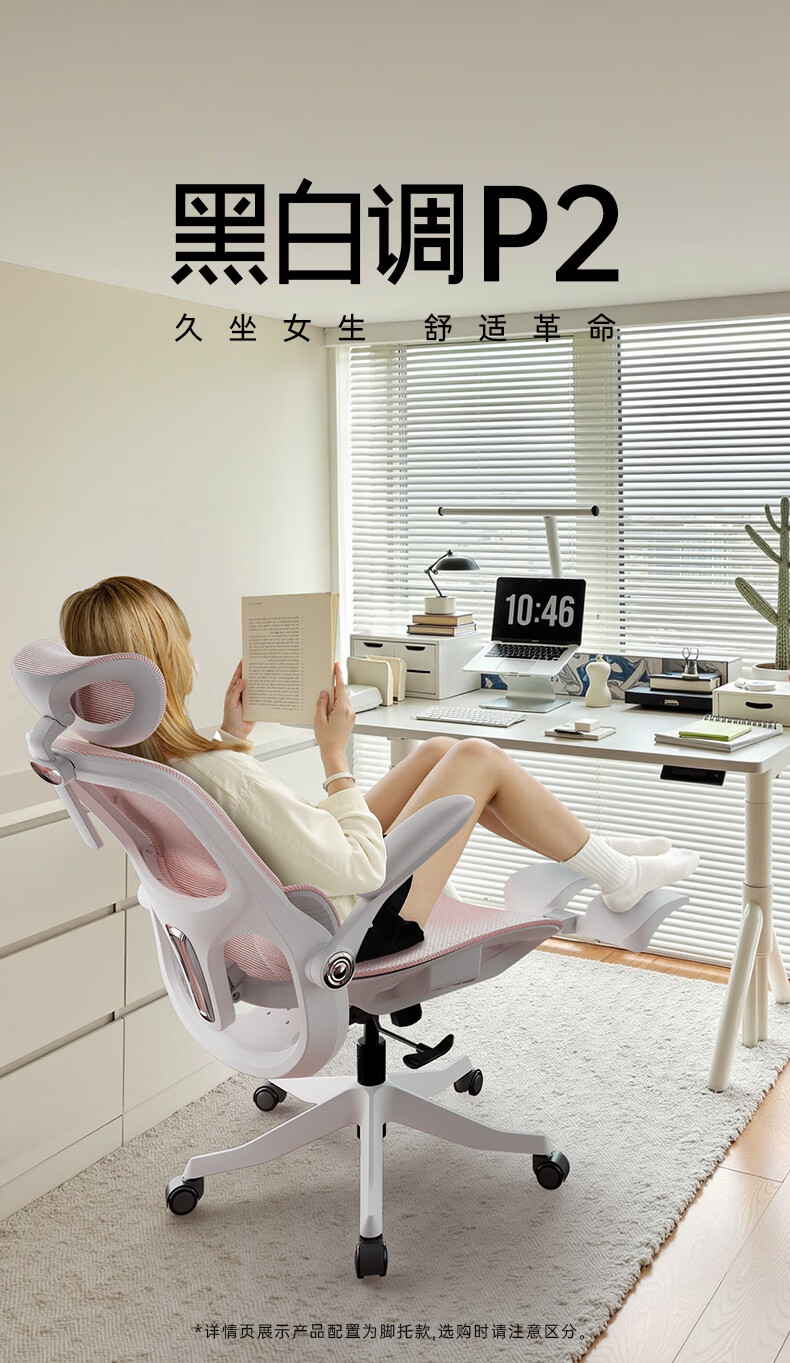 黑白调P2 Pro+二代人体工学电脑椅办公人工力学座椅学习久电竞椅4D腰托 P2Pro+二代霜白脚托 4D腰托+360°扶手
