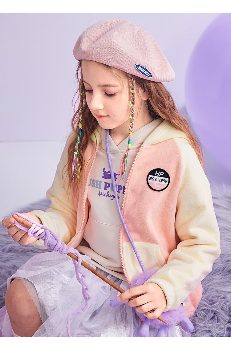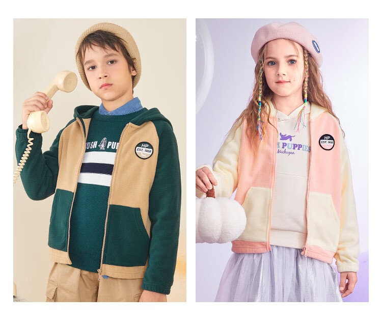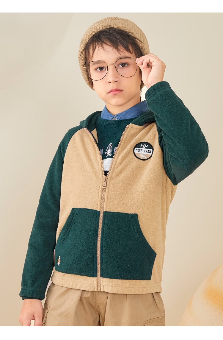 暇步士(Hush Puppies)童装儿童针织外套男童女童春秋中大童拉链开衫摇粒绒外套 丛林绿 140 cm
