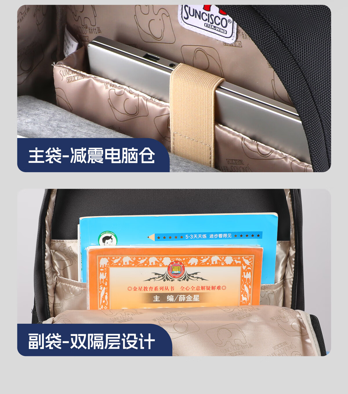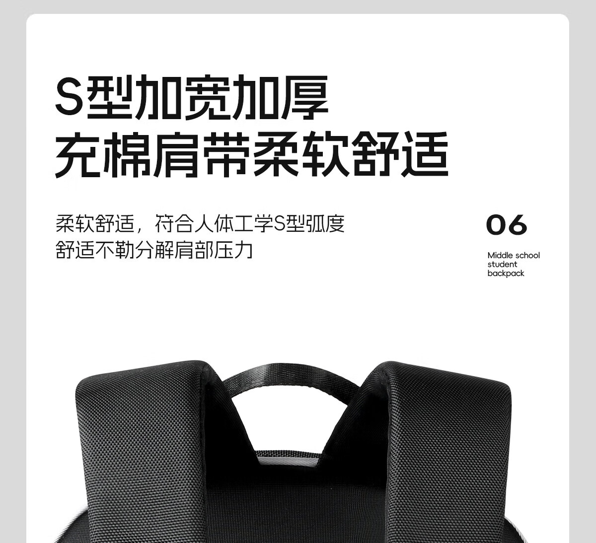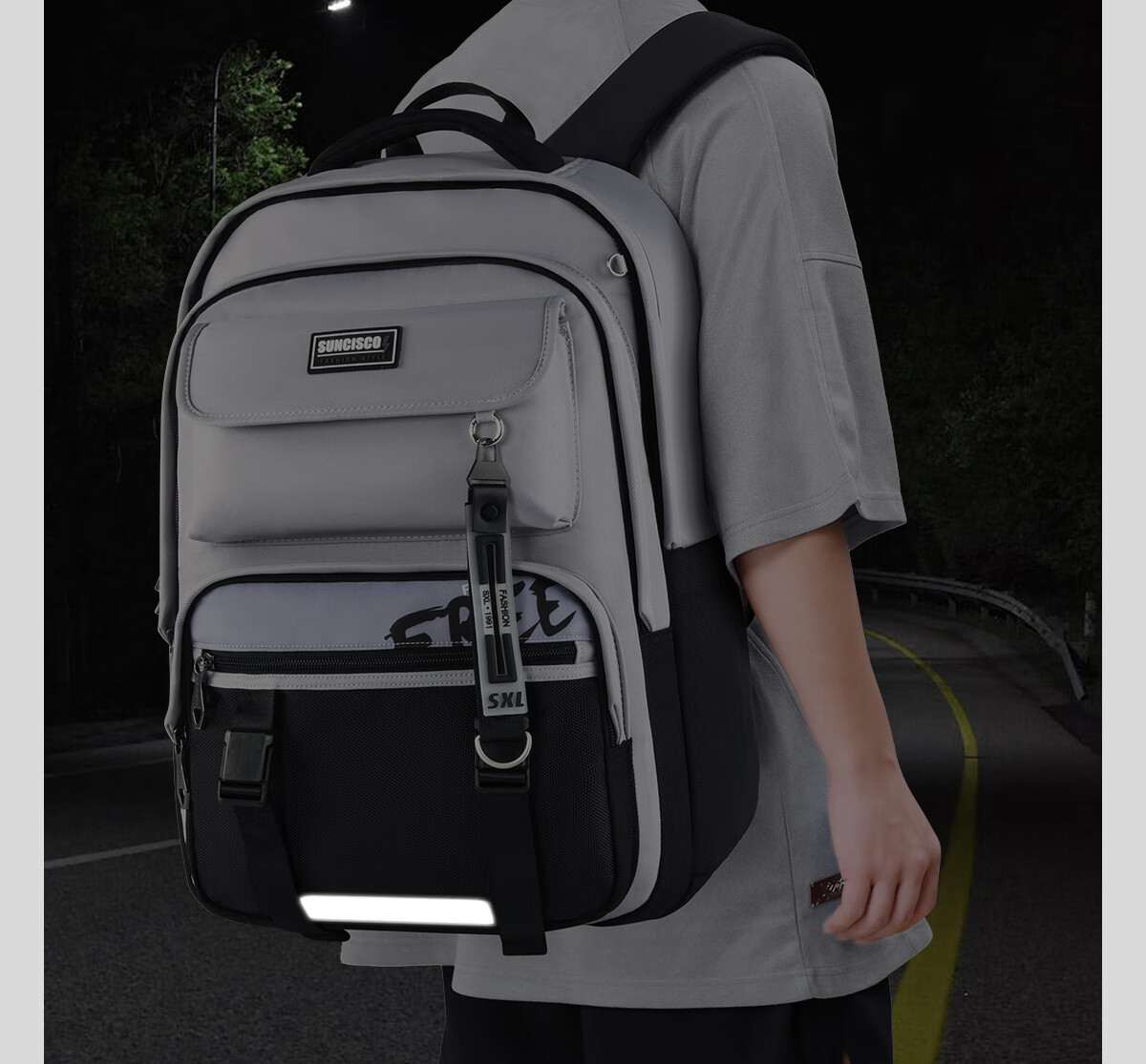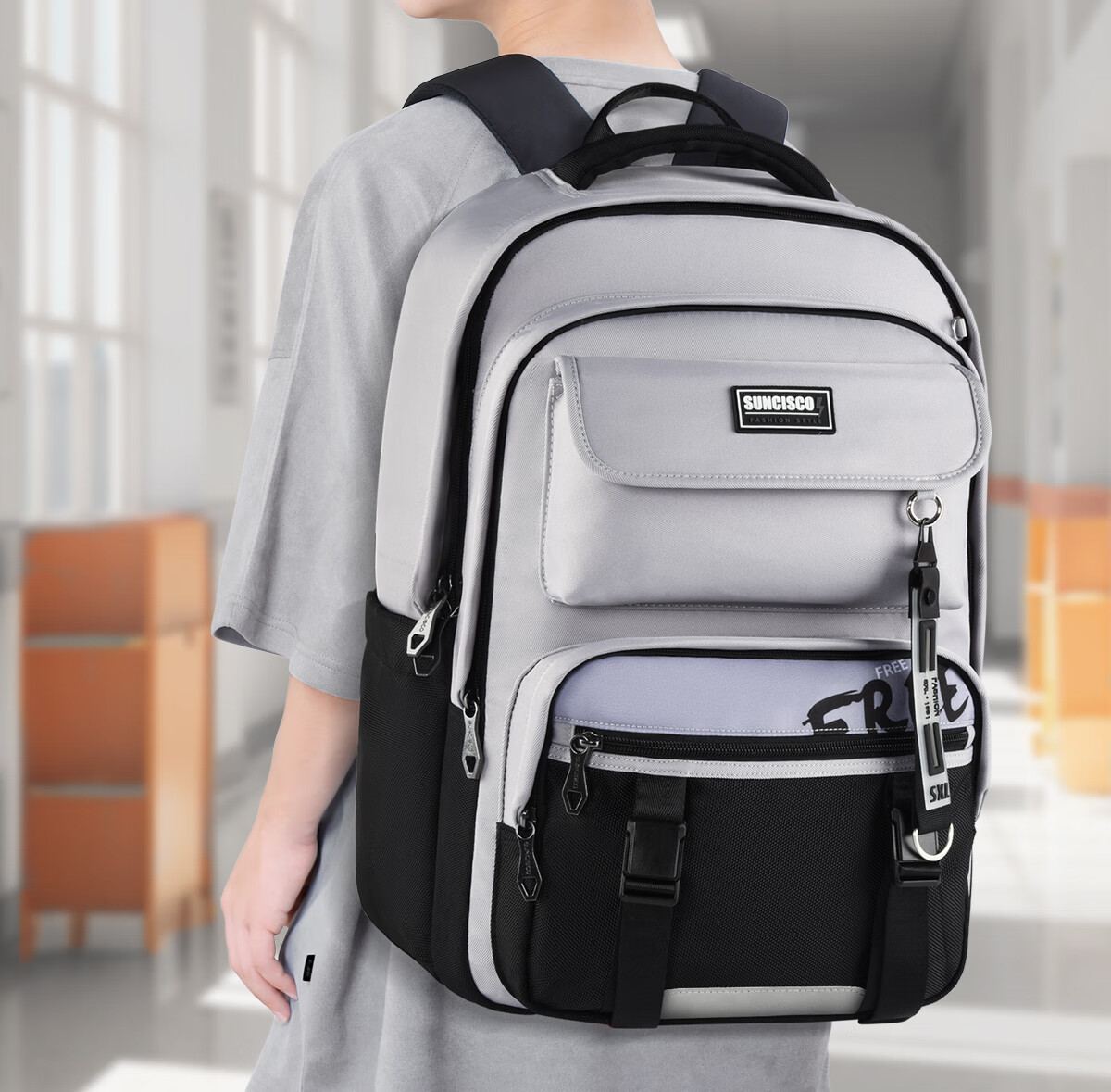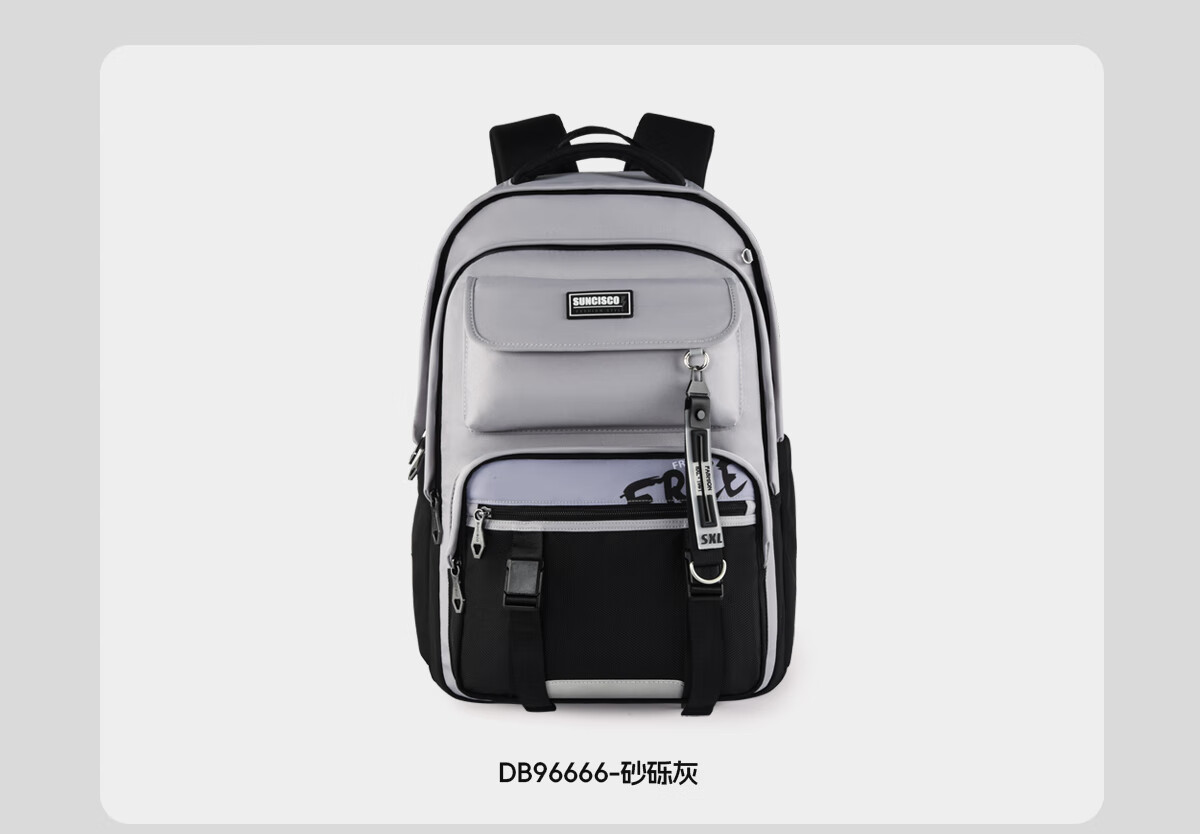 新仕高(SUNCISCO)初中生书包男学生包大容量高中学生2026新款减负护脊男孩双肩包 DB96666黑色 适合155-180CM