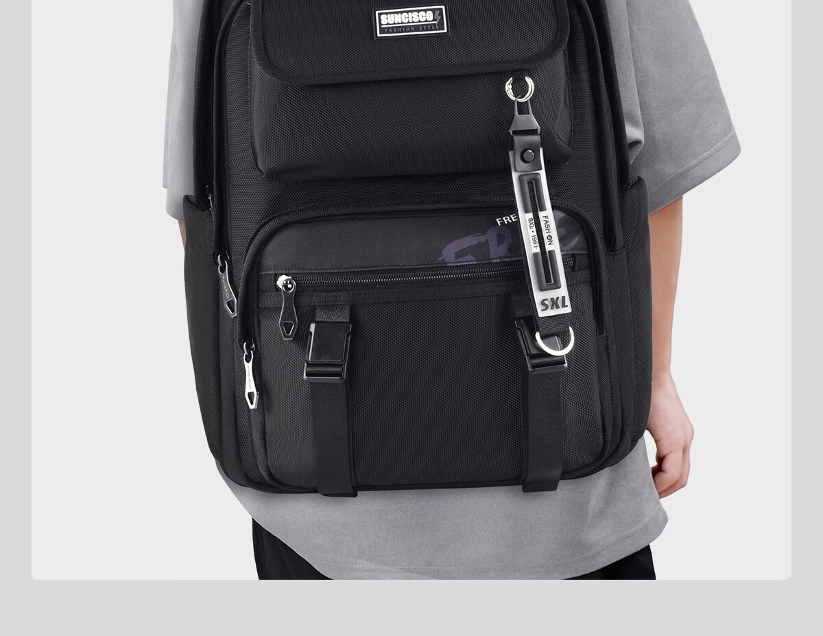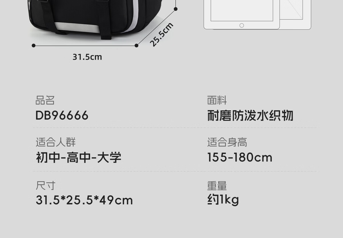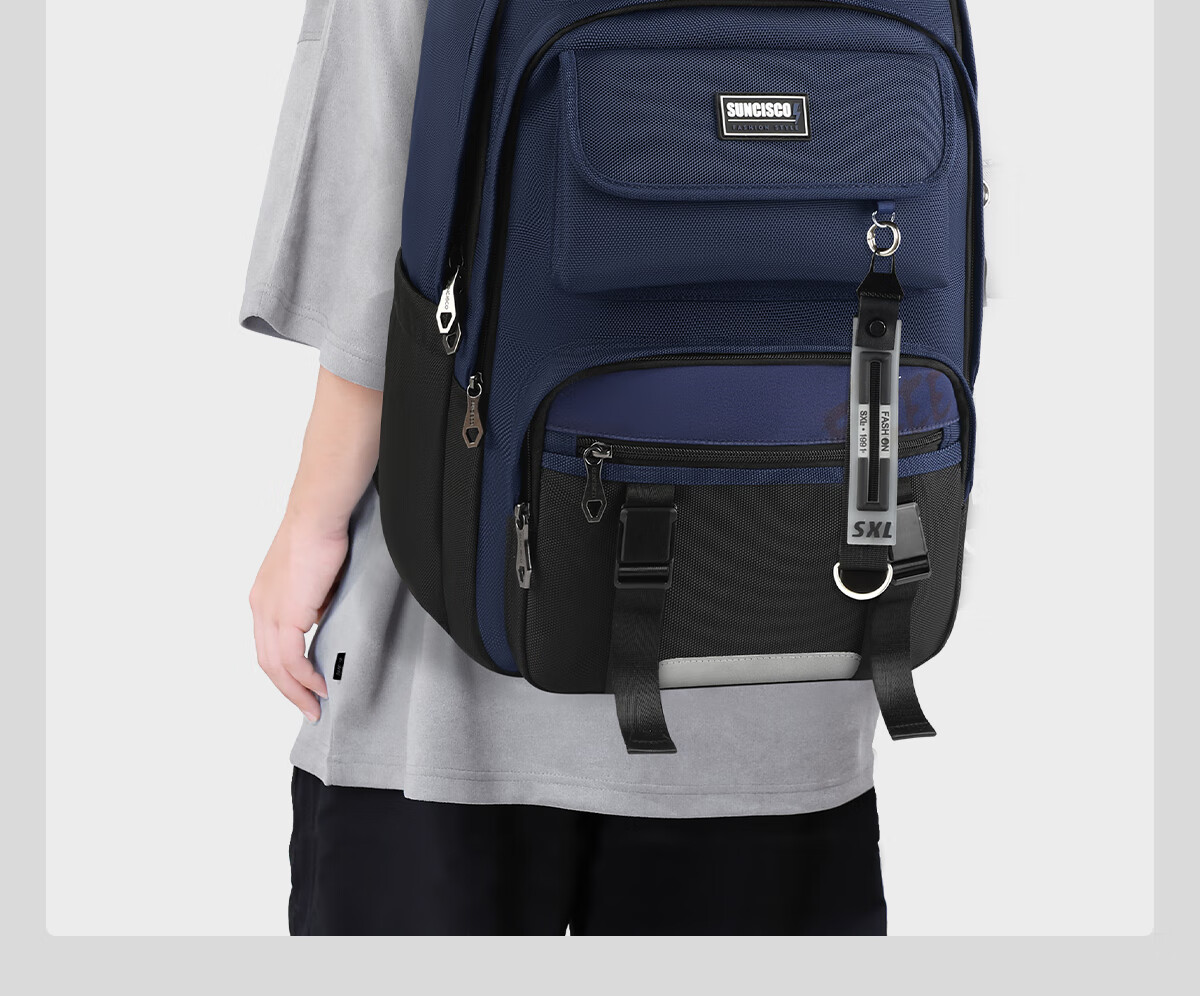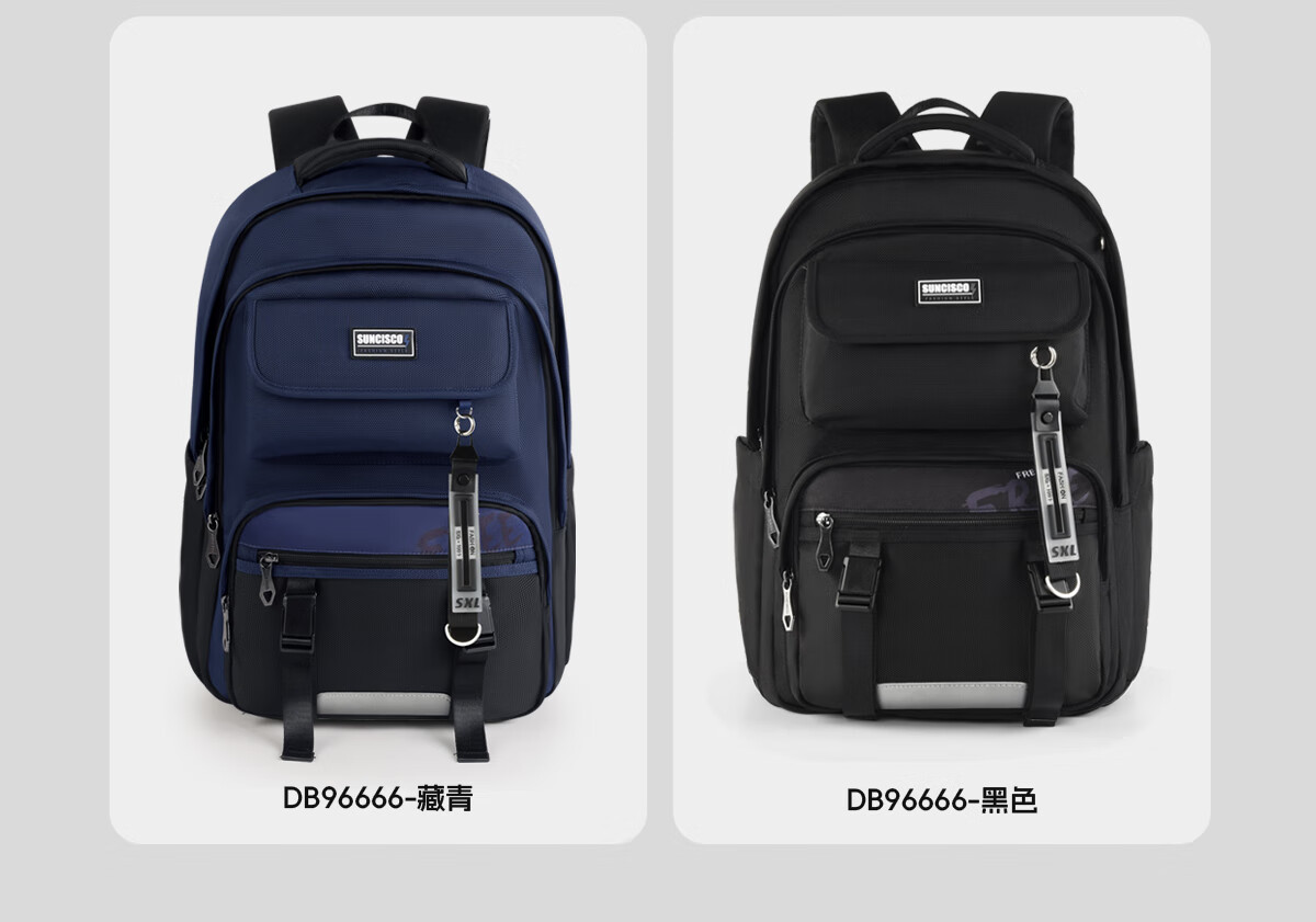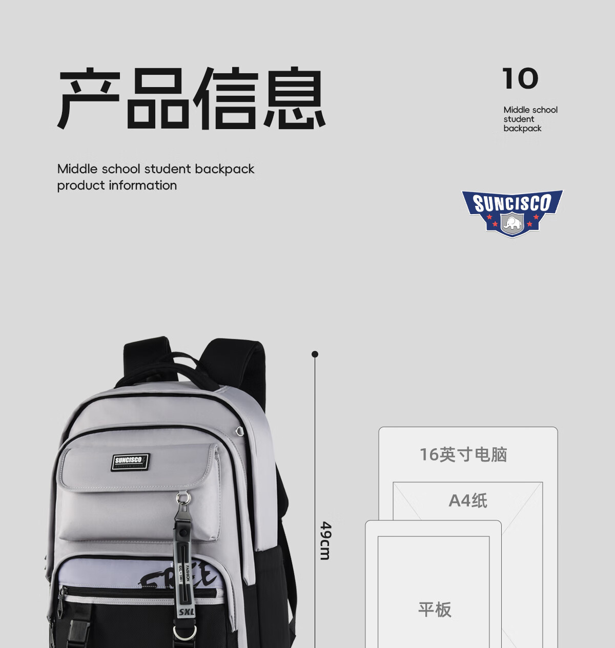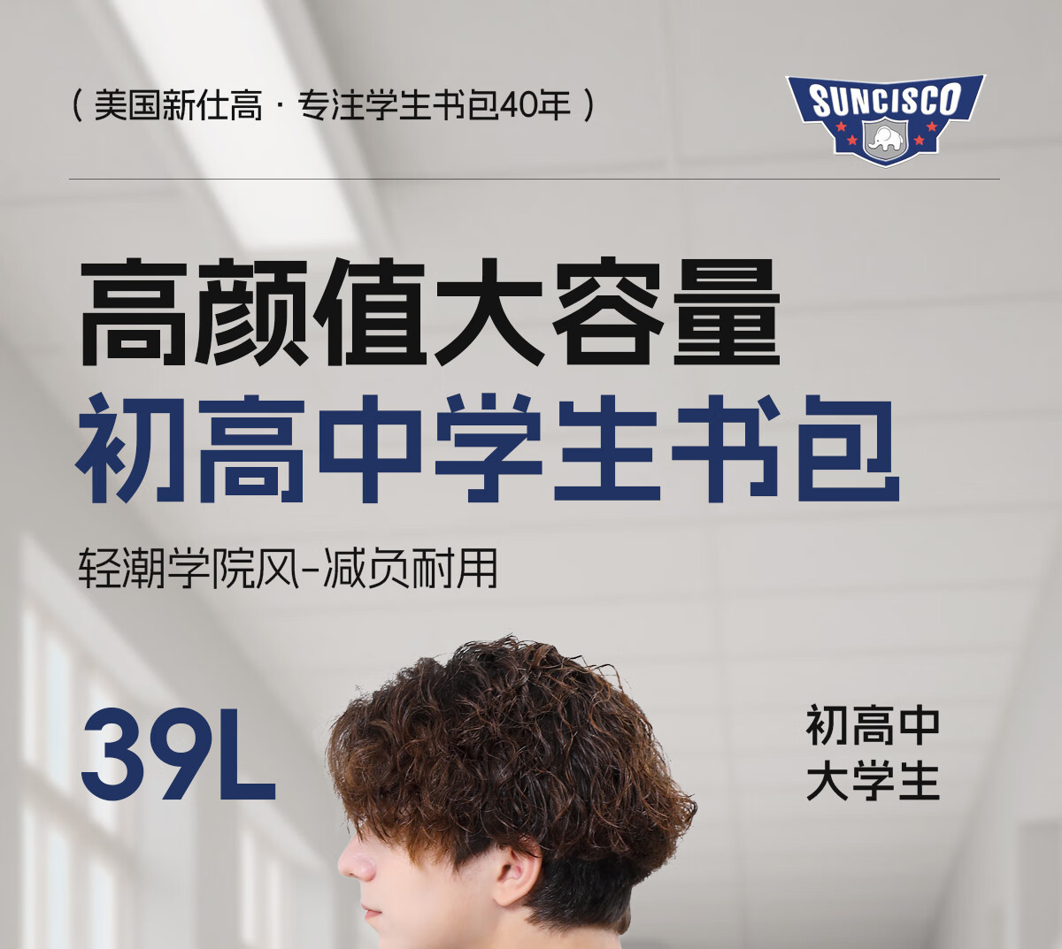 新仕高(SUNCISCO)初中生书包男学生包大容量高中学生2026新款减负护脊男孩双肩包 DB96666黑色 适合155-180CM