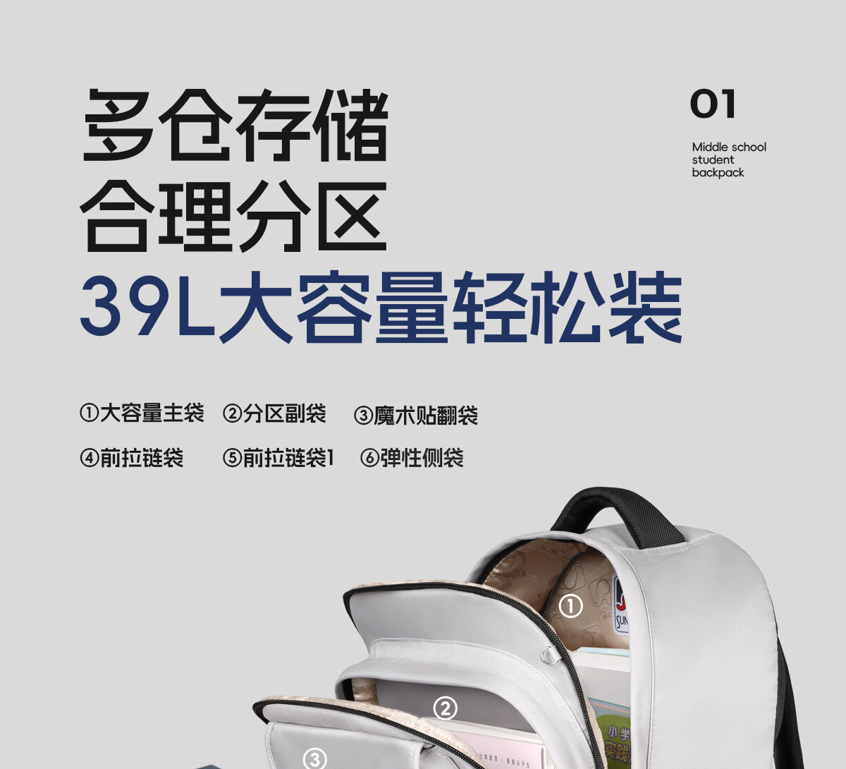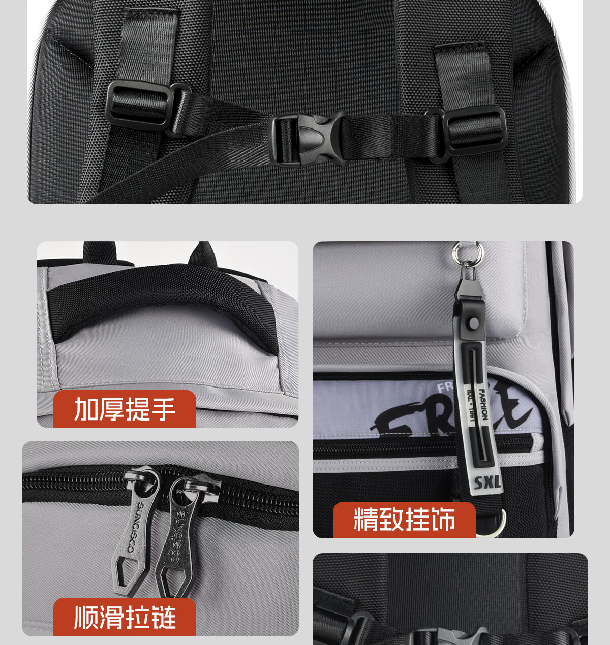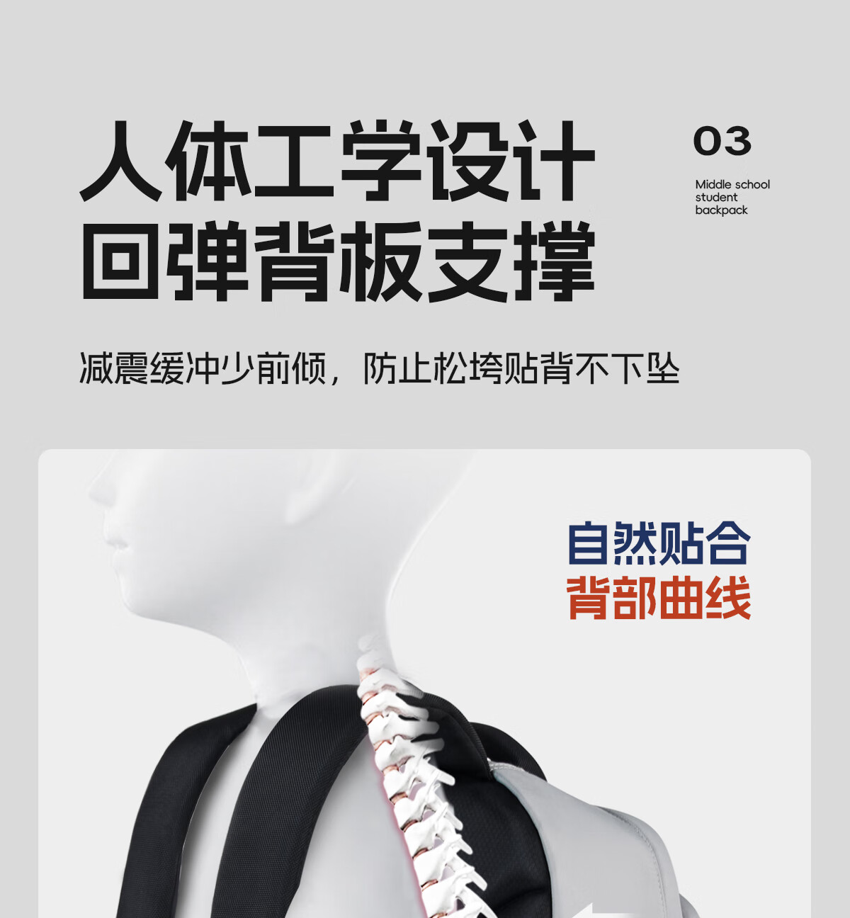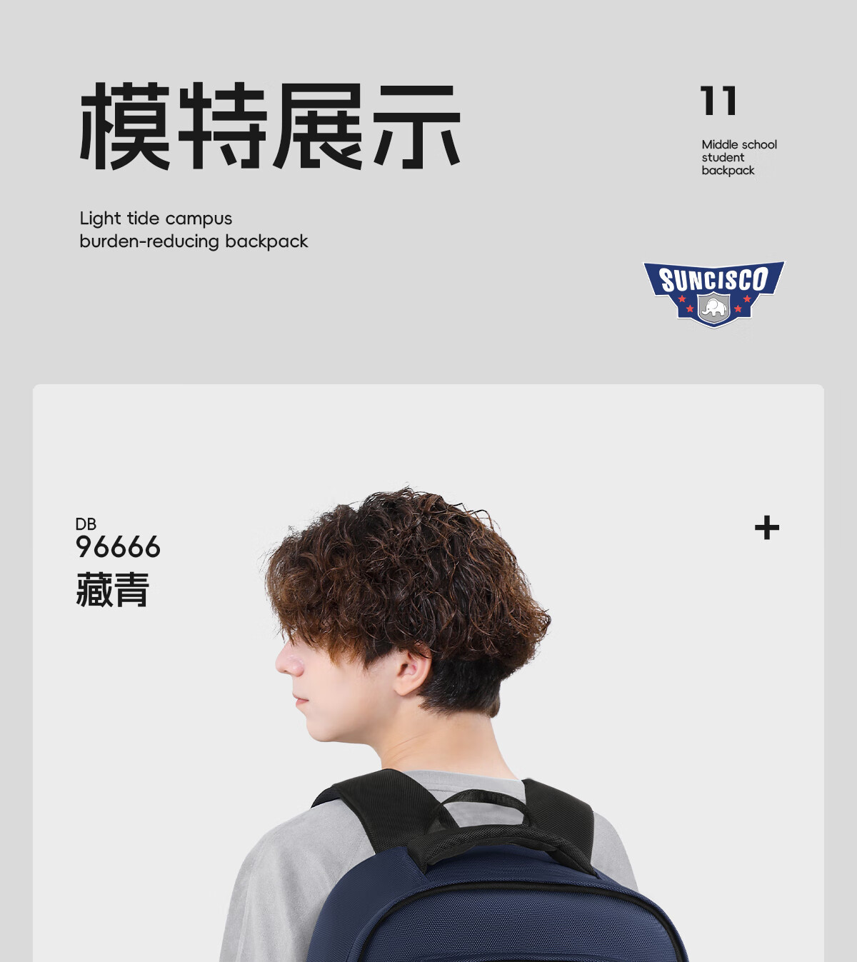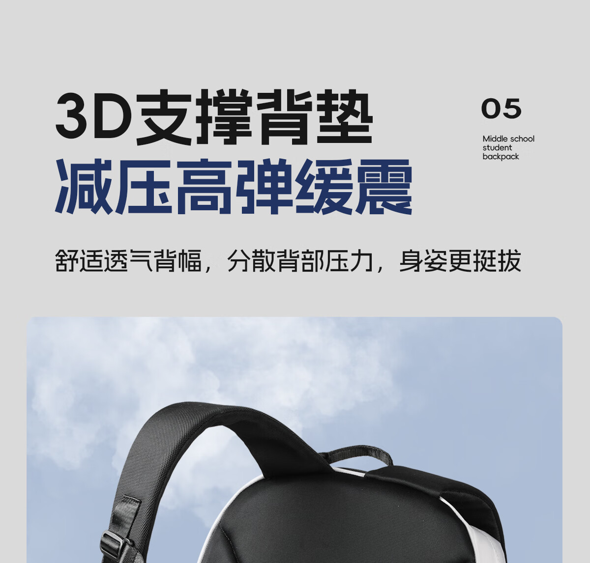 新仕高(SUNCISCO)初中生书包男学生包大容量高中学生2026新款减负护脊男孩双肩包 DB96666黑色 适合155-180CM