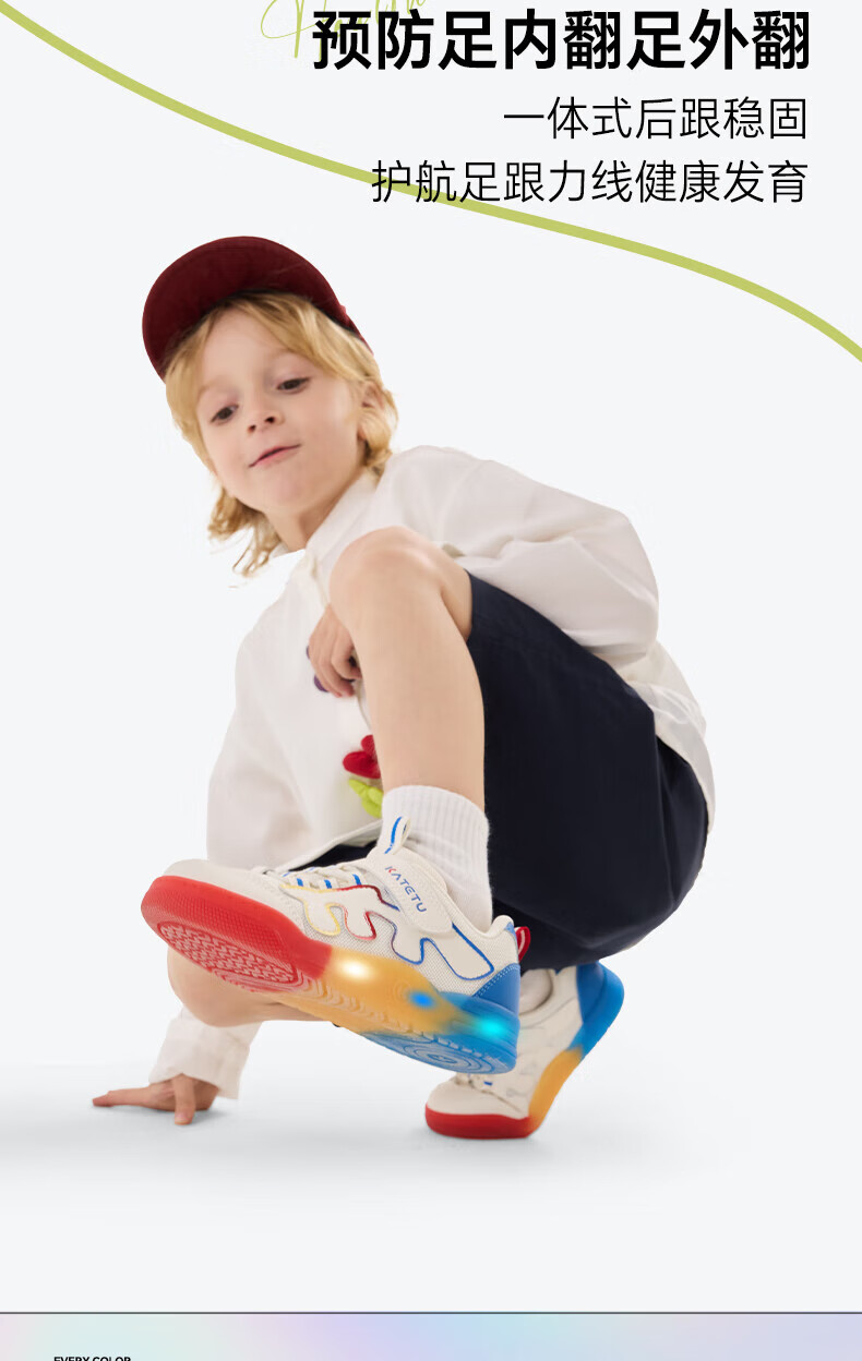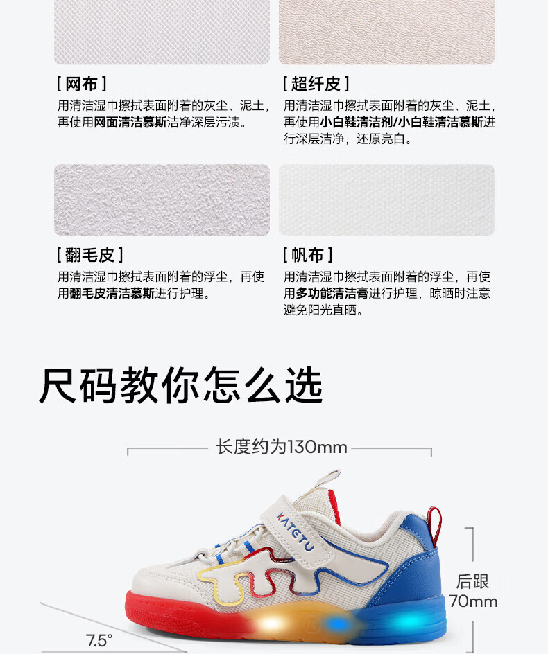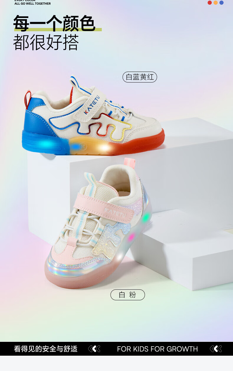 卡特兔童鞋儿童板鞋女童闪灯鞋春季幼儿园小白鞋2-10岁男童网面运动灯鞋 白蓝黄红 28 内长17.5 脚长约16.3-16.9cm