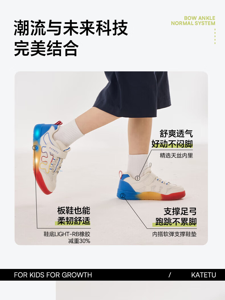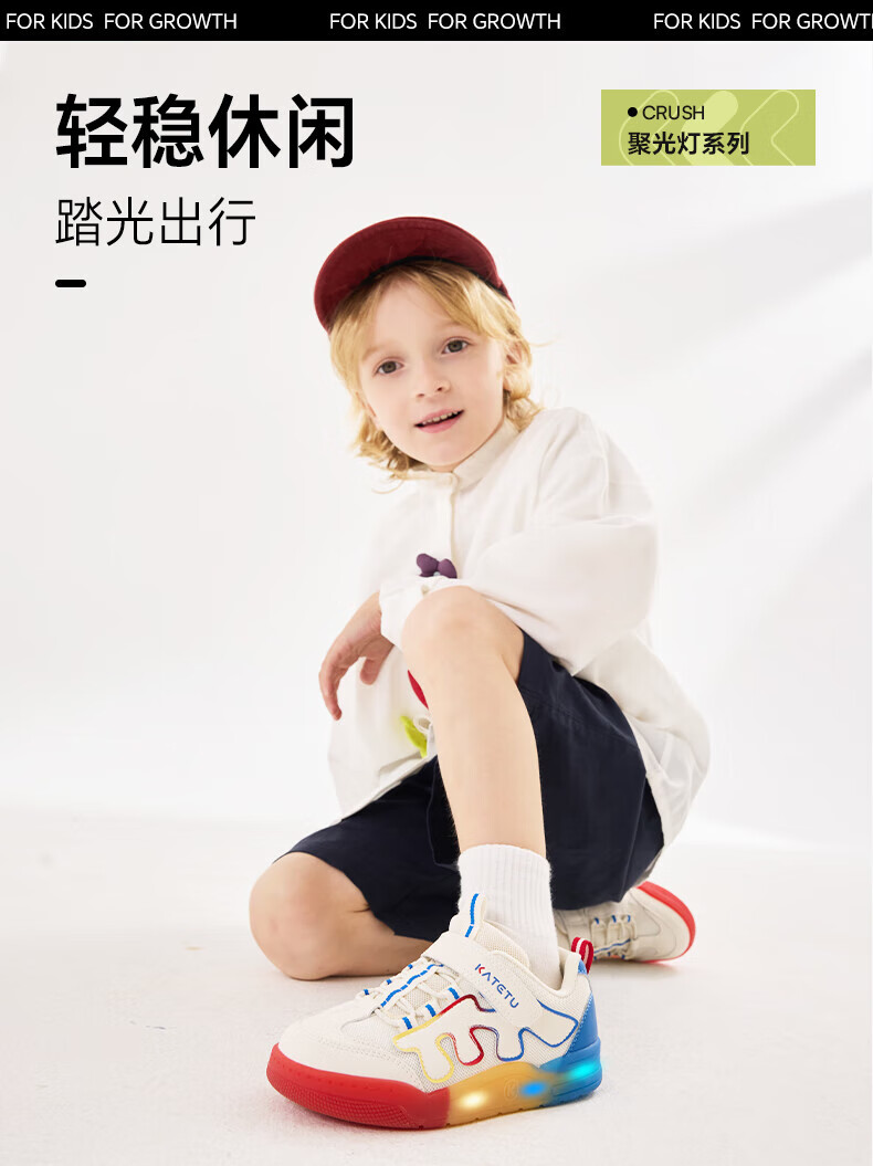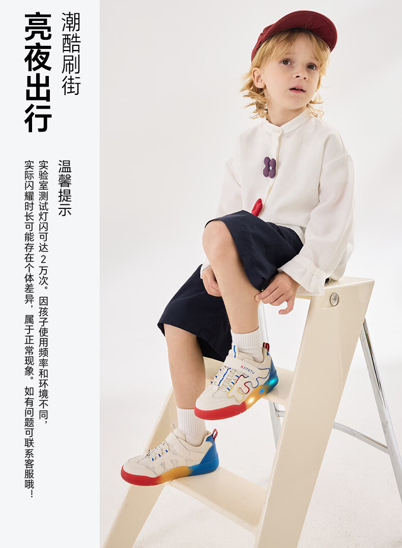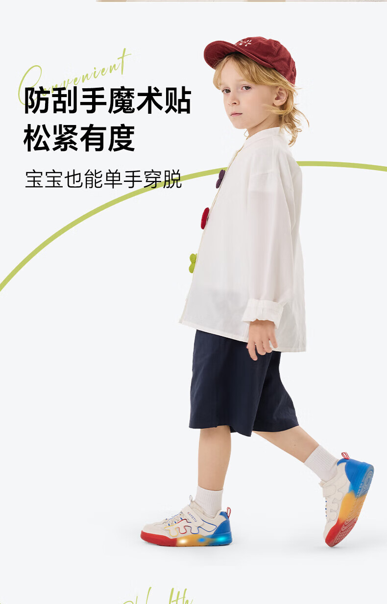 卡特兔童鞋儿童板鞋女童闪灯鞋春季幼儿园小白鞋2-10岁男童网面运动灯鞋 白蓝黄红 28 内长17.5 脚长约16.3-16.9cm