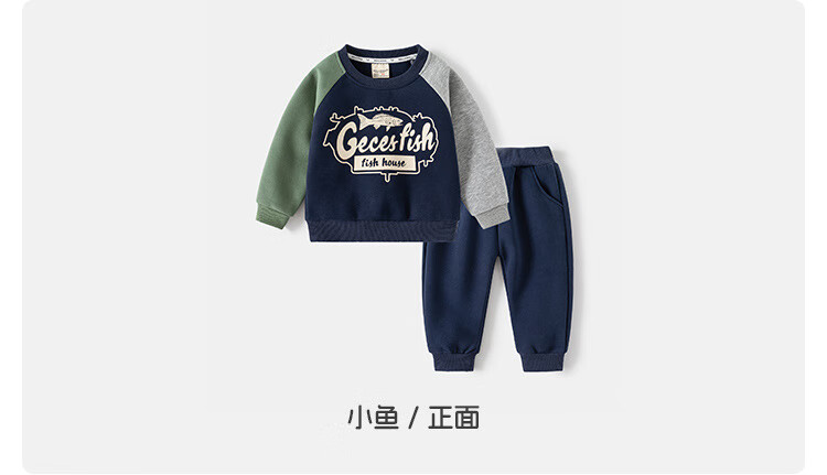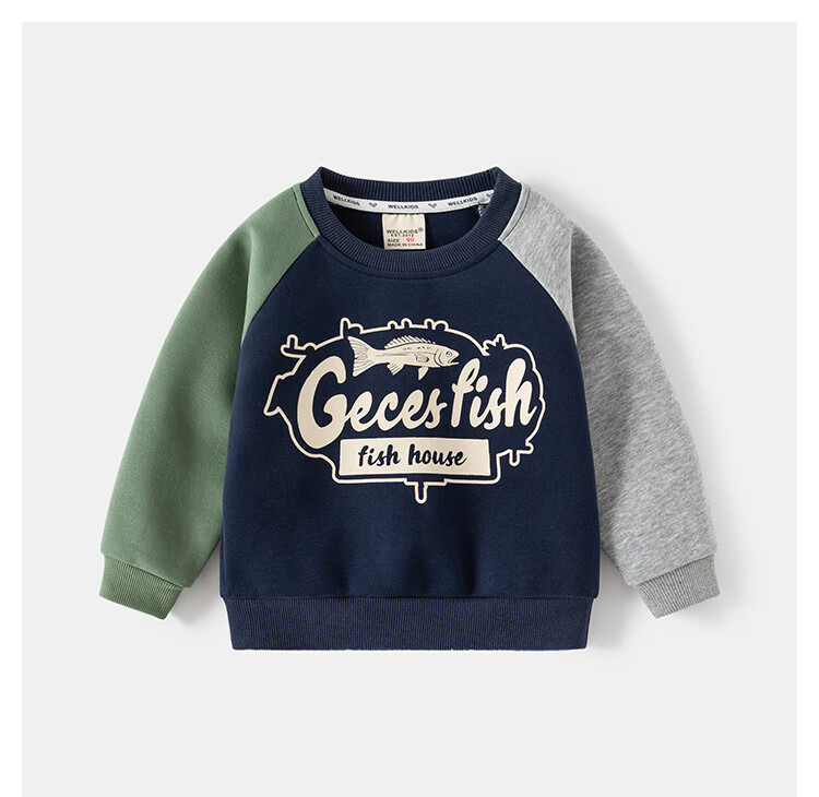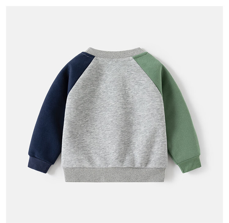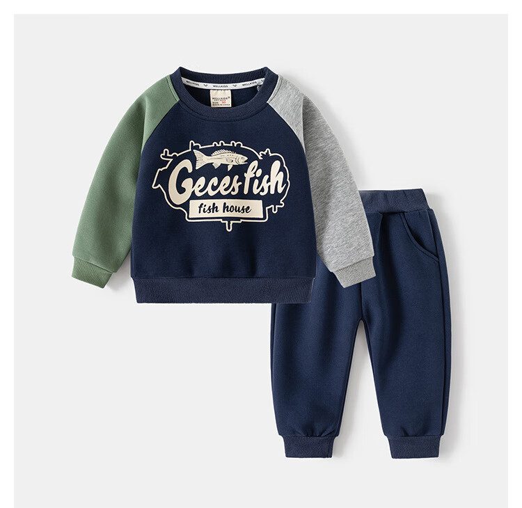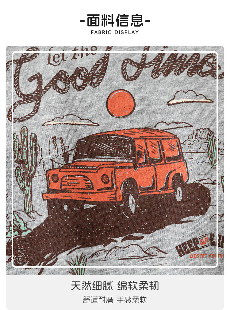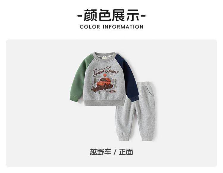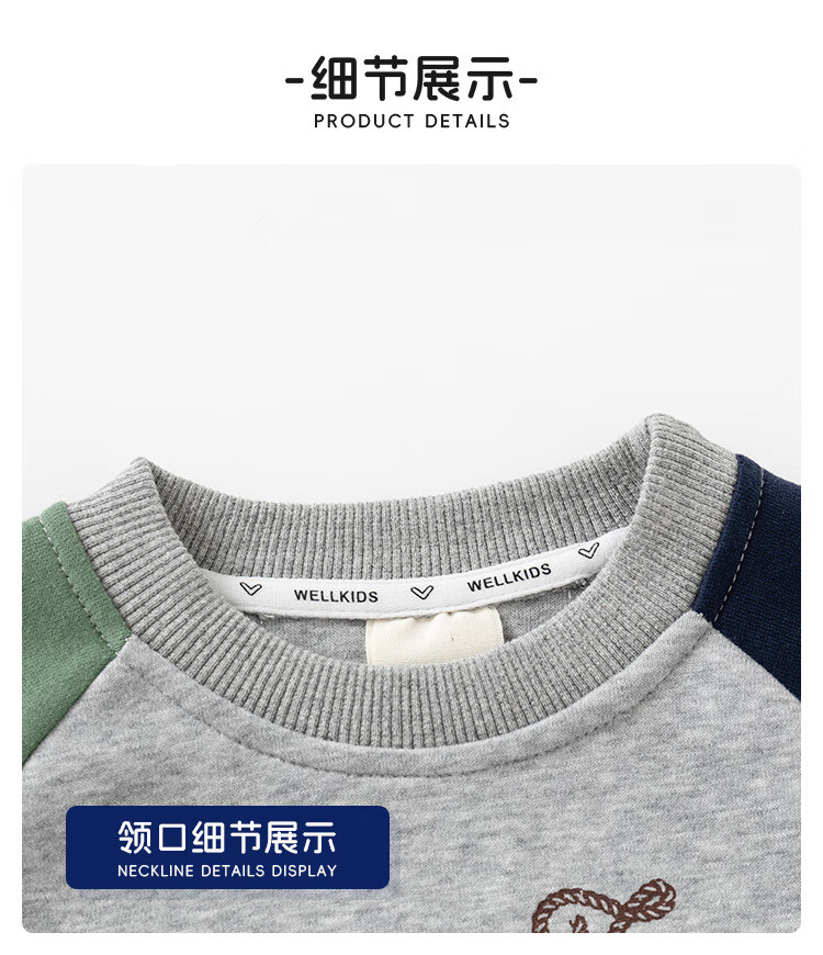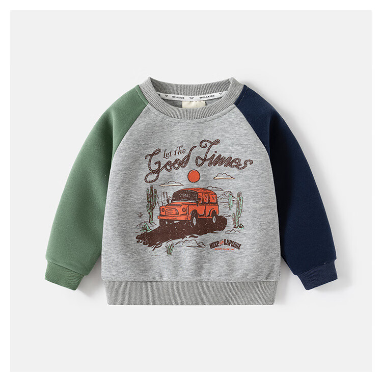 WELLKIDS童装春季新款儿童套装男童卫衣卫裤宝宝卡通套头两件套春装 灰色汽车 90