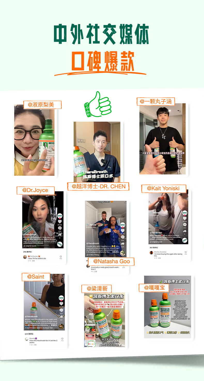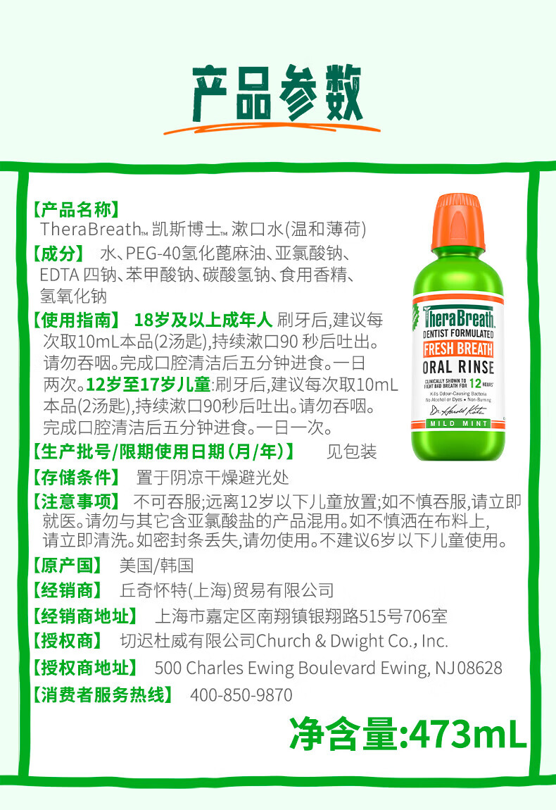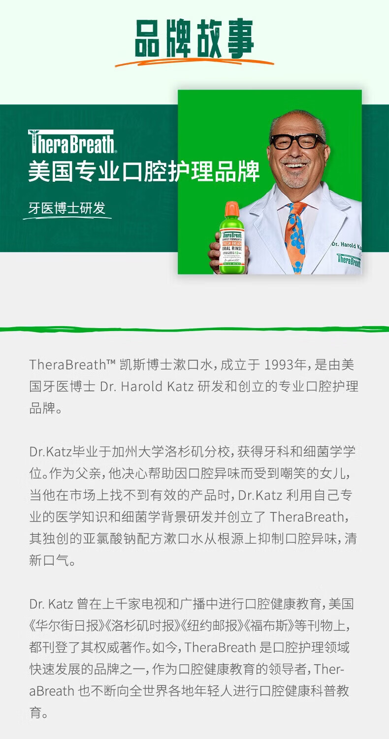 TheraBreath凯斯博士漱口水清新口气减少细菌持久去口臭神器无酒精成人儿童用 加量一升装1000ml