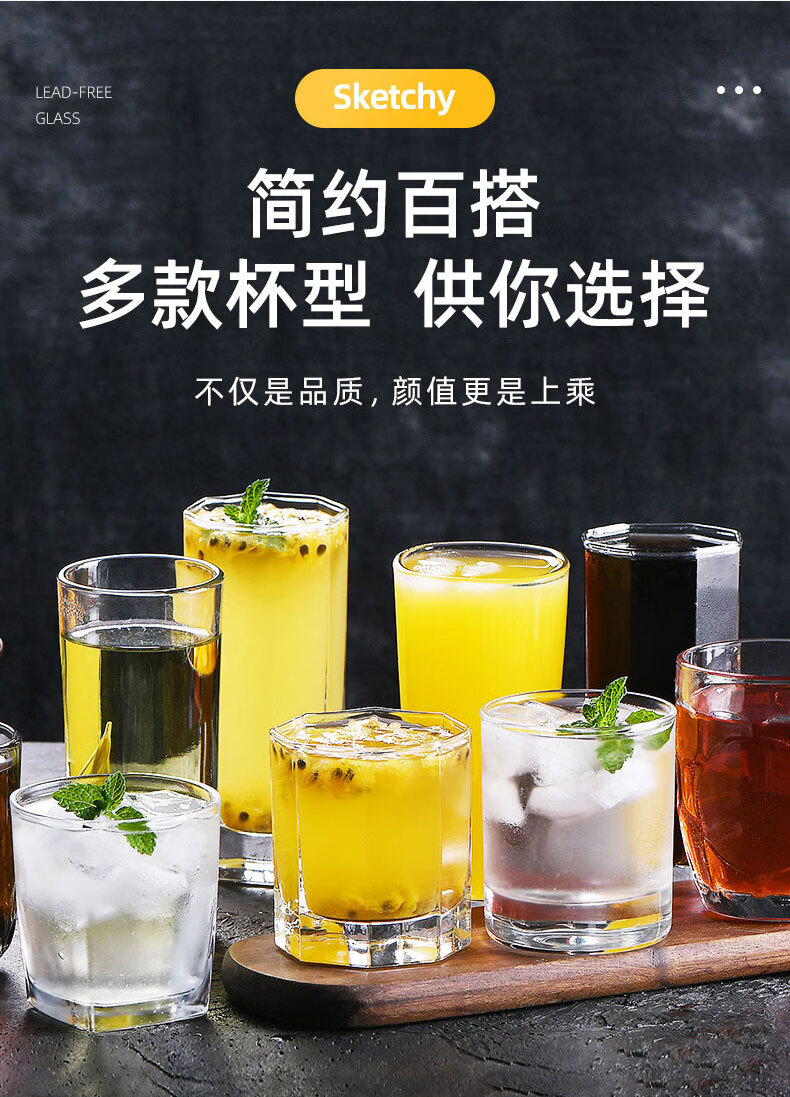玻璃杯水杯家用杯子客厅喝水学生杯耐热待客泡茶茶杯新款一套 八角杯【180ml】 1只