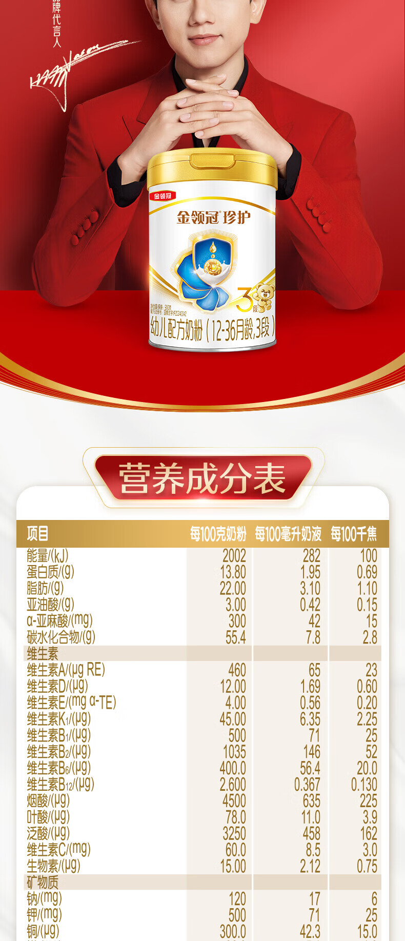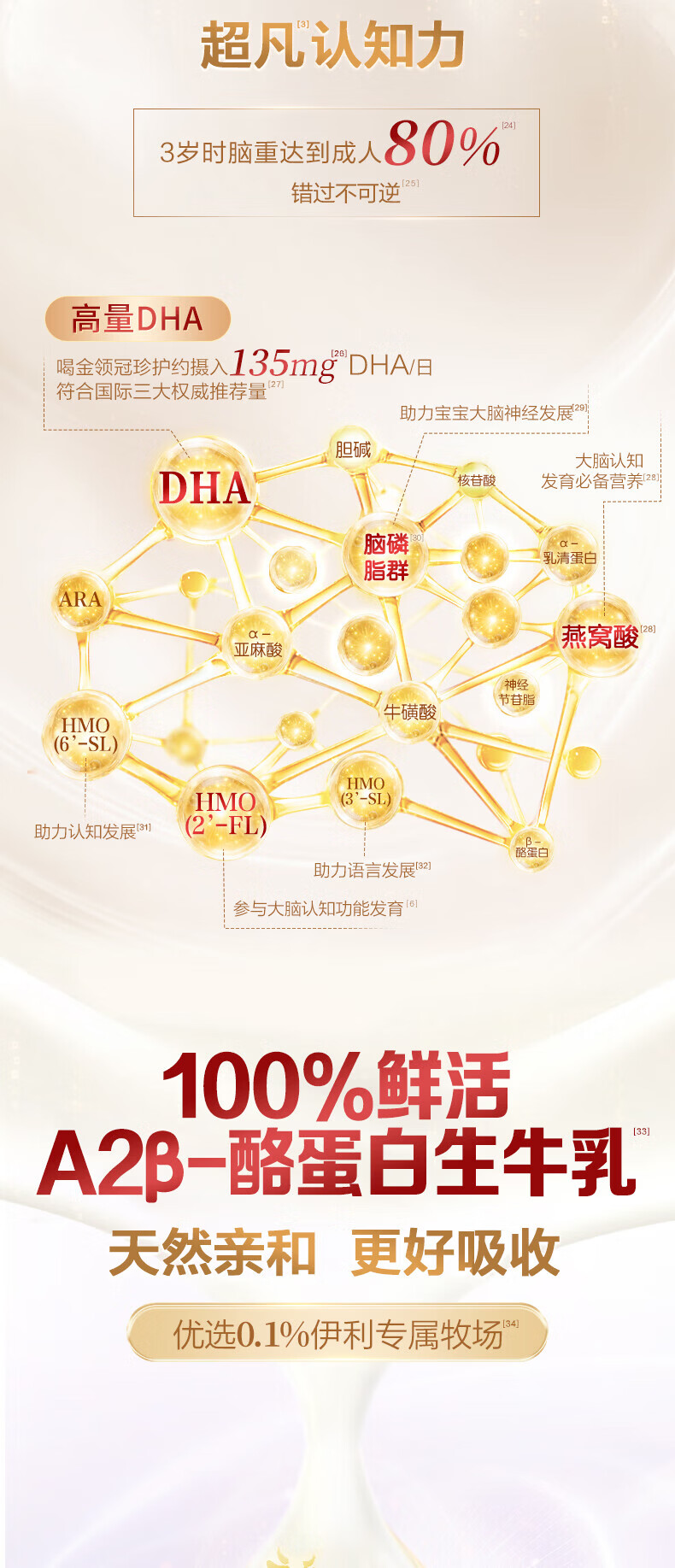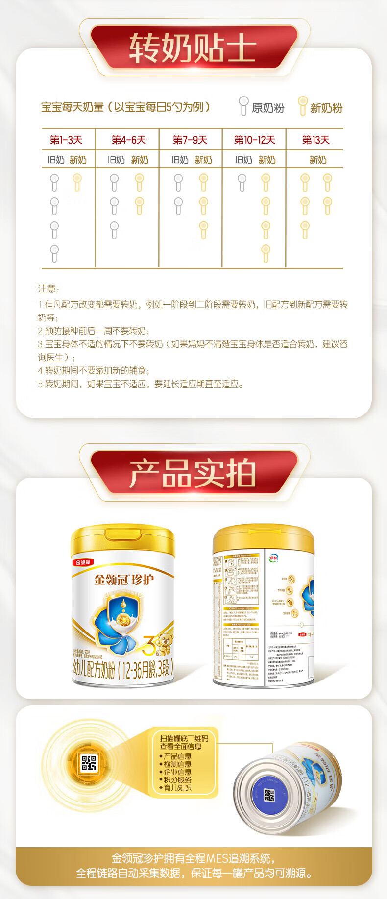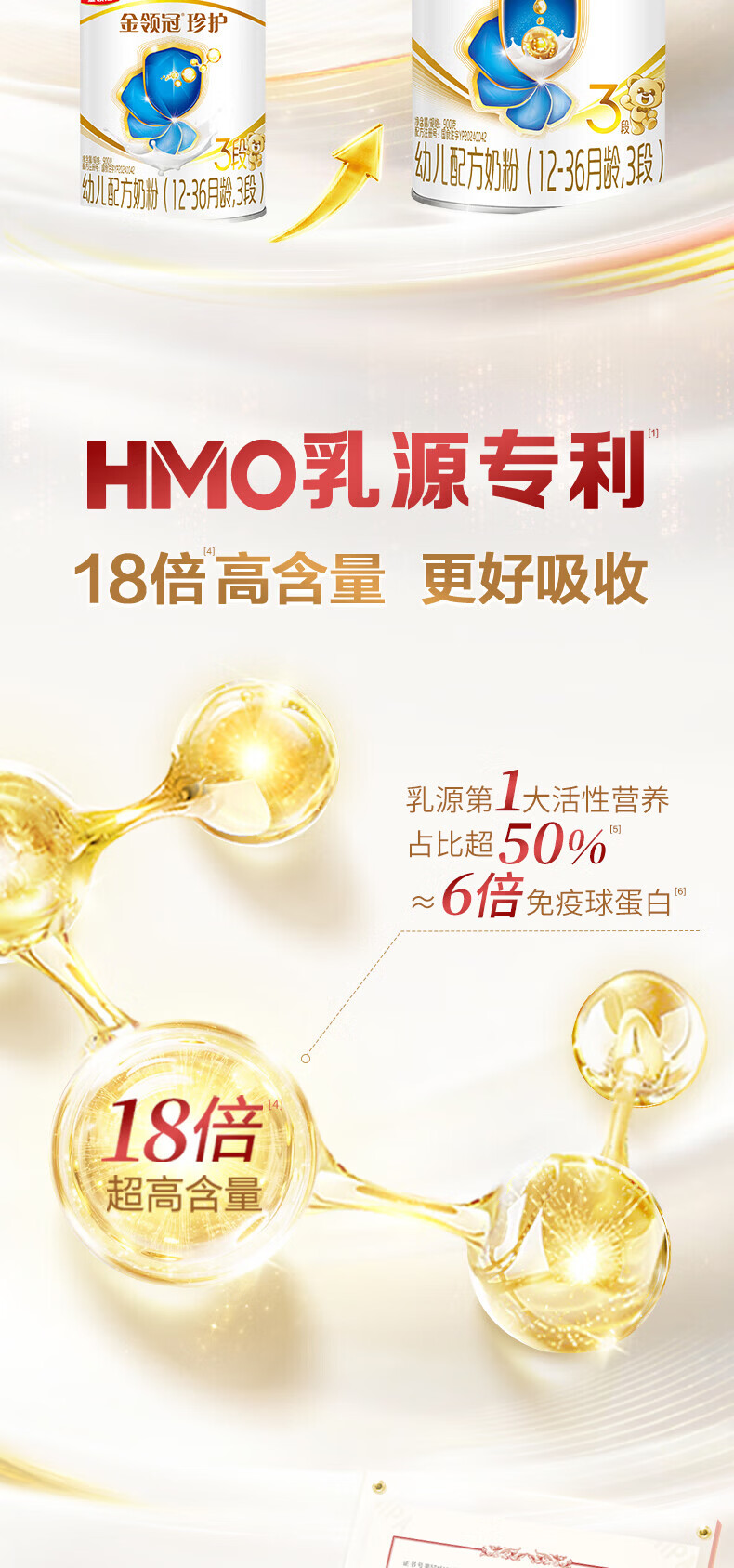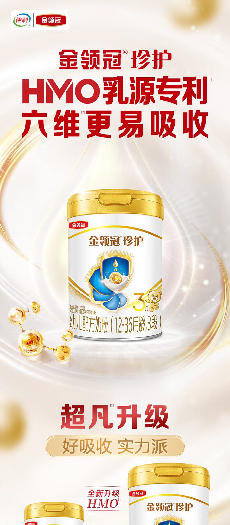 伊利奶粉3段金领冠珍护HMO婴幼儿配方奶粉三段900g 珍护3段900*6罐