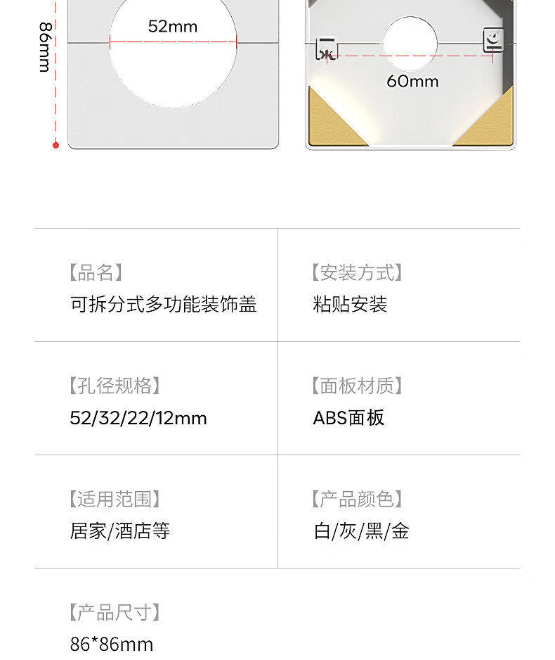国际电工(FDD)遮丑装饰盖板带出线孔背景墙可拆卸穿线孔空调穿孔堵洞遮挡盖 空调遮丑盖板孔径12mm 白色