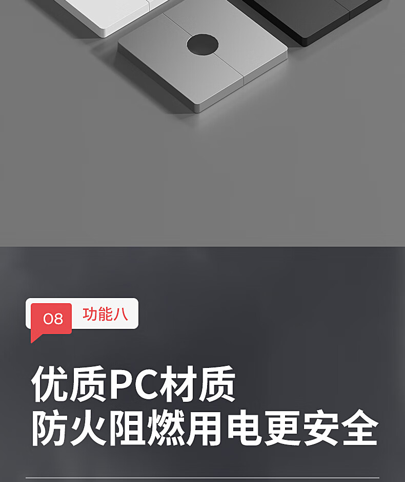 国际电工(FDD)原位扩展插座86型家用厨房分控带开关插排多功能USB快充拓展排插 白色带USB-三开21孔-向左扩展(2.1A)