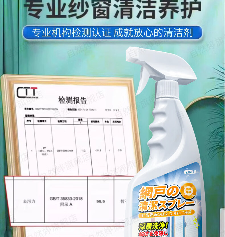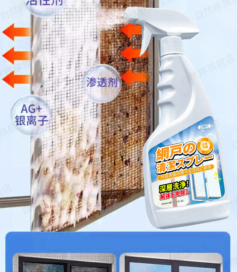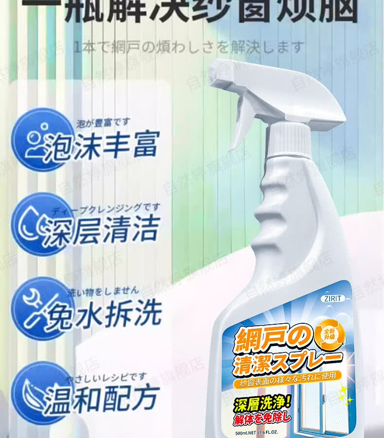 ZIRIT纱窗清洗剂免洗去污厨房窗纱神器金刚网窗户喷雾清洁剂 2瓶【大扫除必备】