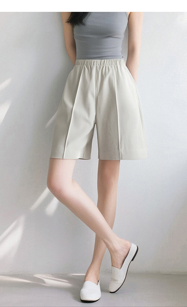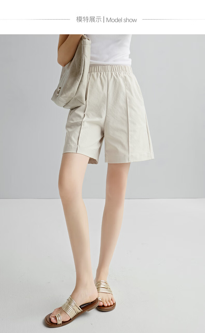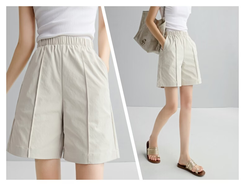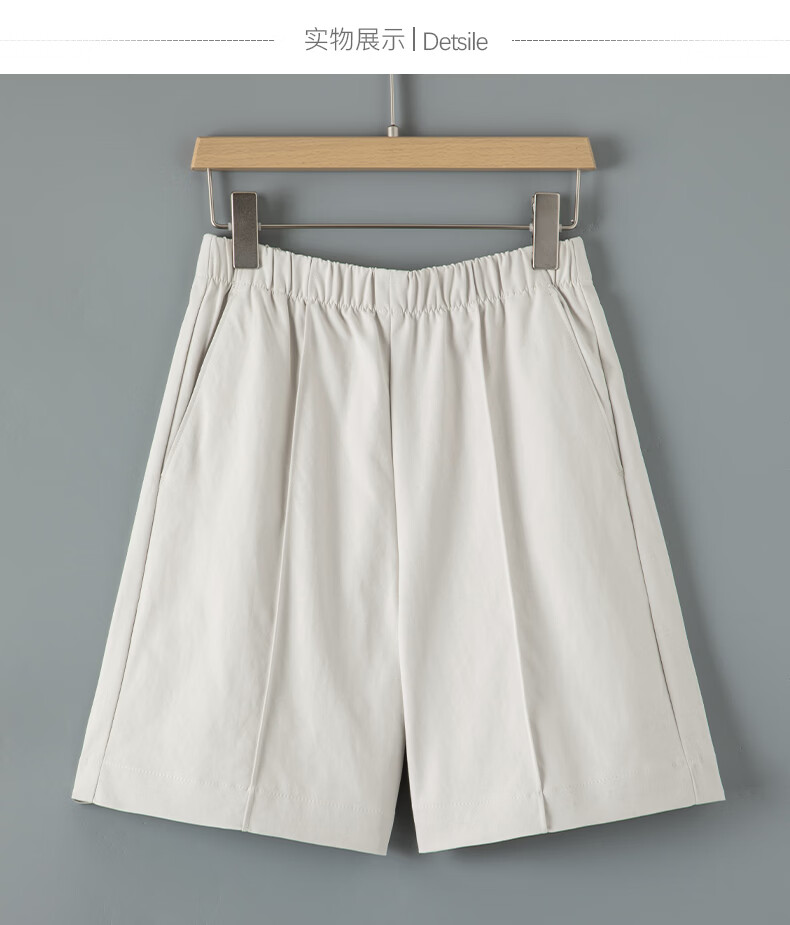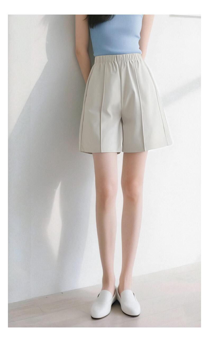 晚白【新品】2026年春款时尚休闲裤松紧腰舒适简洁直筒宽松短裤女 米灰色 26
