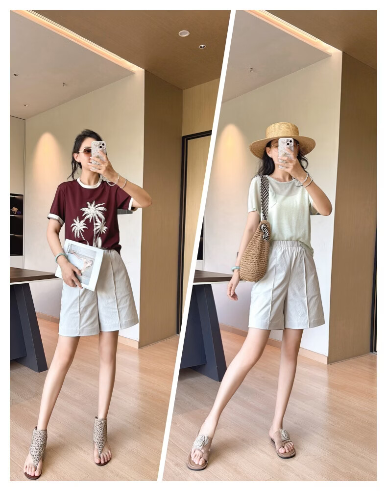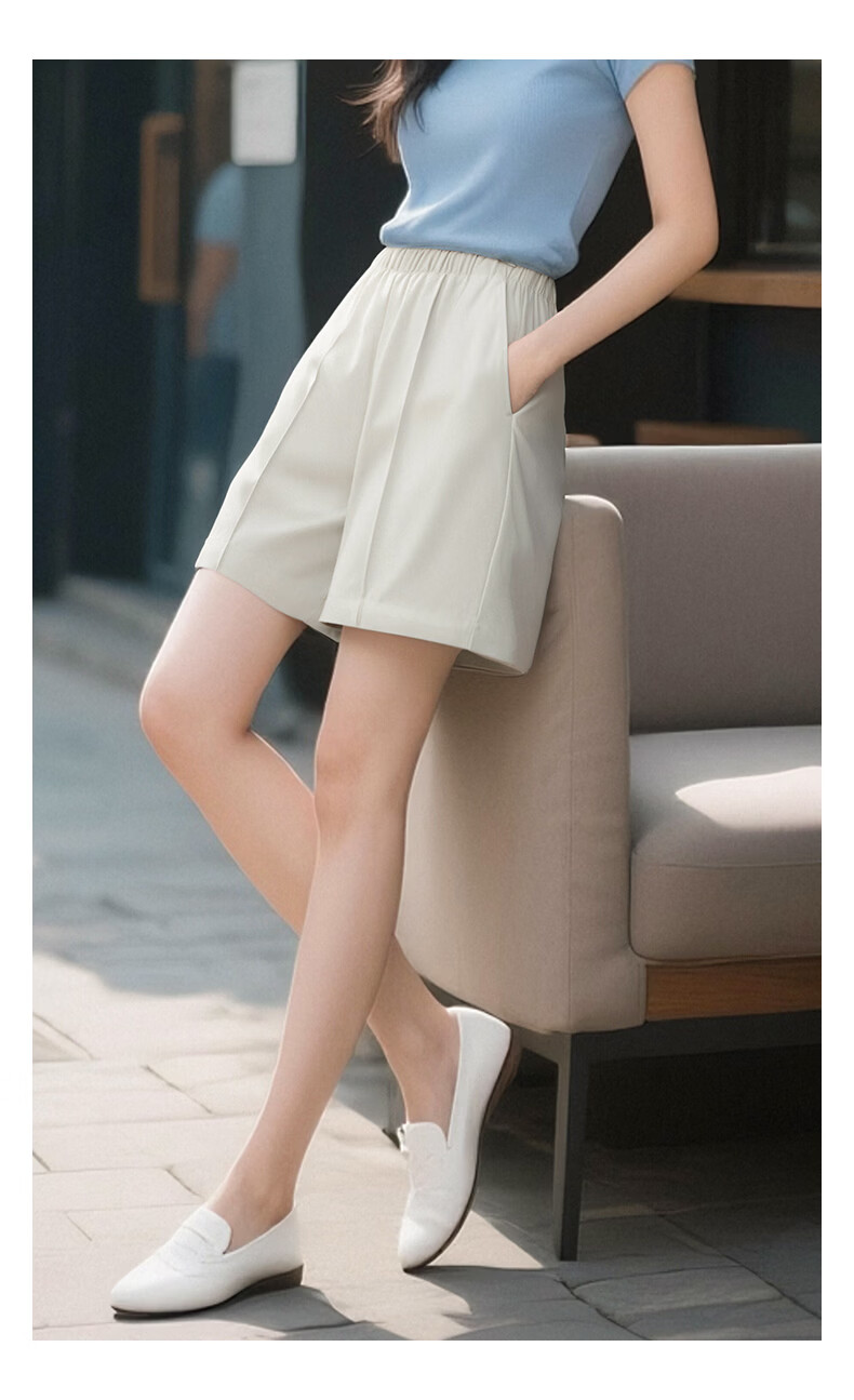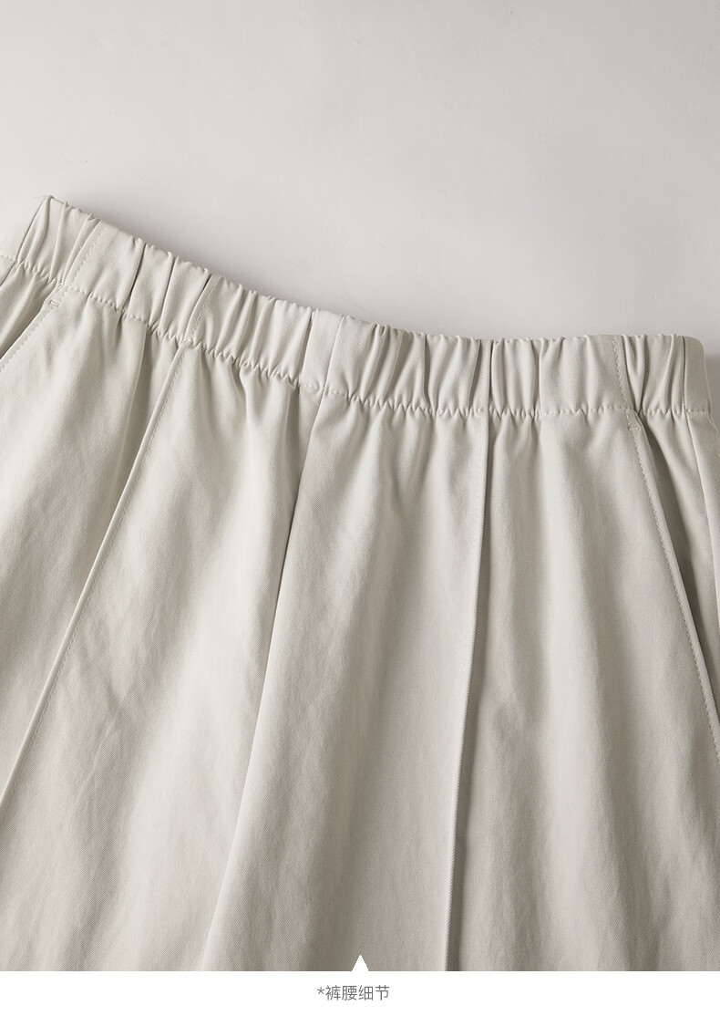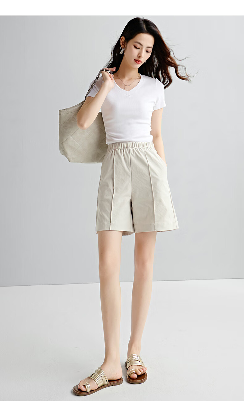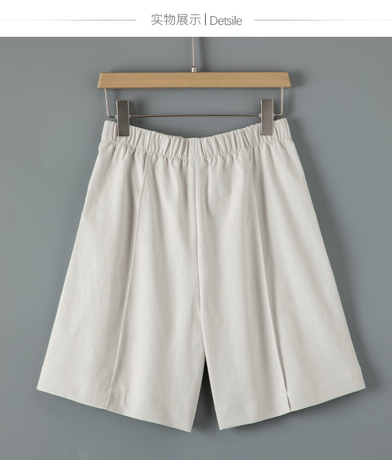 晚白【新品】2026年春款时尚休闲裤松紧腰舒适简洁直筒宽松短裤女 米灰色 26