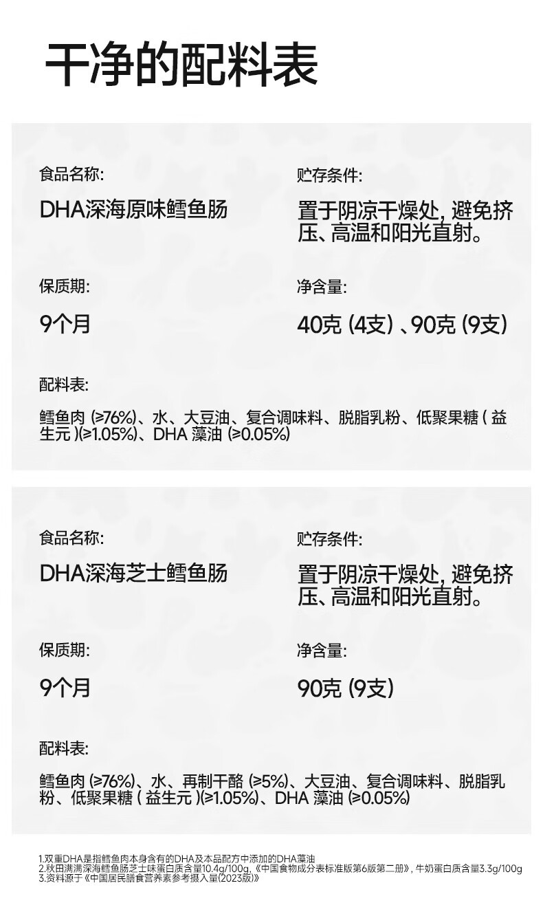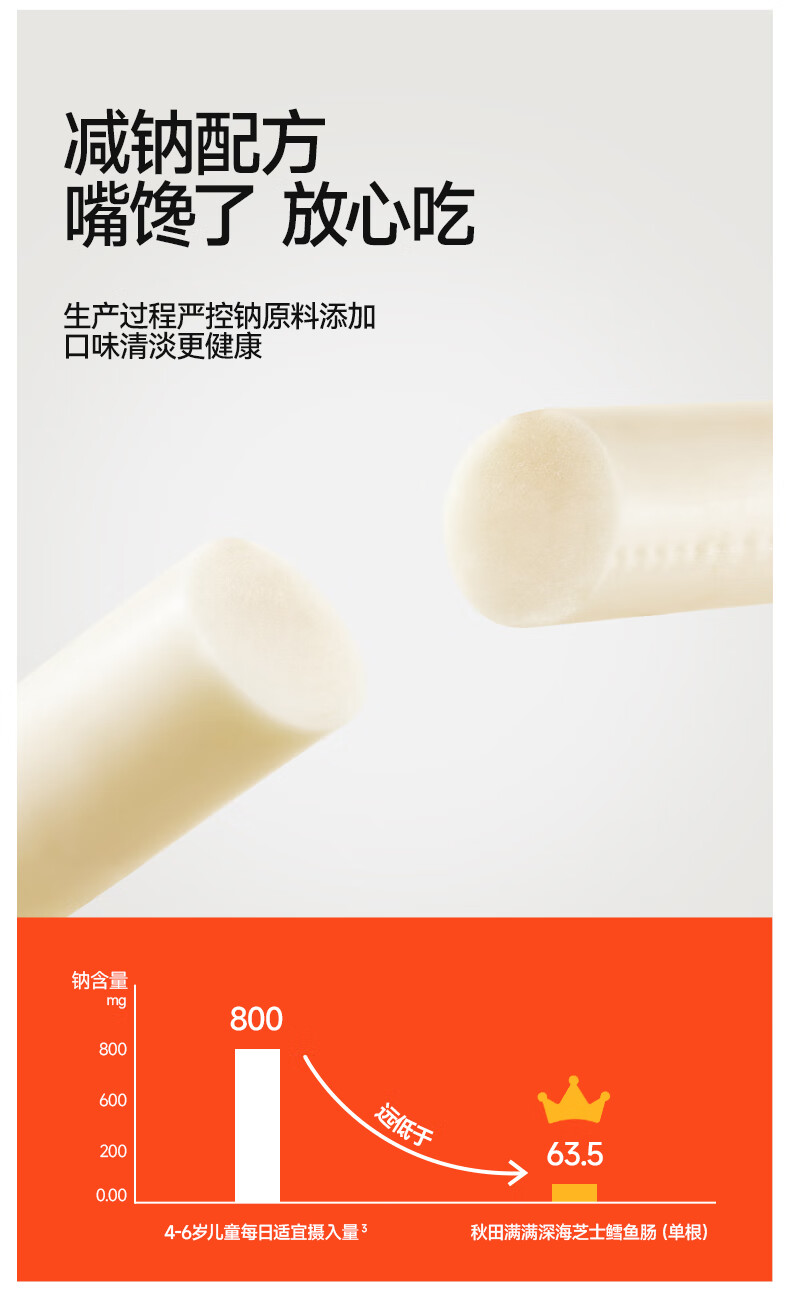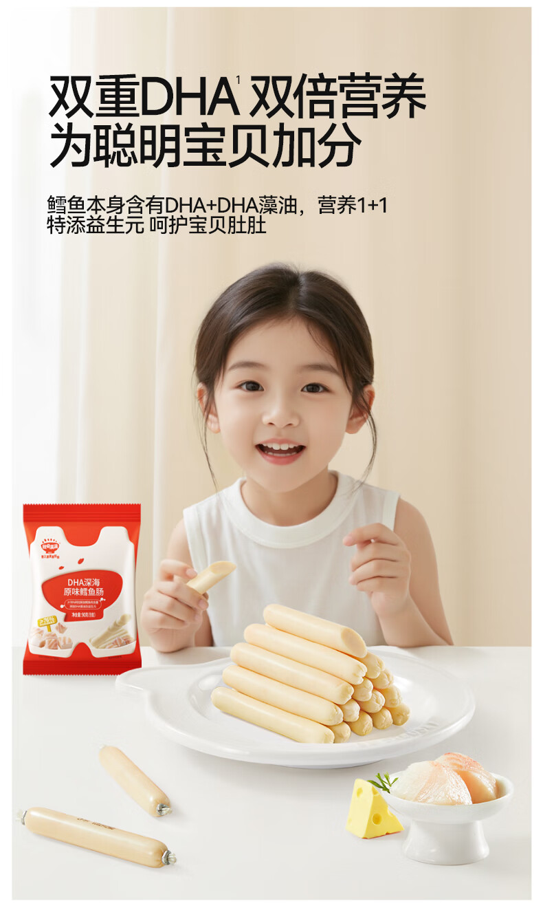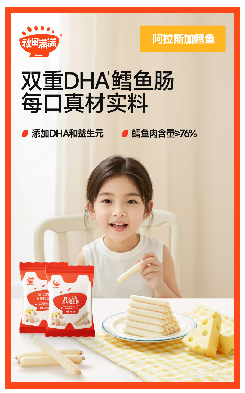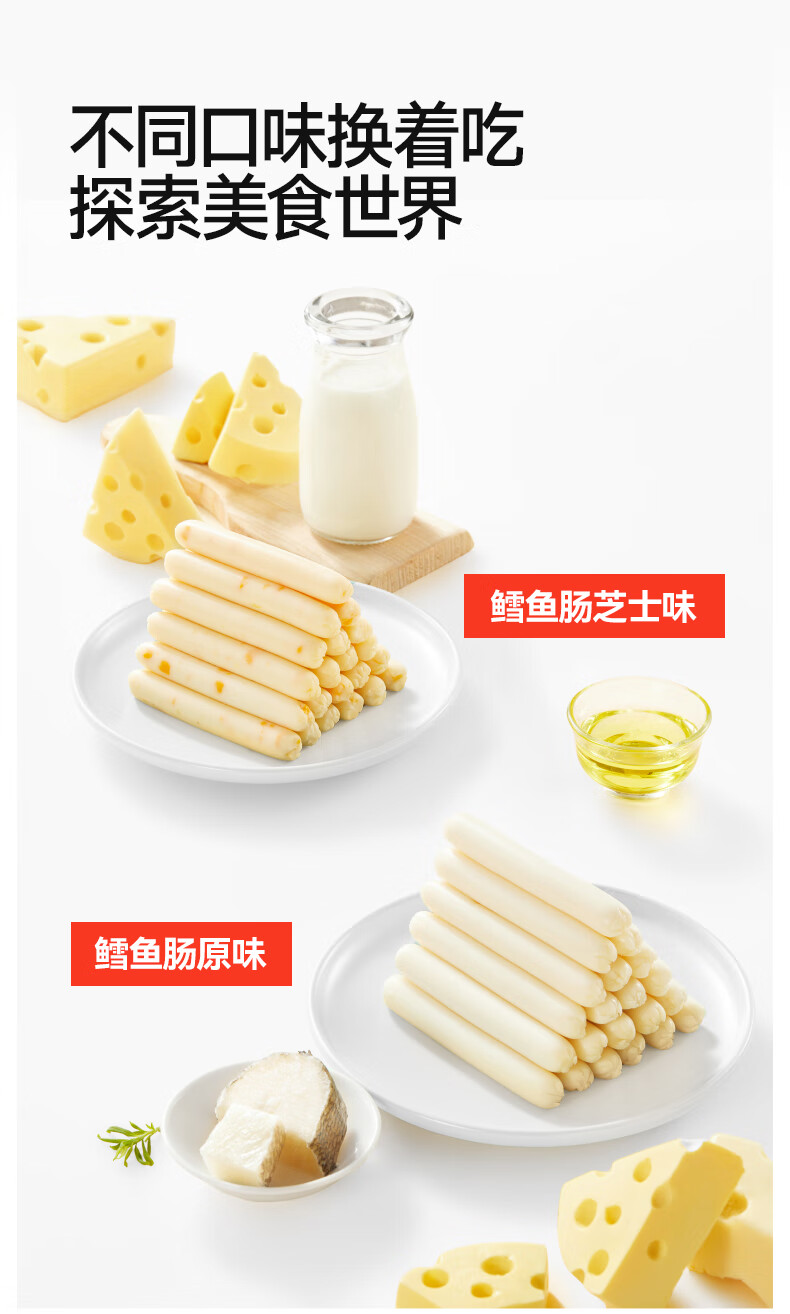 秋田满满鳕鱼肠 宝宝零食 DHA深海芝士鳕鱼肠 儿童鱼肠享婴幼儿辅食谱 【18支】原味鳕鱼肠90g*2