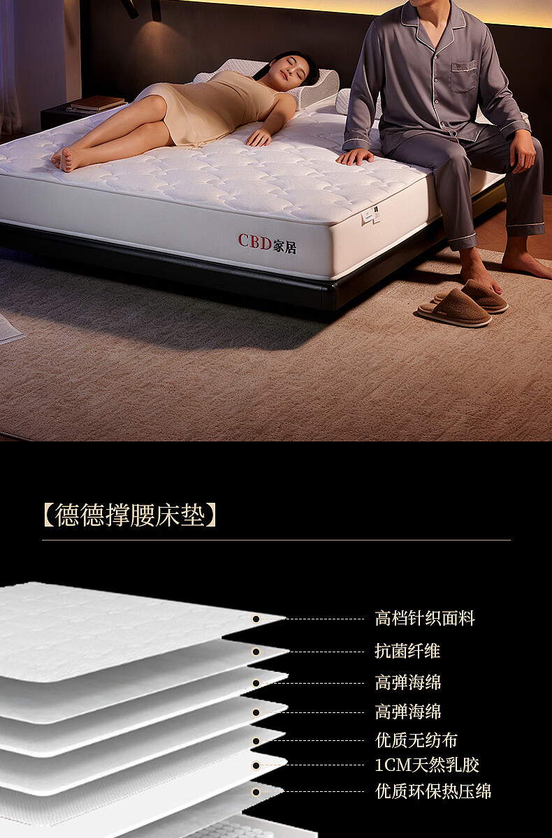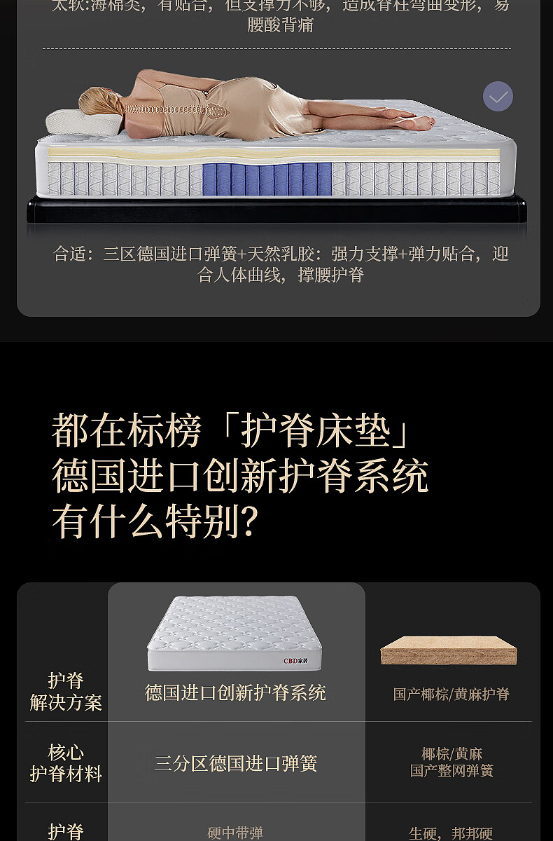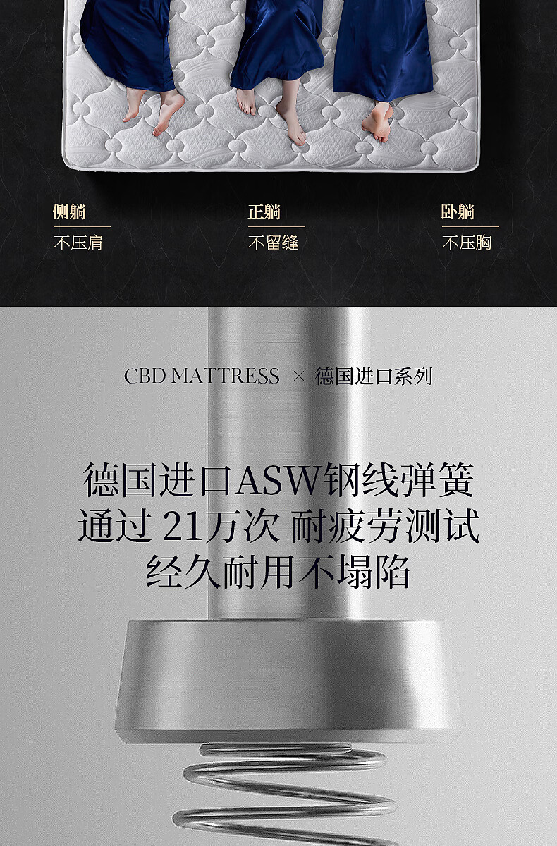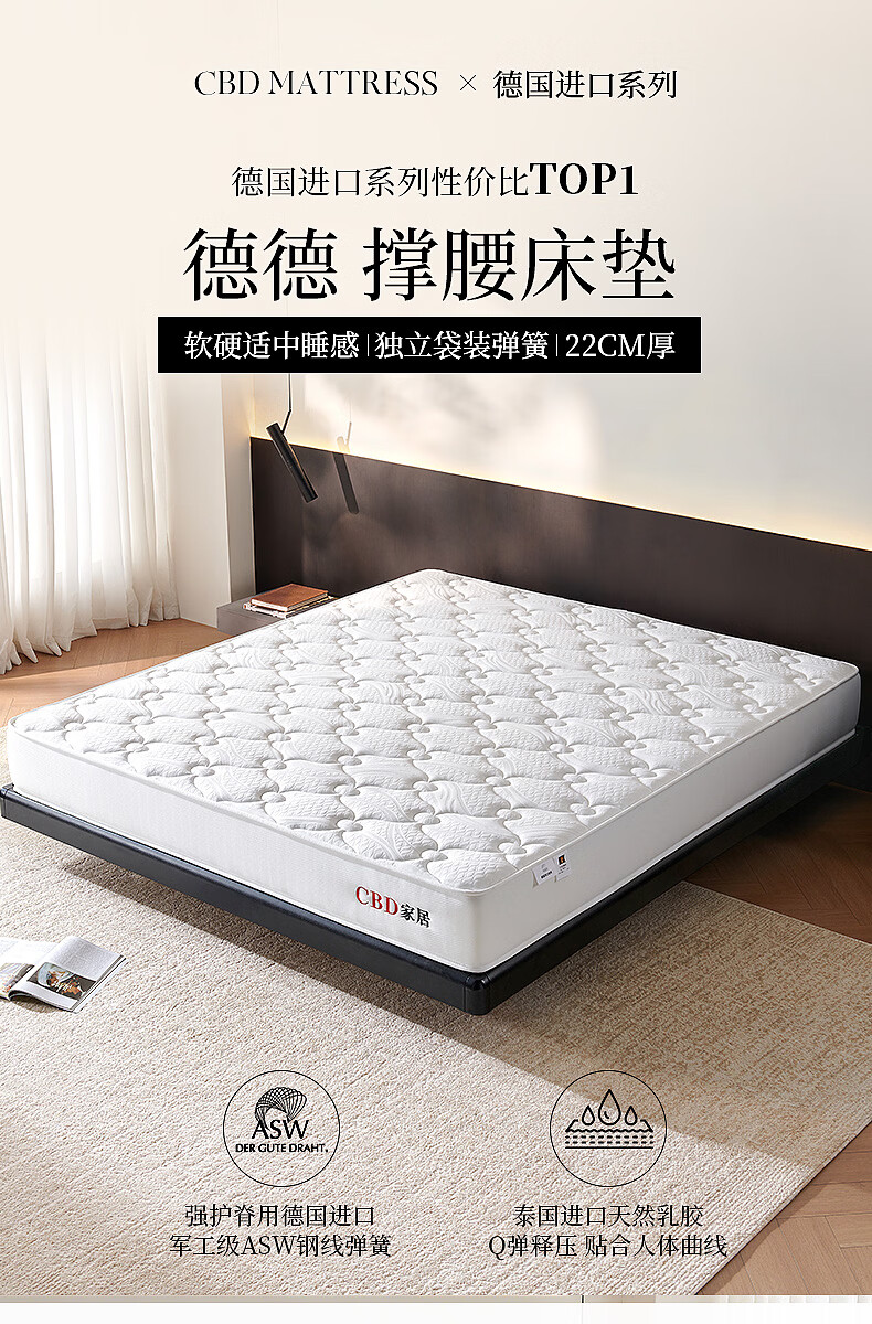 CBD家居德国ASW弹簧三分区透气亲肤床垫乳胶床垫软硬适中床垫德德 德德床垫 1500*2000