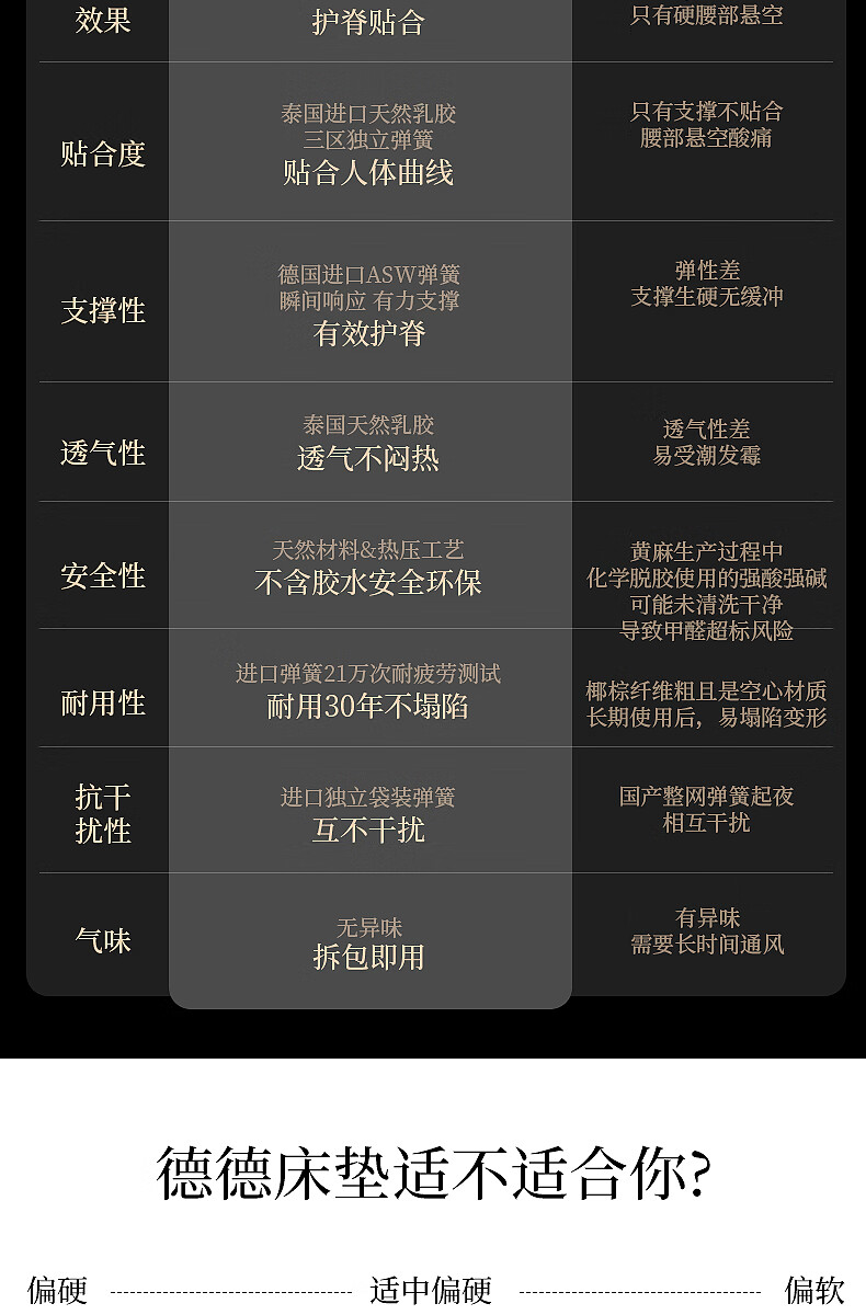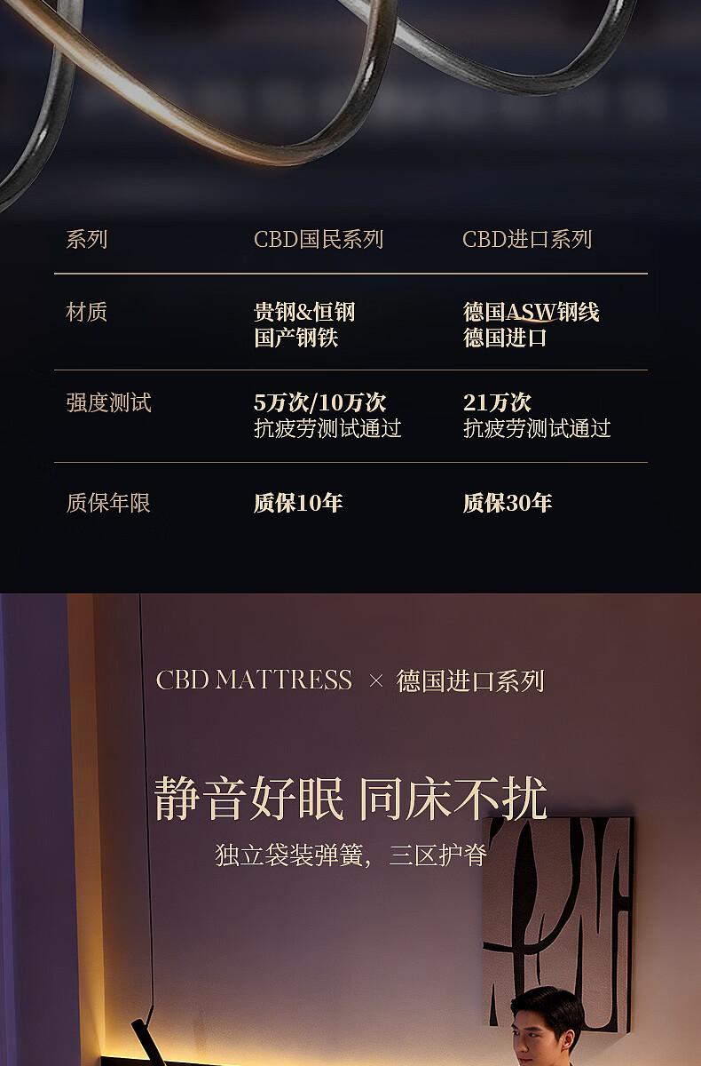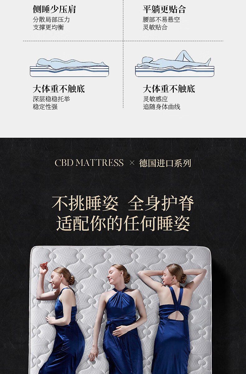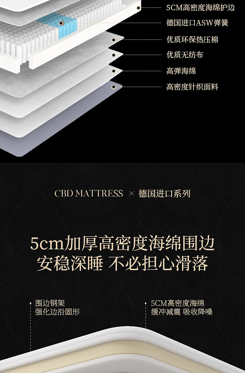 CBD家居德国ASW弹簧三分区透气亲肤床垫乳胶床垫软硬适中床垫德德 德德床垫 1500*2000