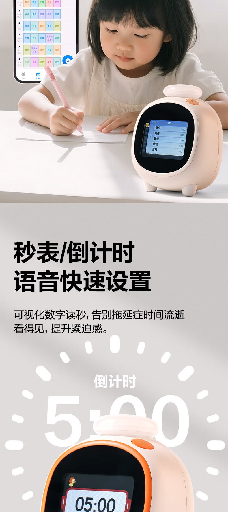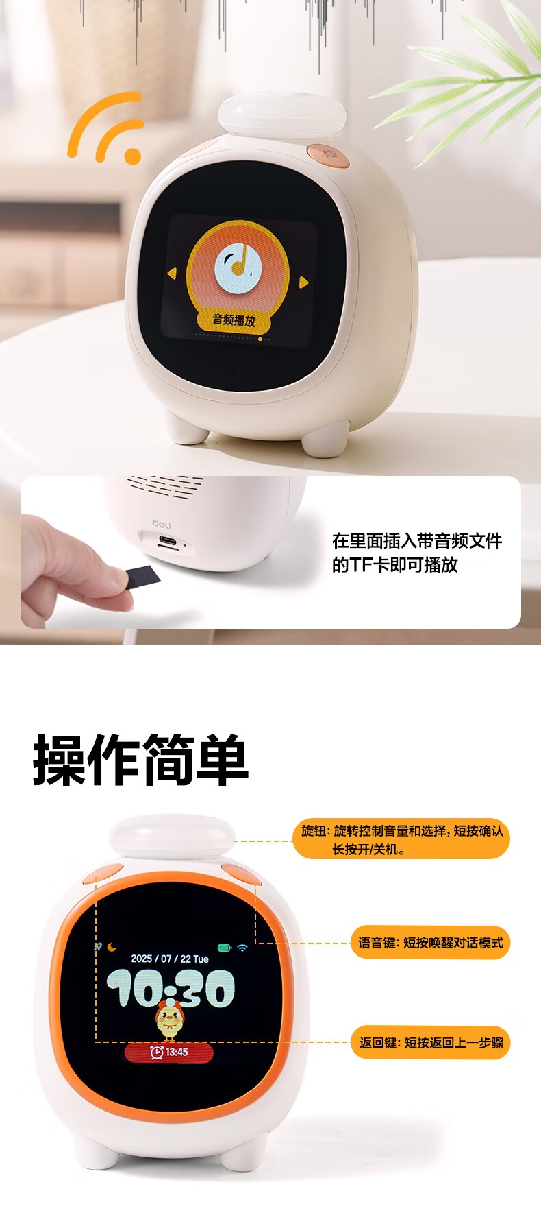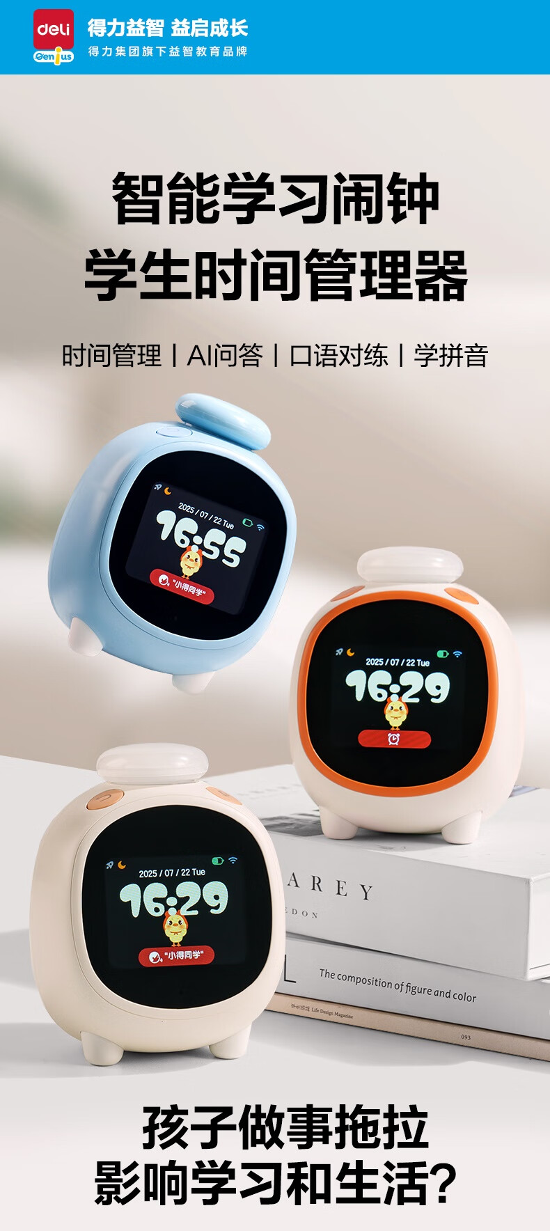 得力(deli)【开学文具】学生智能闹钟AI新款时间管理器儿童多功能闹钟可视化计时器电子时钟AI学习机生日礼物