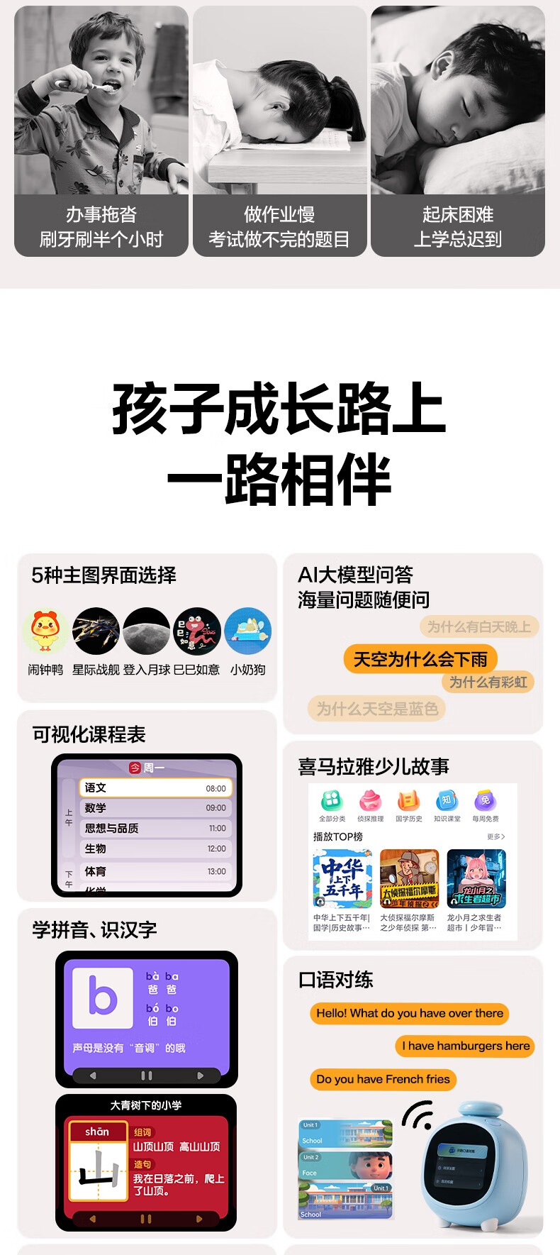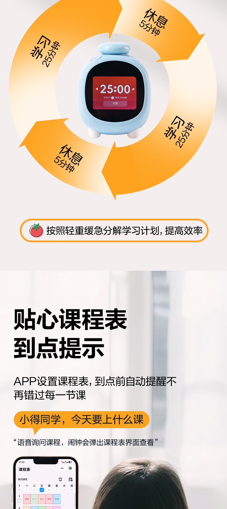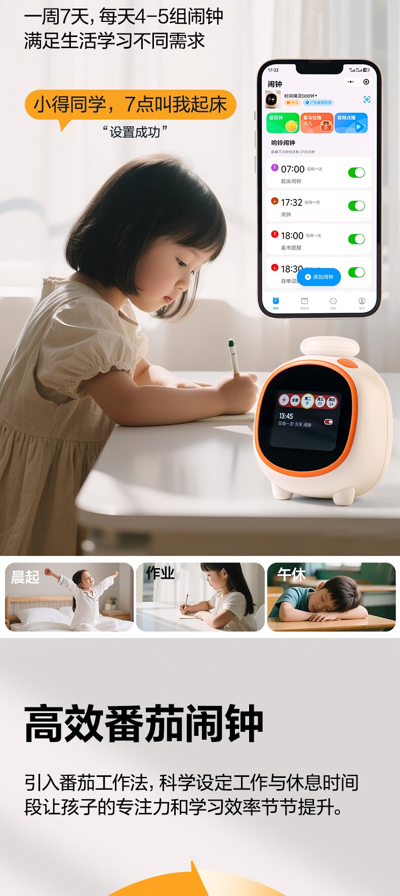得力(deli)【开学文具】学生智能闹钟AI新款时间管理器儿童多功能闹钟可视化计时器电子时钟AI学习机生日礼物