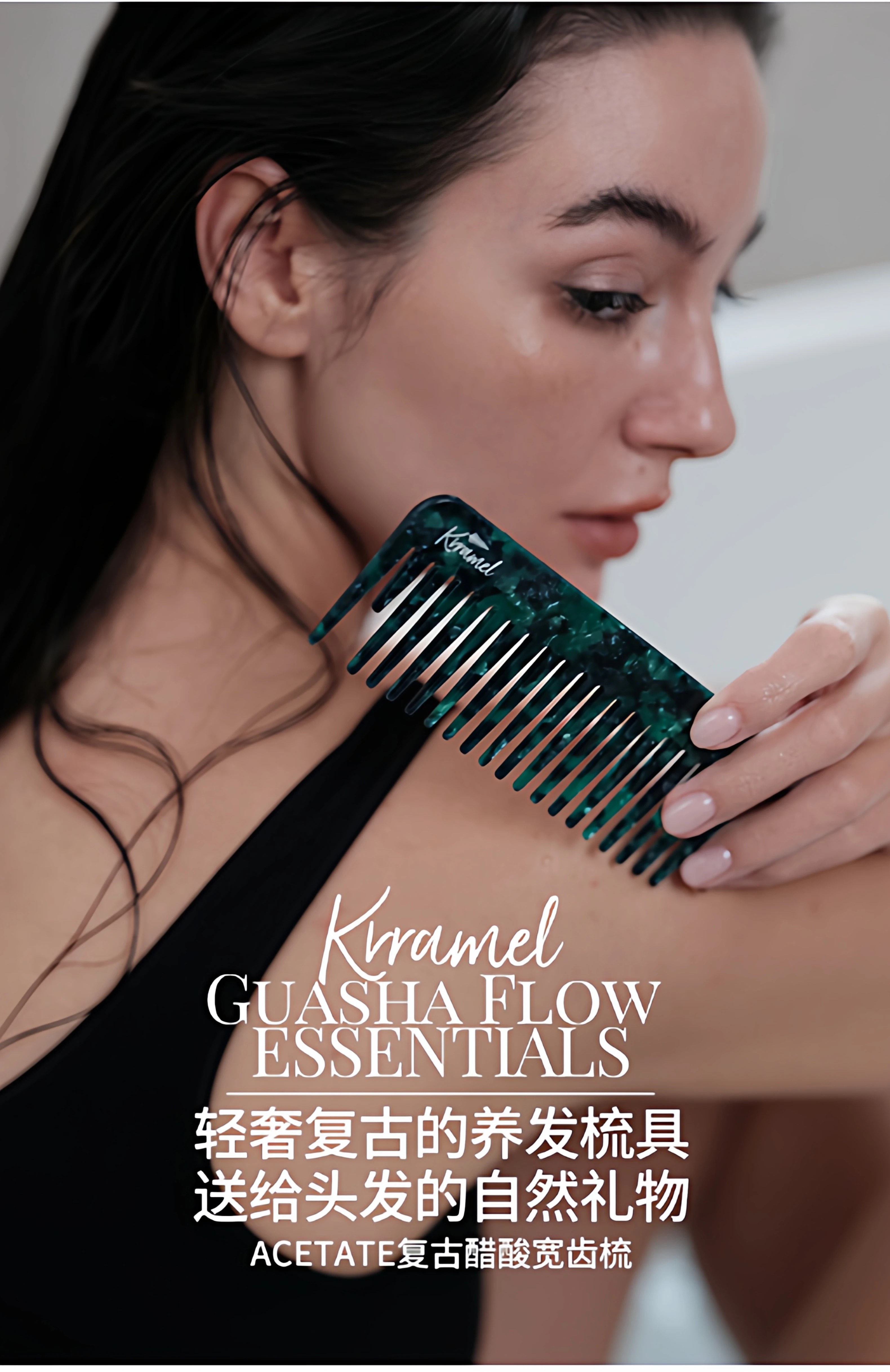 KRRAMEL女士专用新款梳子宽齿发梳子干湿两用长发不打结梳头家用 挪威森林绿