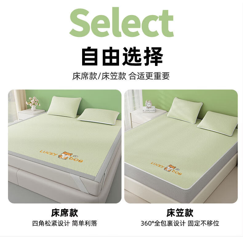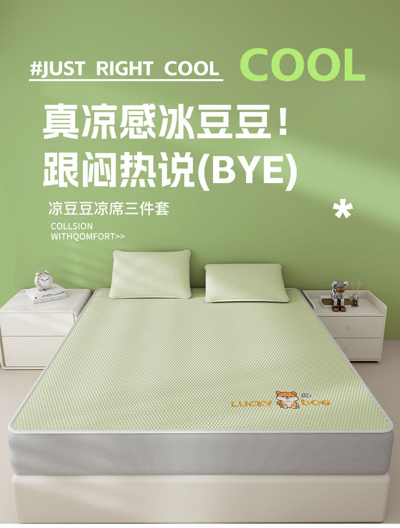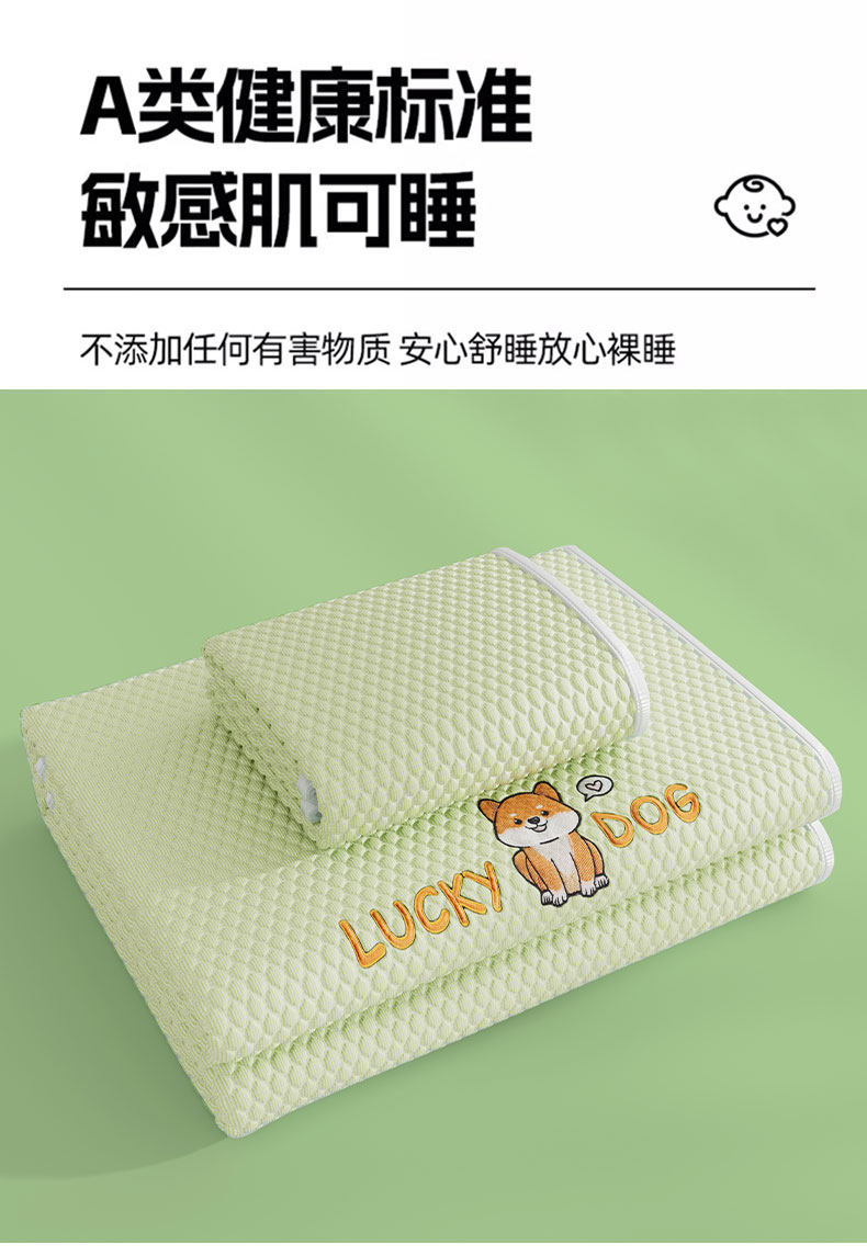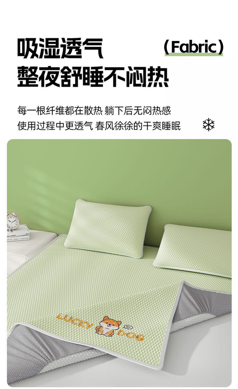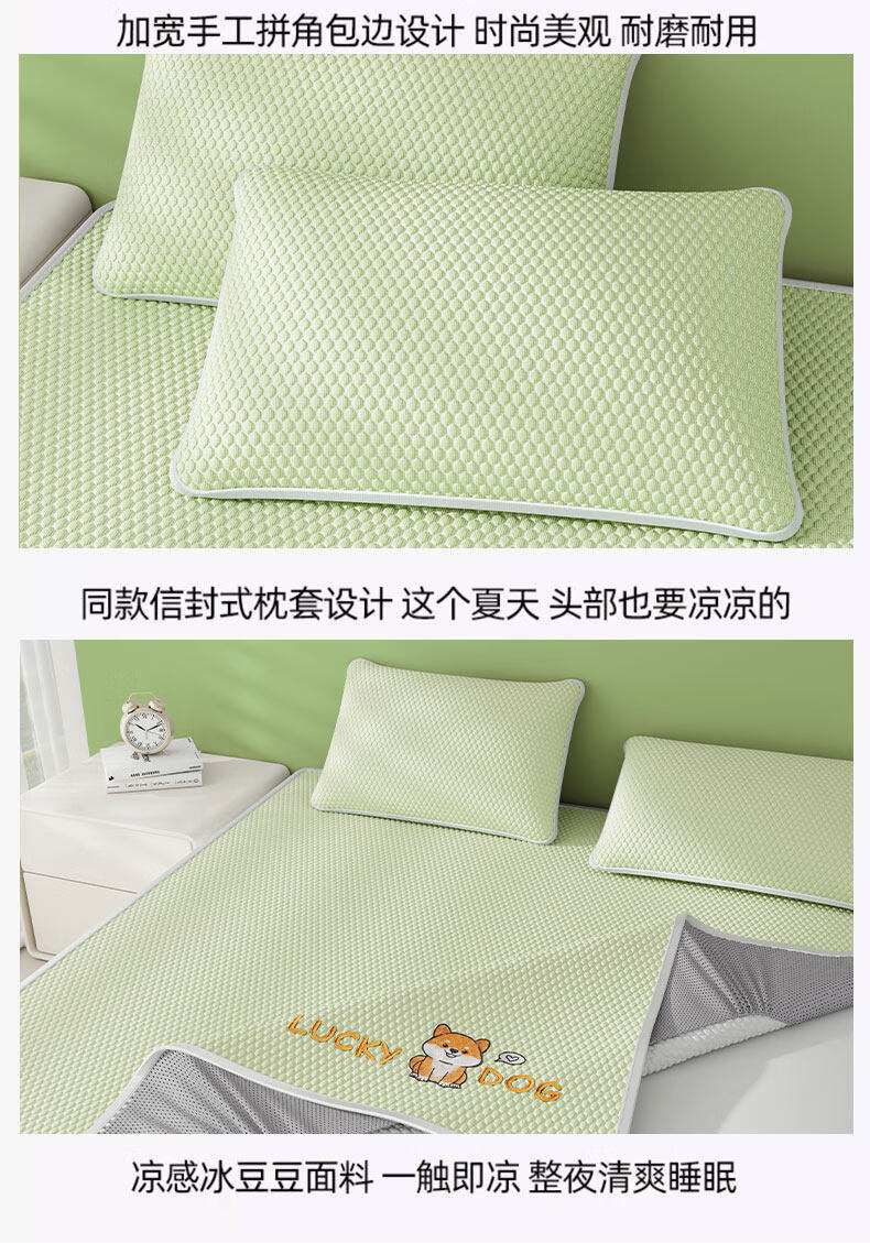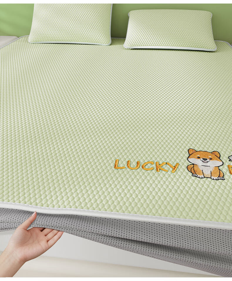 猫人(MiiOW)A类冰豆豆凉席冰丝席床笠款1.8x2米夏天专用夏凉席子凉感床罩套 床笠款-幸运小狗绿【冰感豆豆/凉而不冰】 单凉席-180x200cm【A类可裸睡】