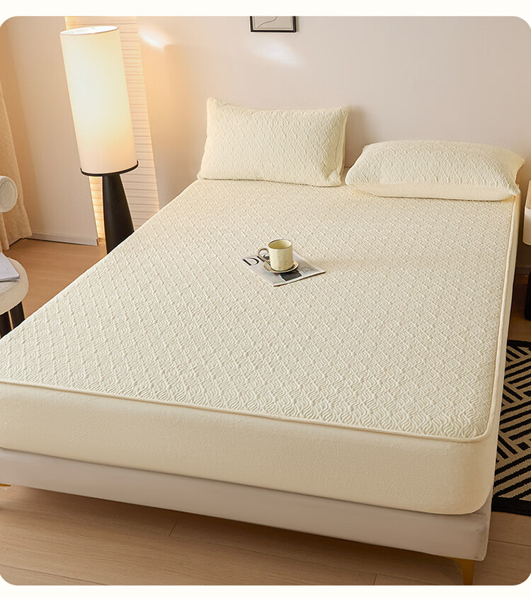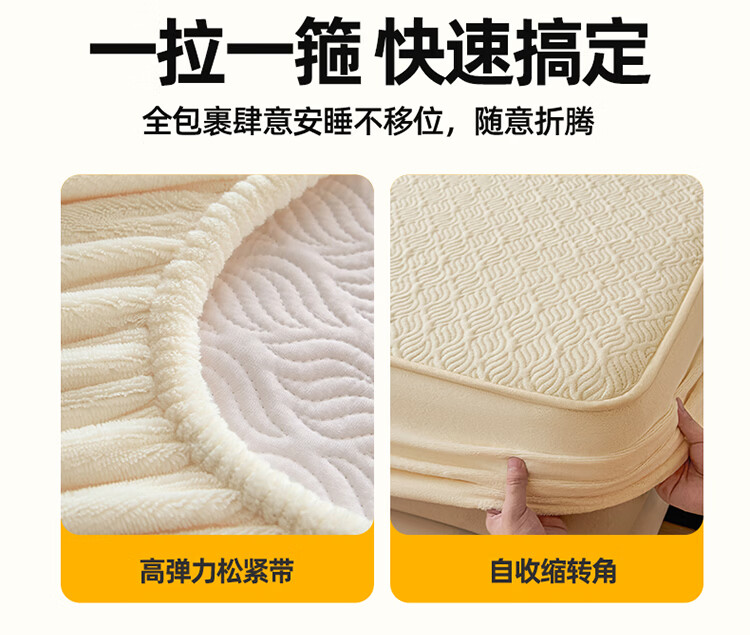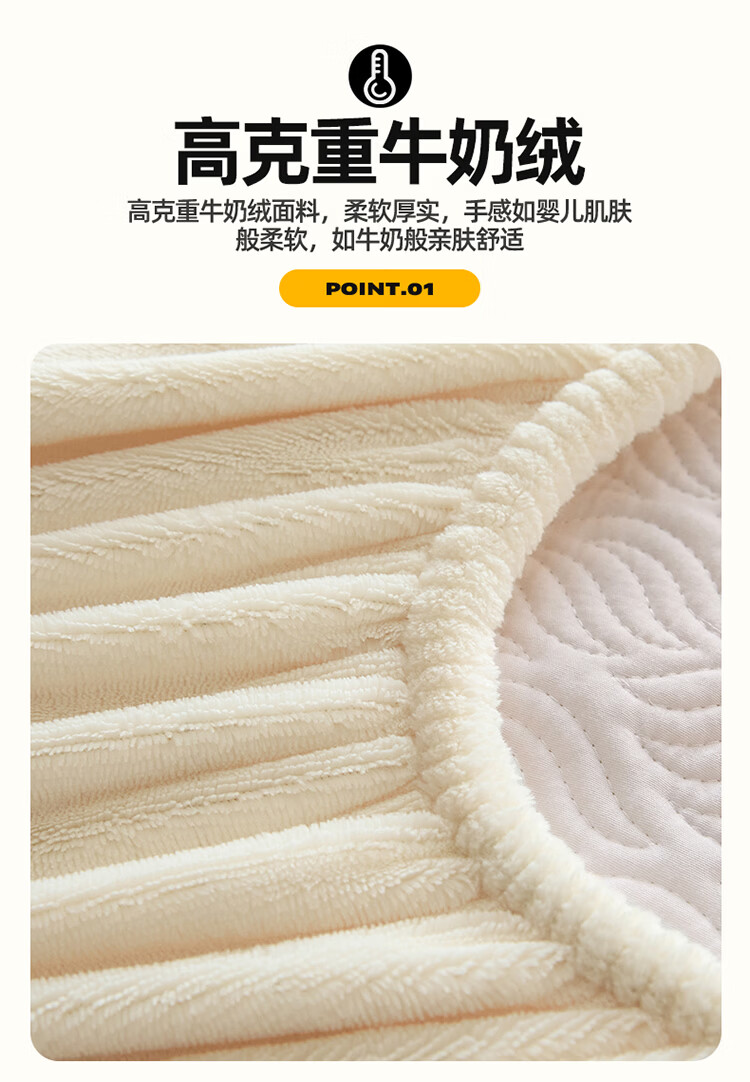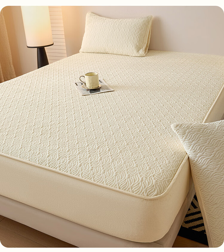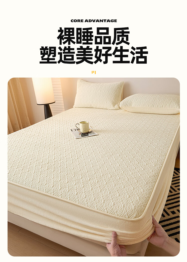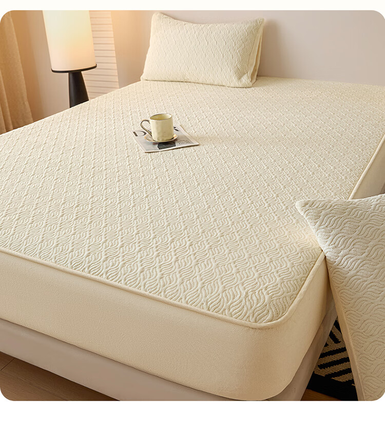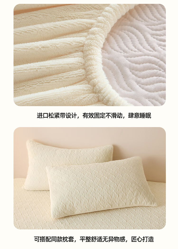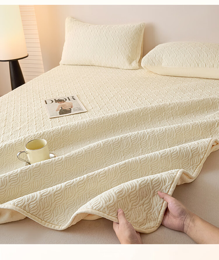 无印良品冬季牛奶绒床笠1.5x2米单人床罩保暖家用珊瑚绒床垫保护套三件套 波菱格-奶昔白【保暖抗静电】 150cm*200cm -单床笠
