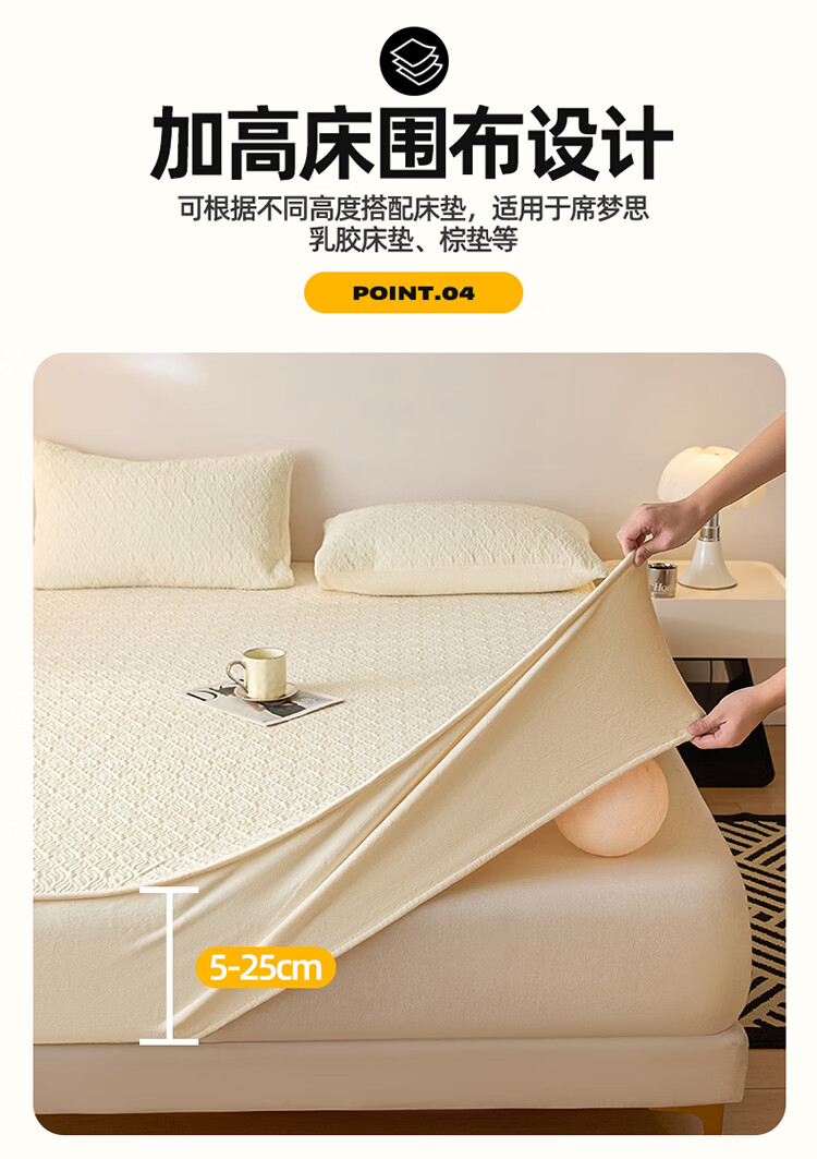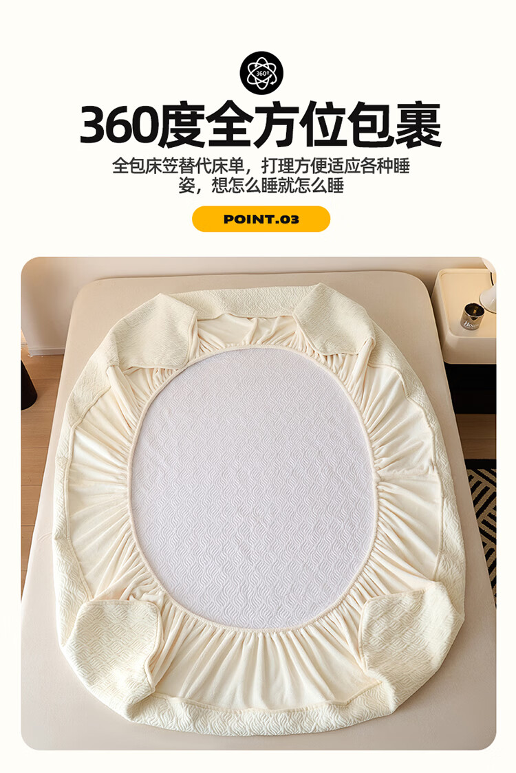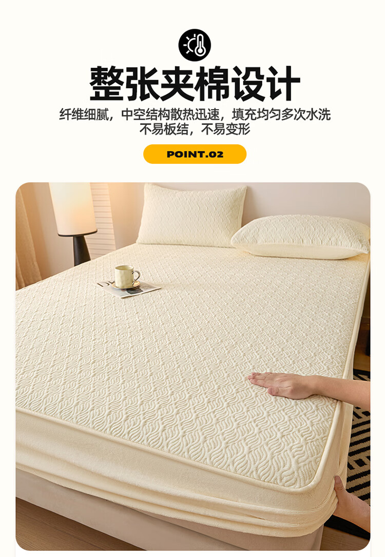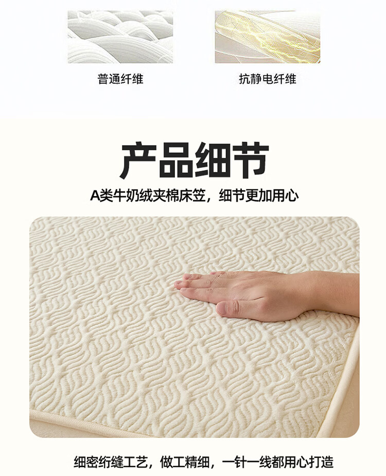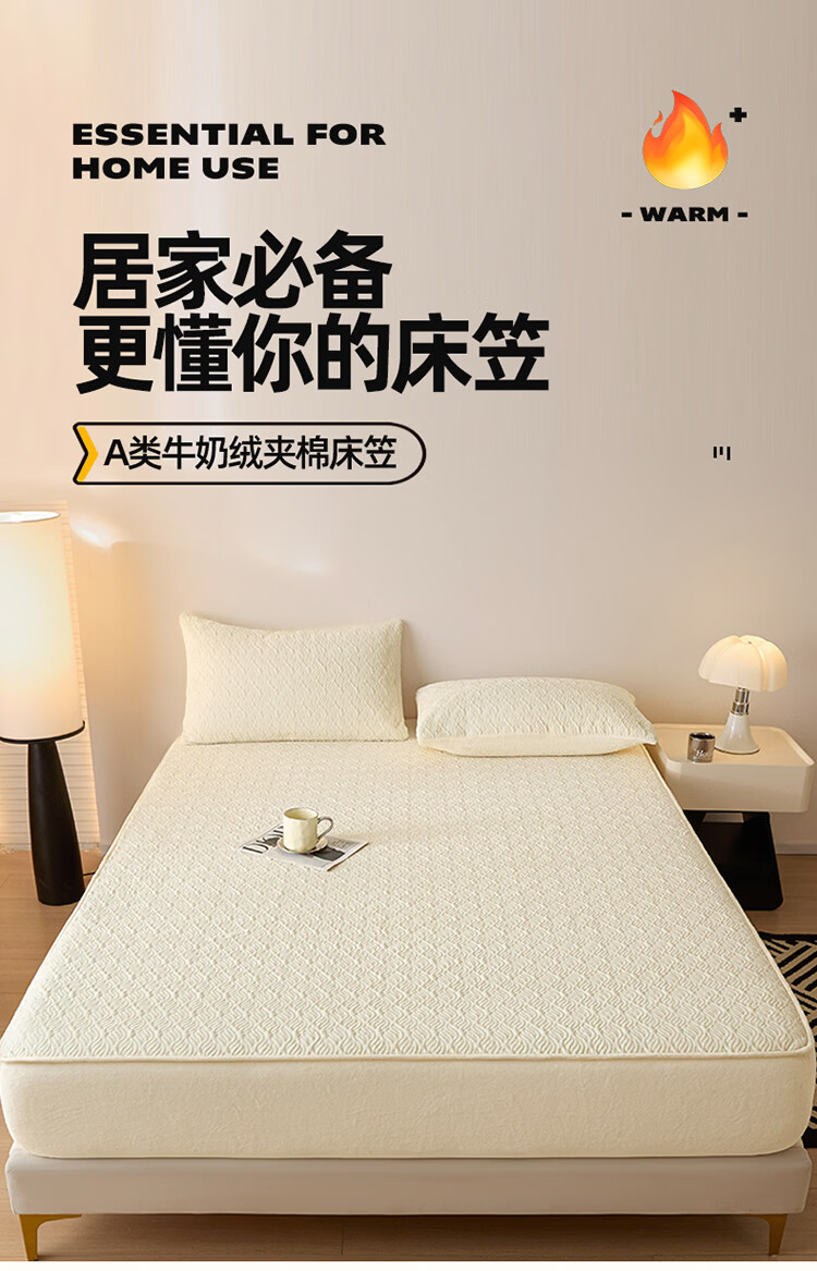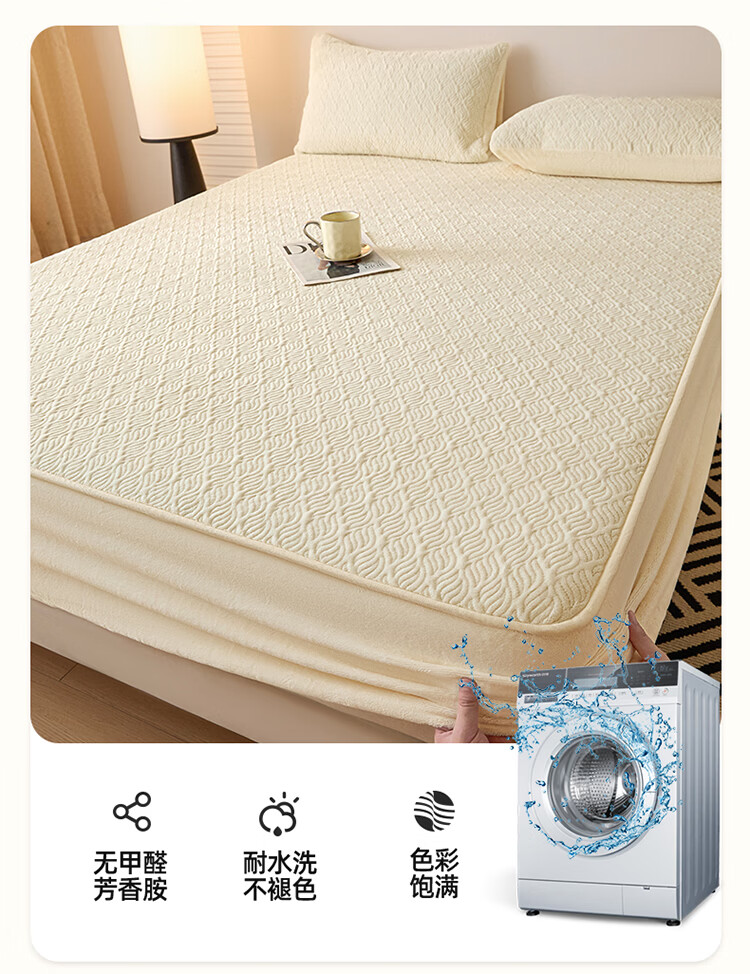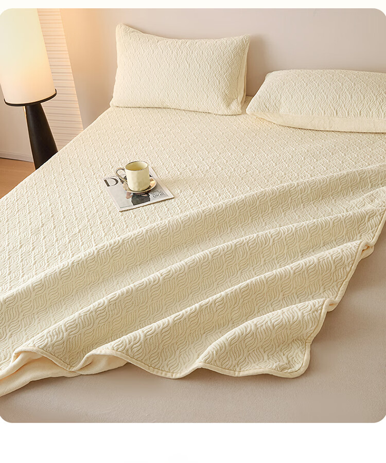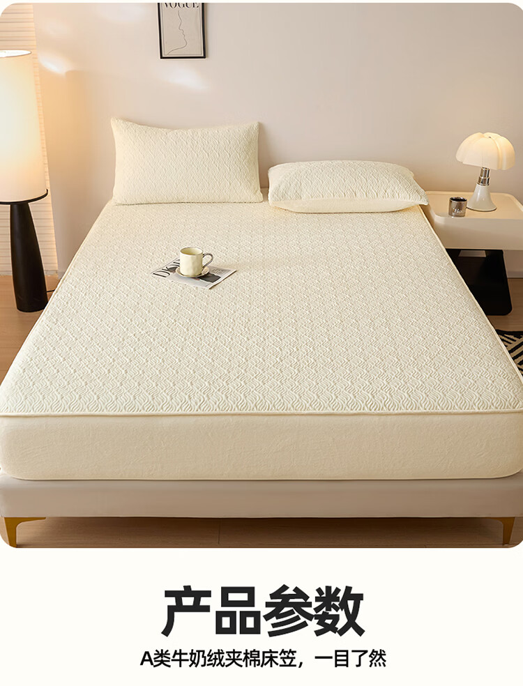 无印良品冬季牛奶绒床笠1.5x2米单人床罩保暖家用珊瑚绒床垫保护套三件套 波菱格-奶昔白【保暖抗静电】 150cm*200cm -单床笠