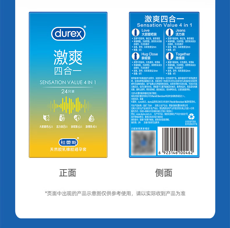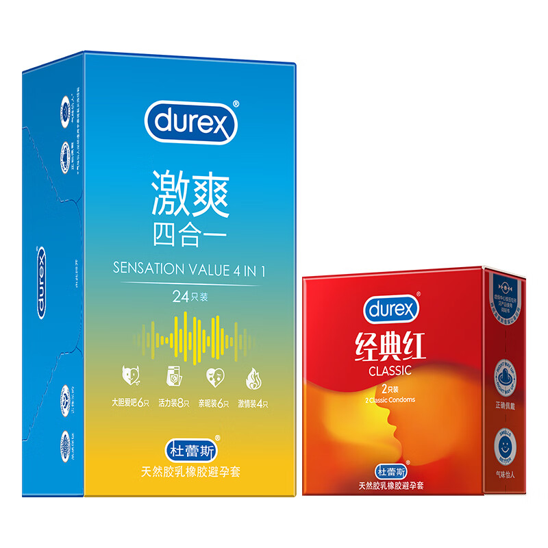 杜蕾斯 避孕套超薄安全套螺纹延时避孕套狼牙套套计生用品男女专用女 戴 1次用1整年【共32只】四合一18+经典红14