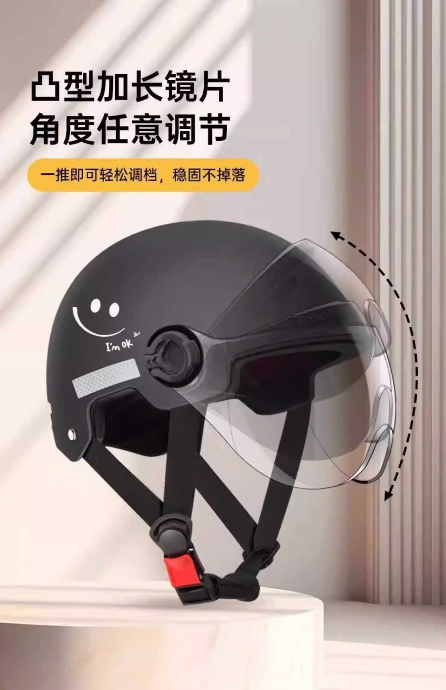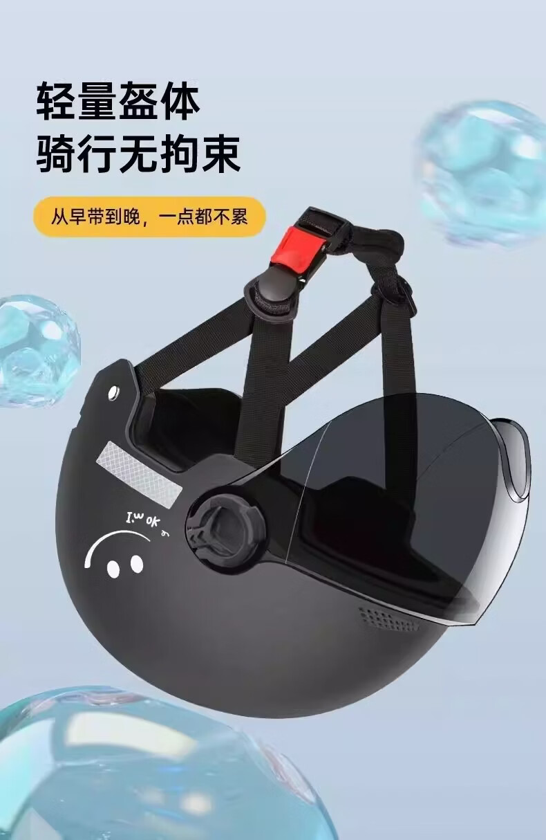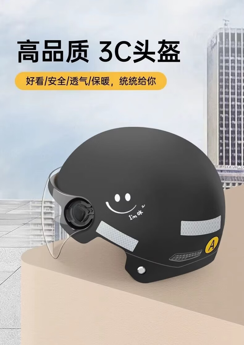 绿源头盔电动车成人男女3C认证219笑脸新国标夏季四季通用电瓶车半盔安全帽摩托车 219笑脸黑色-透明短镜