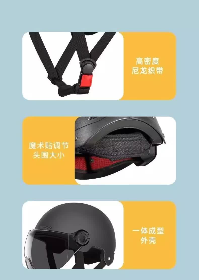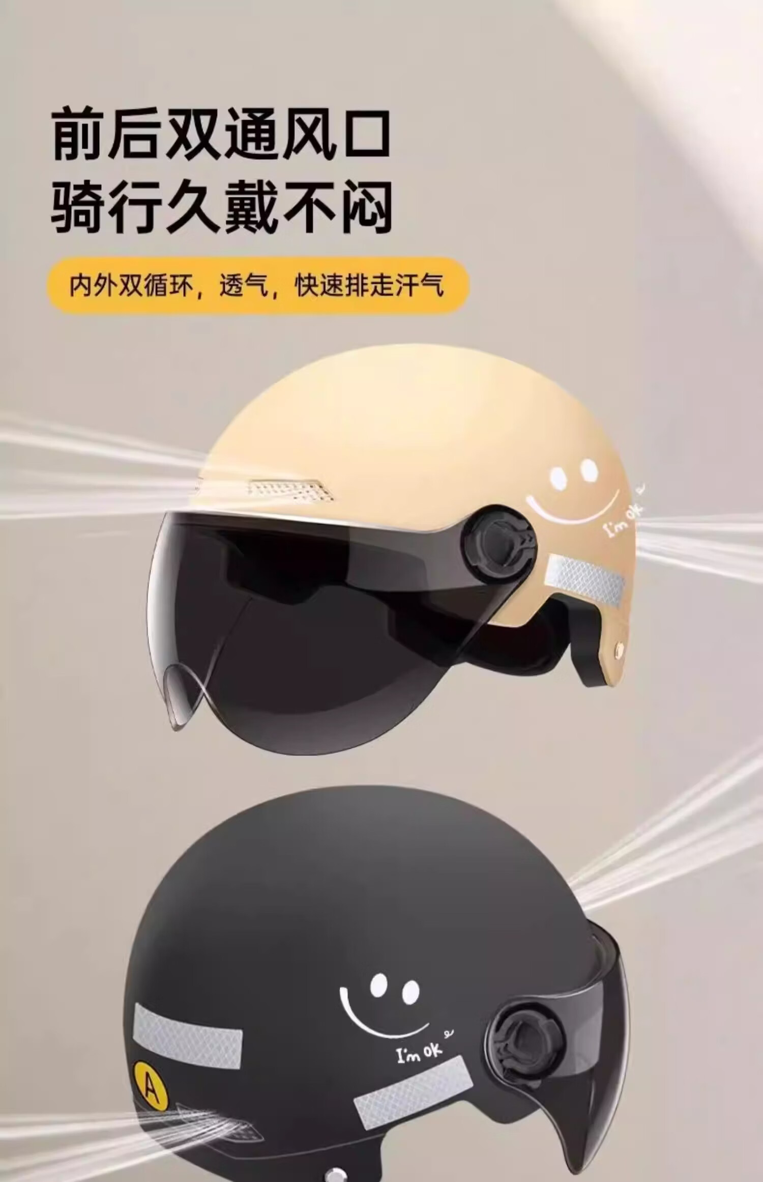 绿源(Luyuan)电动车头盔电瓶车3c认证摩托车头盔女男通用防晒夏季盔半盔安全帽 笑脸-银灰-高清短镜