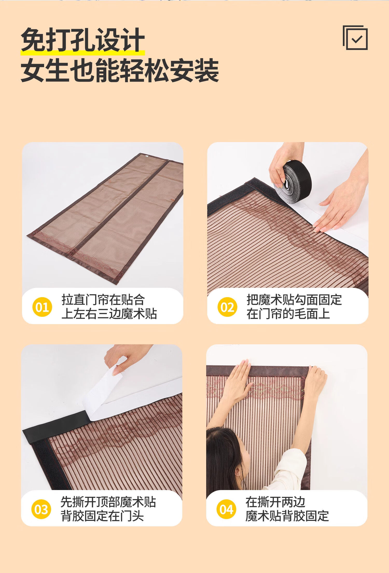 鸿迪(HONGDI)金刚网防蚊门帘自吸磁吸纱窗魔术贴免打孔夏季防蝇虫纱门网帘子 灰色 90*205