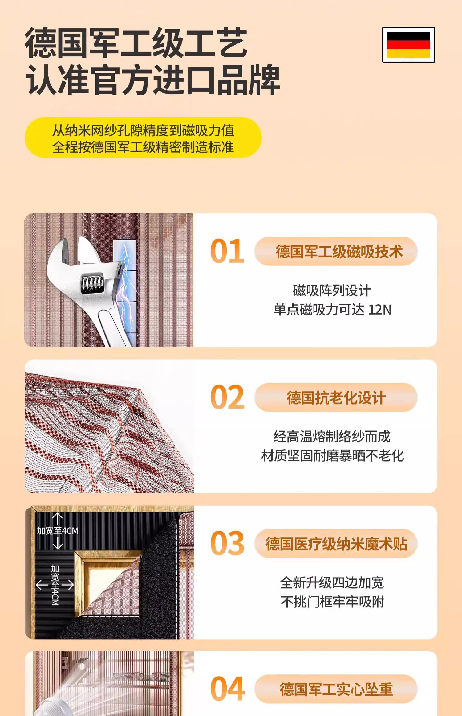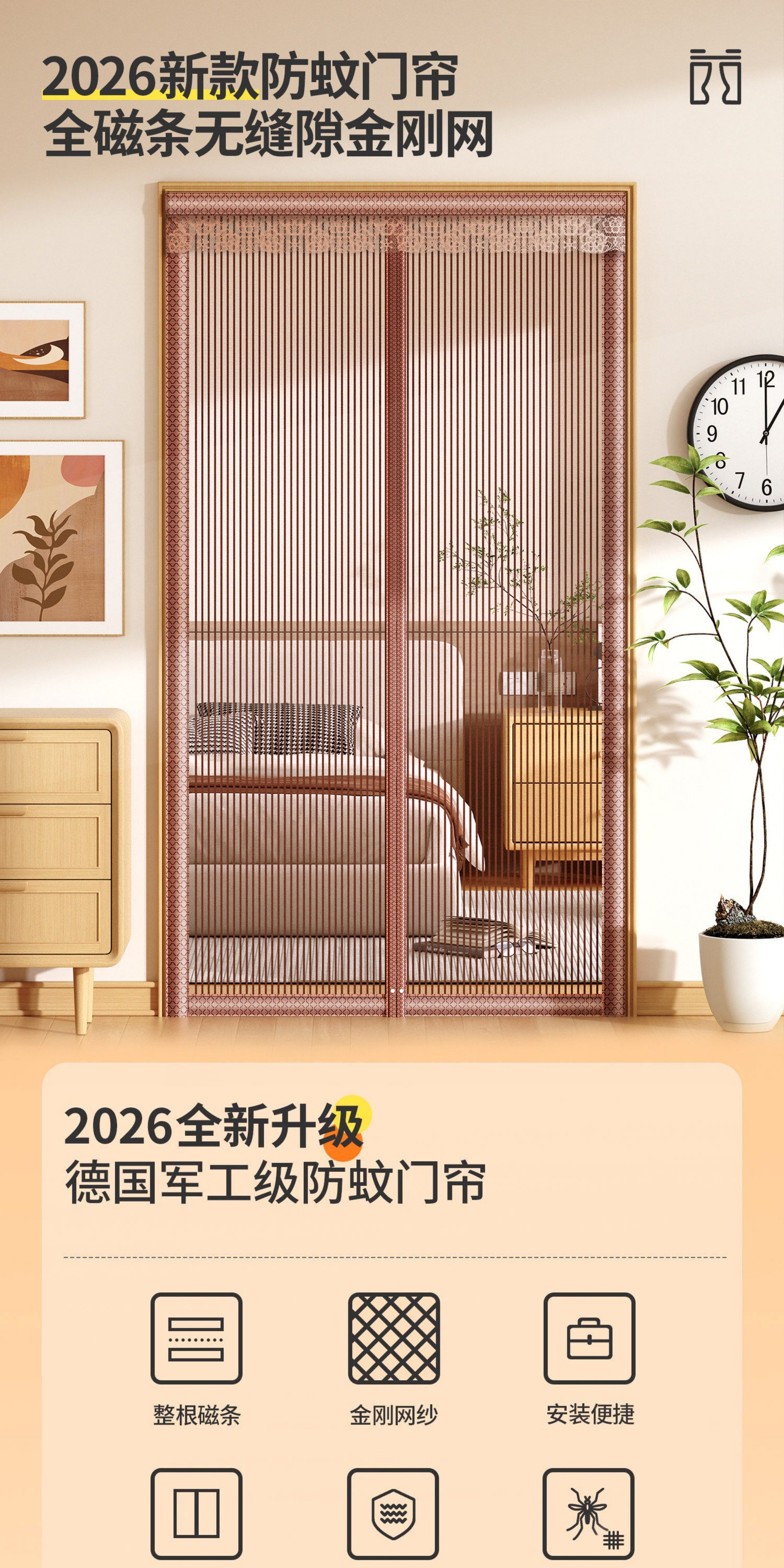 OEING防蚊门帘子2026新款自粘金刚网全磁吸加密防撕强闭合卧室入户家用 【升级款金刚纱】纯灰色【四周加宽+升级配重】 【德国品质】90CM宽*200CM高