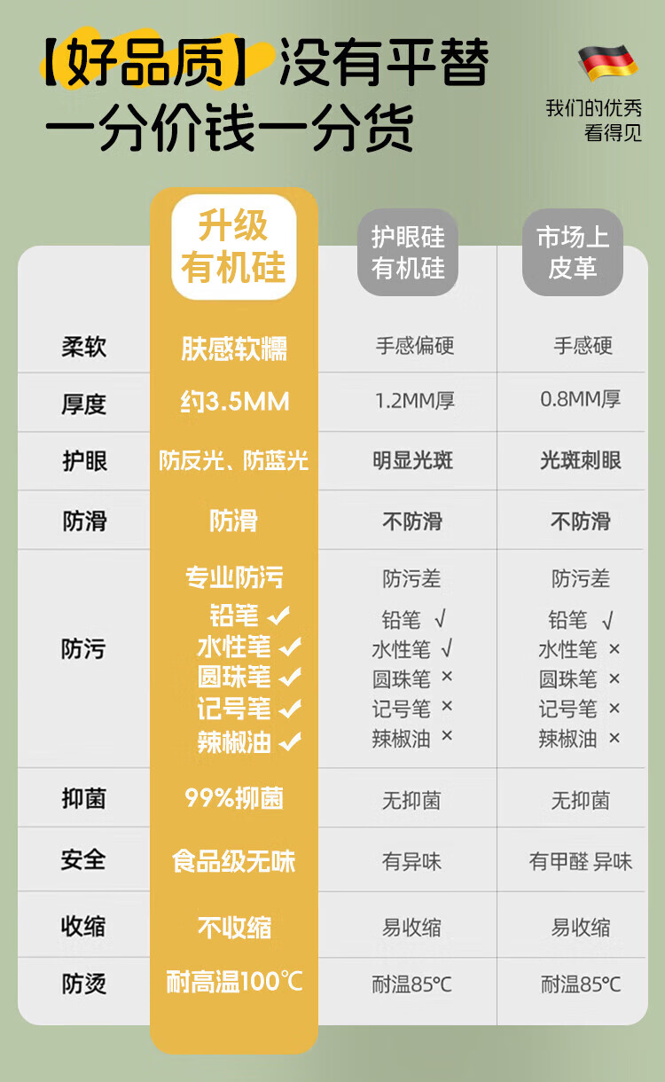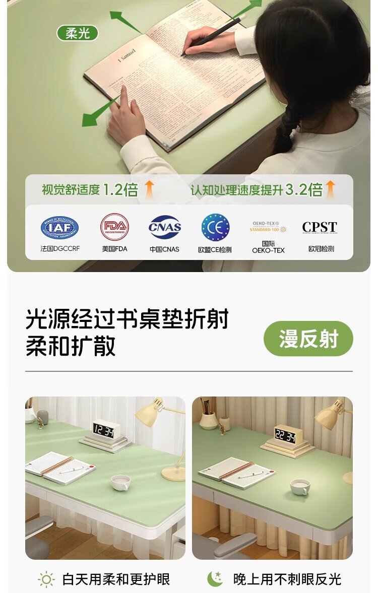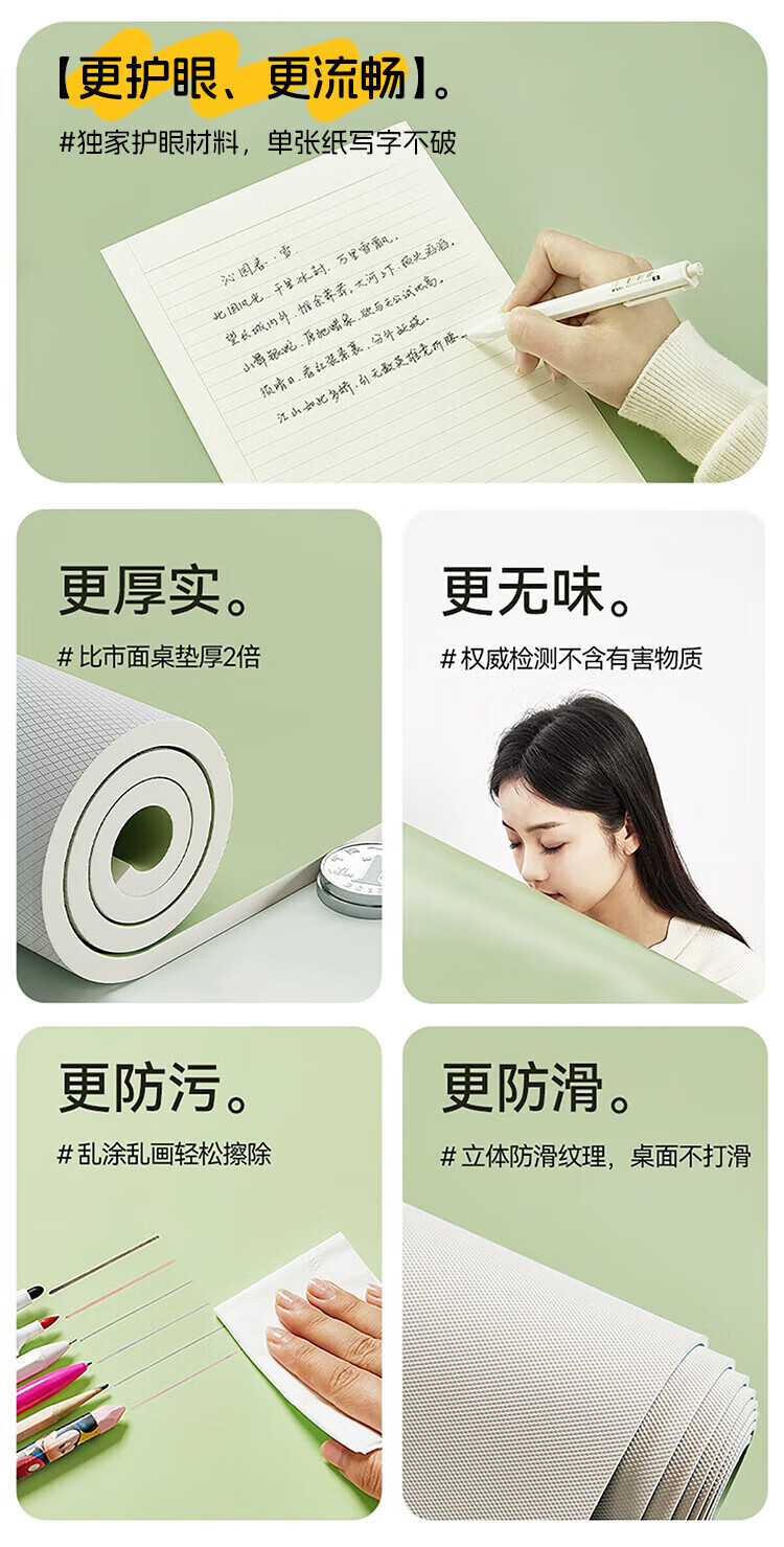 纱屋净桌垫书桌垫学生学习有机硅升级新款护眼防水防污防滑耐磨易擦无味 有机硅桌垫白+杏(1.6mm) 50cm*160cm【宽*长】