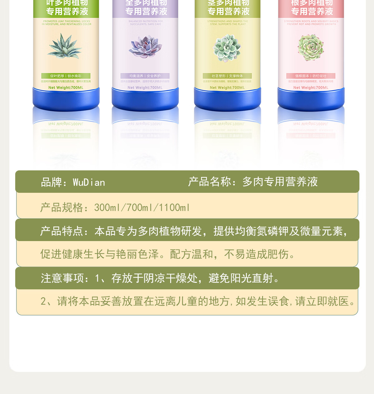 多肉营养液专用肥植物肥料水溶上色液体优芽爆芽矮壮生根素营养液 全多肉植物专用营养液1100ml