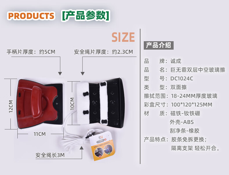 诚成巨无霸擦玻璃器双层中空擦窗器双面擦保洁家政神器玻璃刮18-24MM