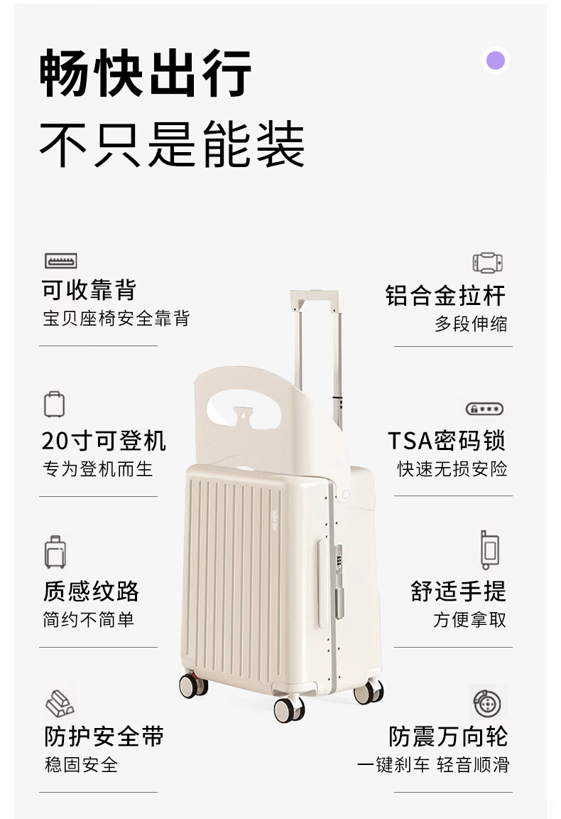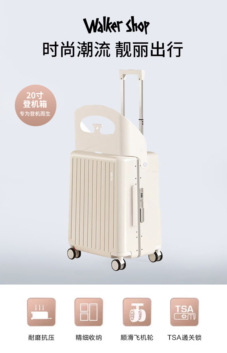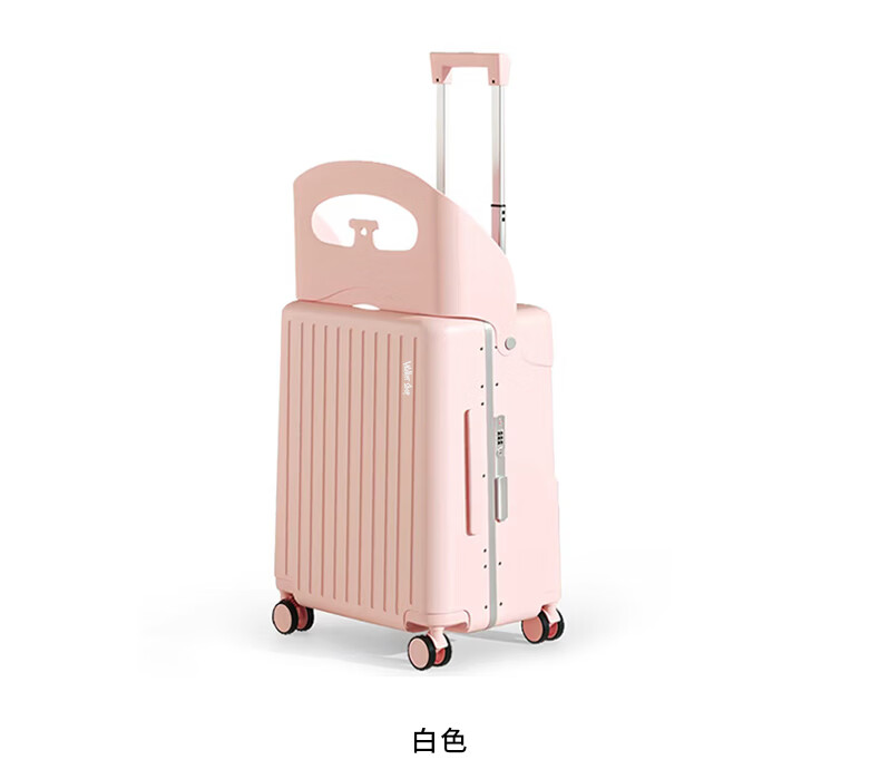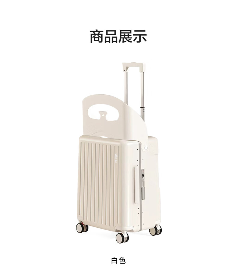 Walker Shop品牌行李箱新款可坐骑旅行箱登机铝框宝妈行李箱儿童宝宝拉杆箱 白色【儿童可坐+折叠靠背】 20英寸 【可登机】